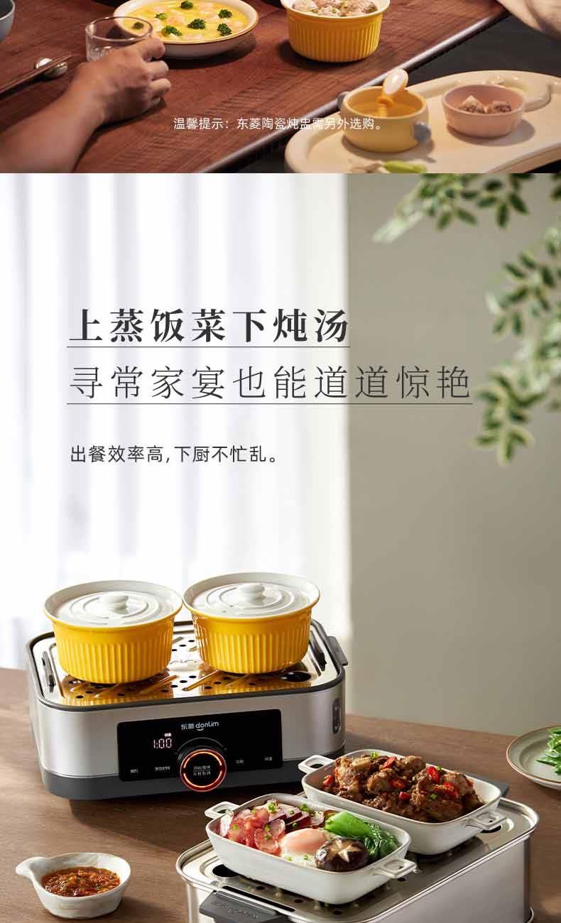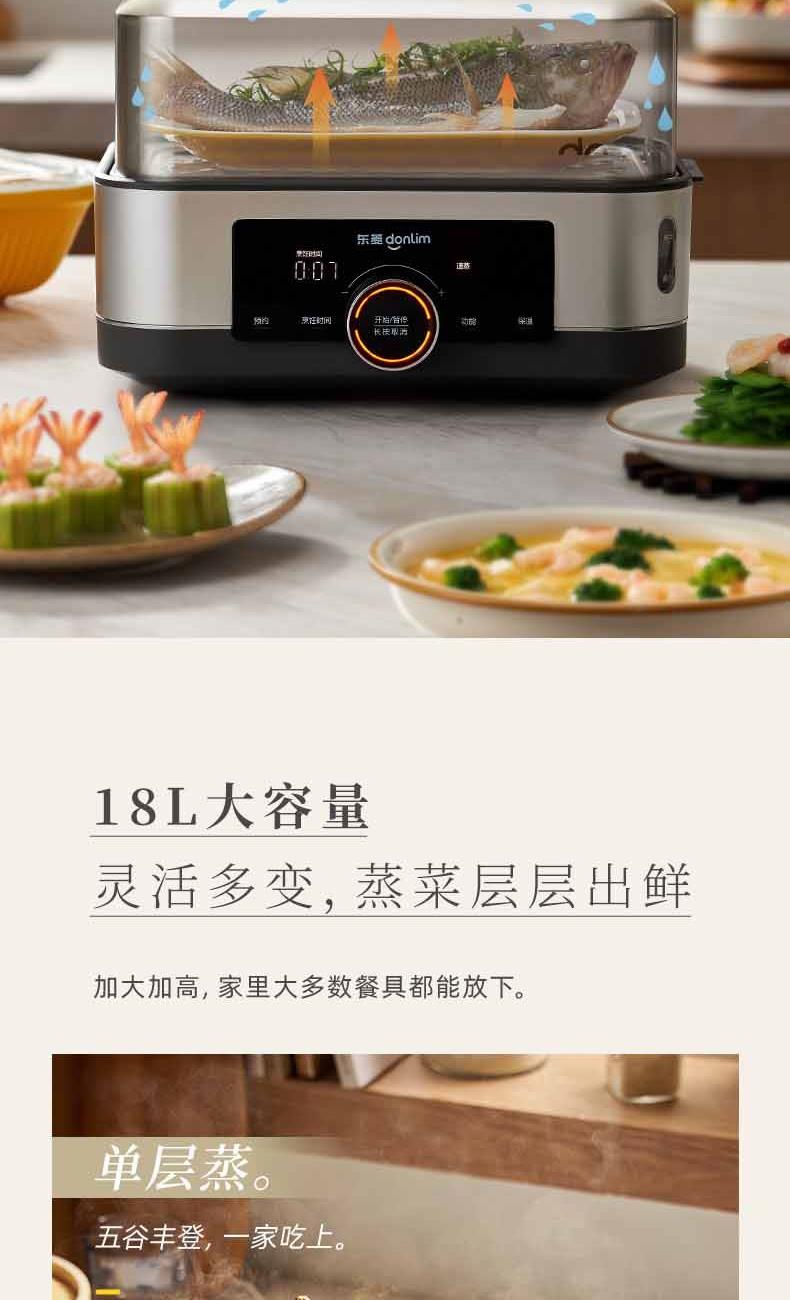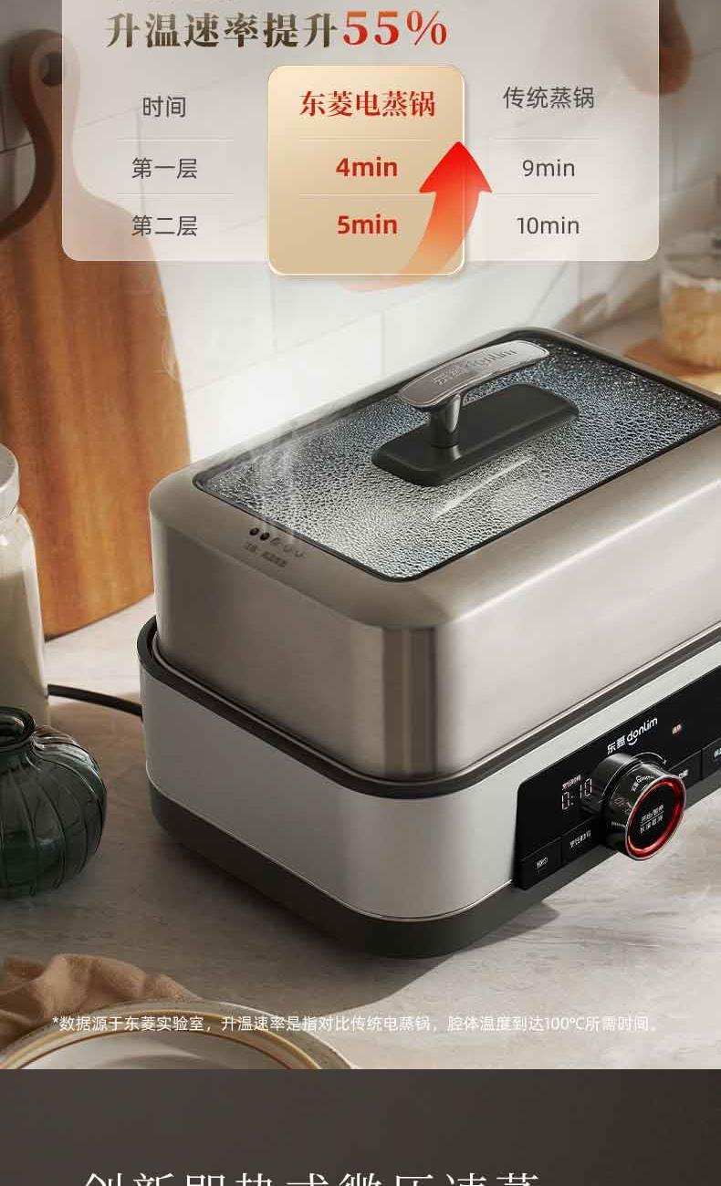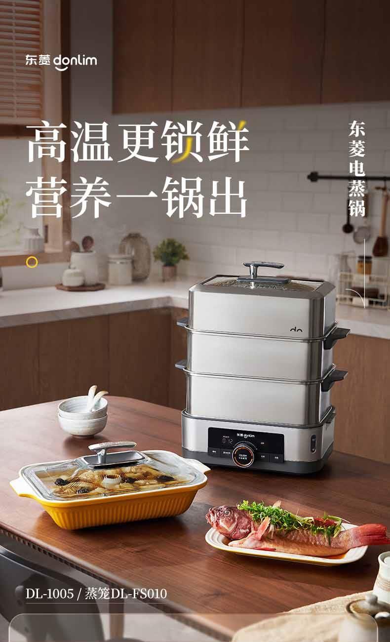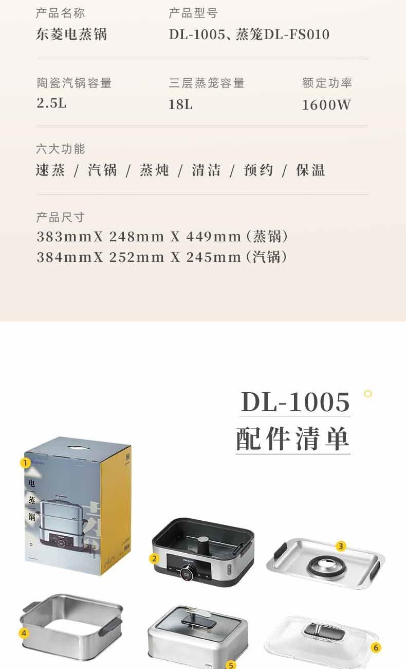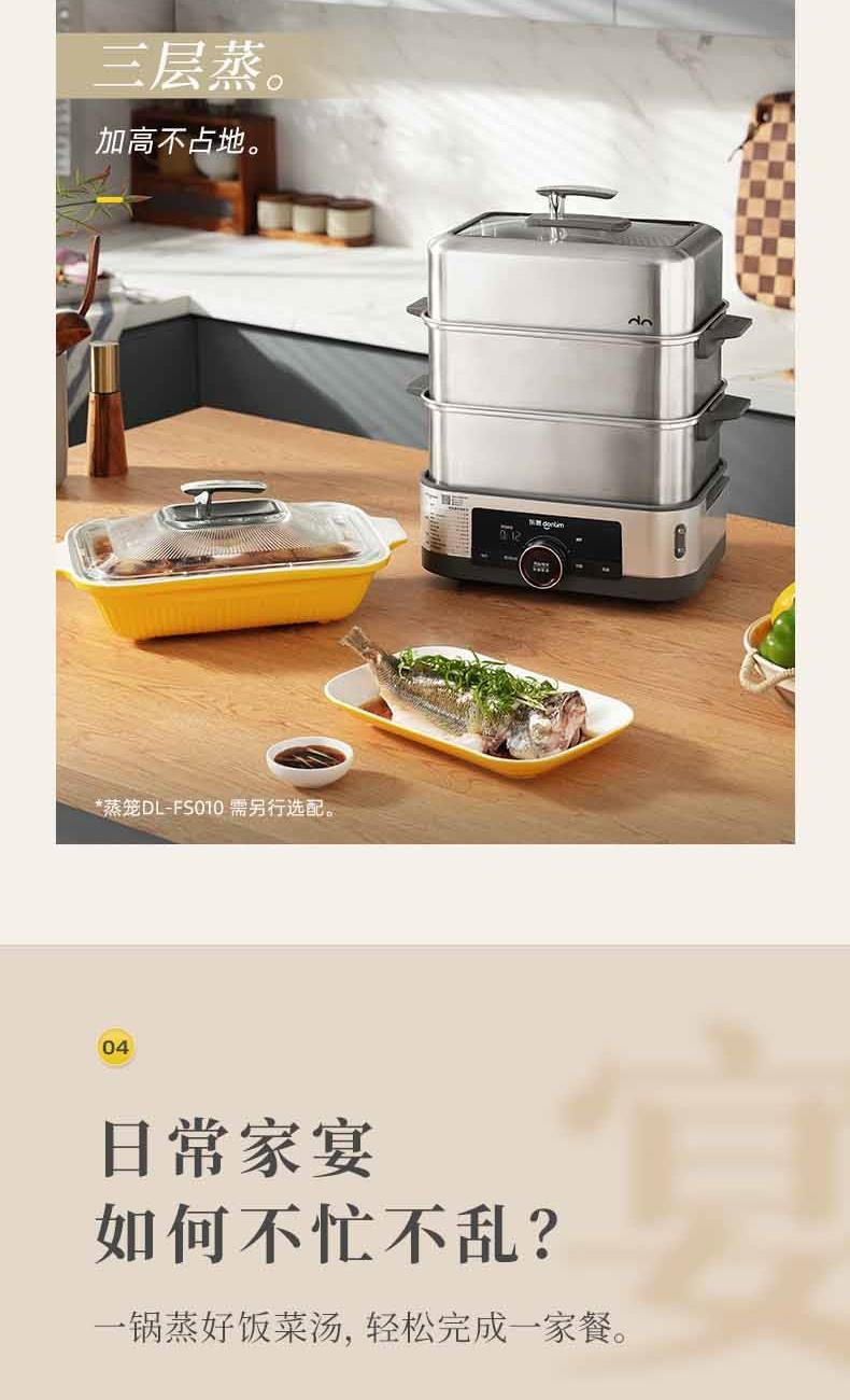 东菱三层极速电蒸锅汽锅DL-1005+DL-FS010家用