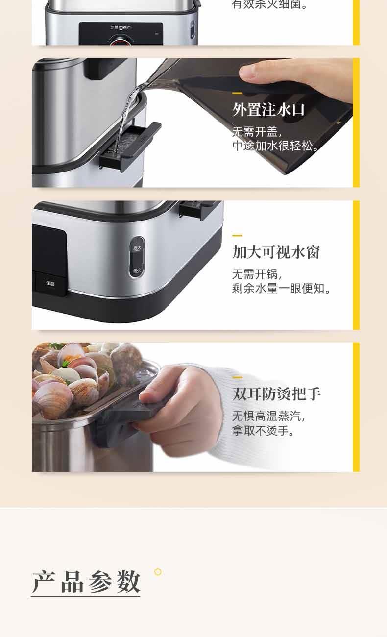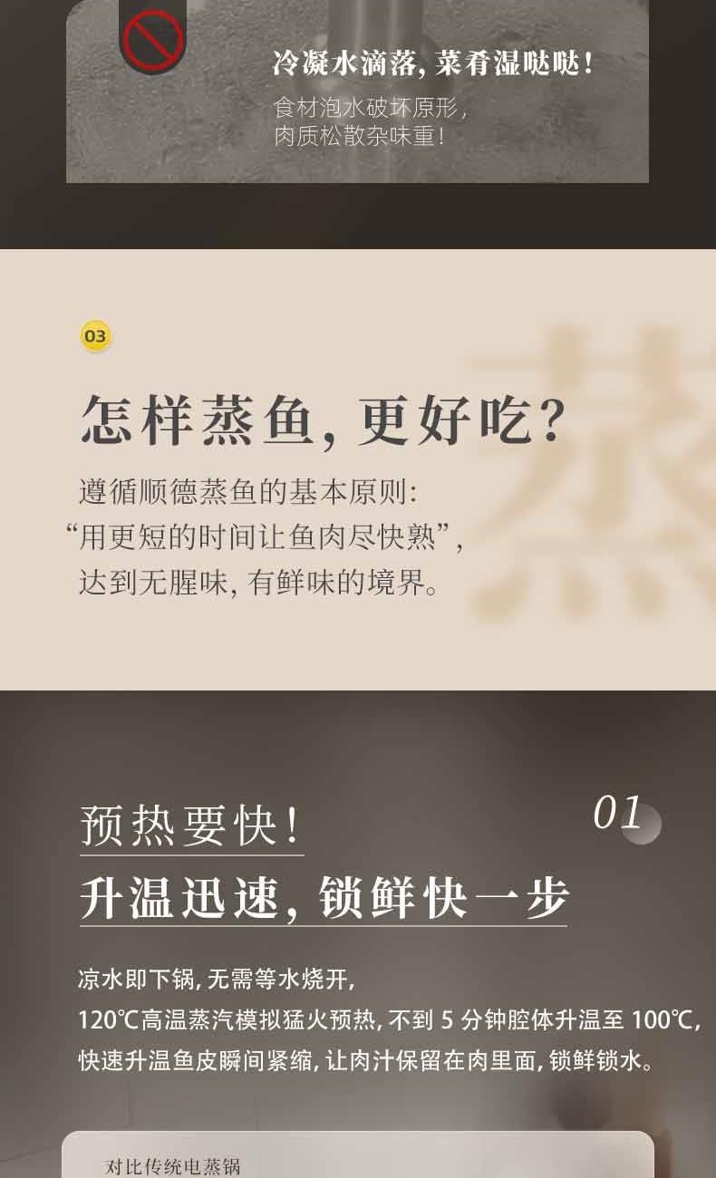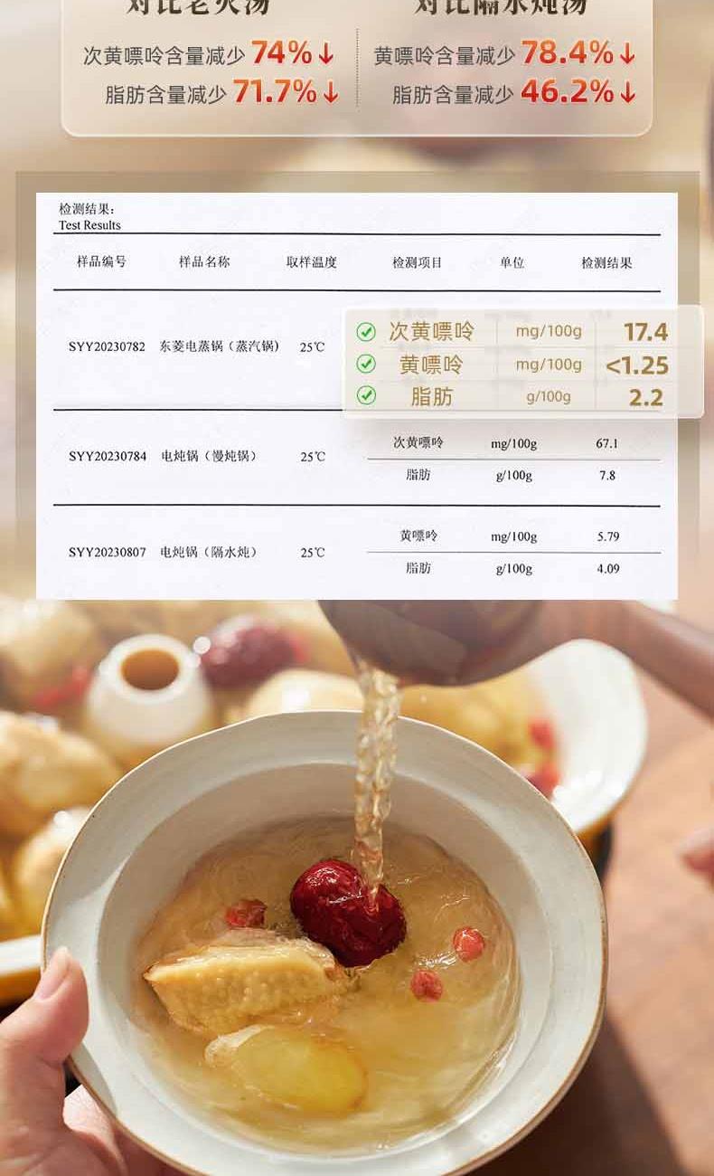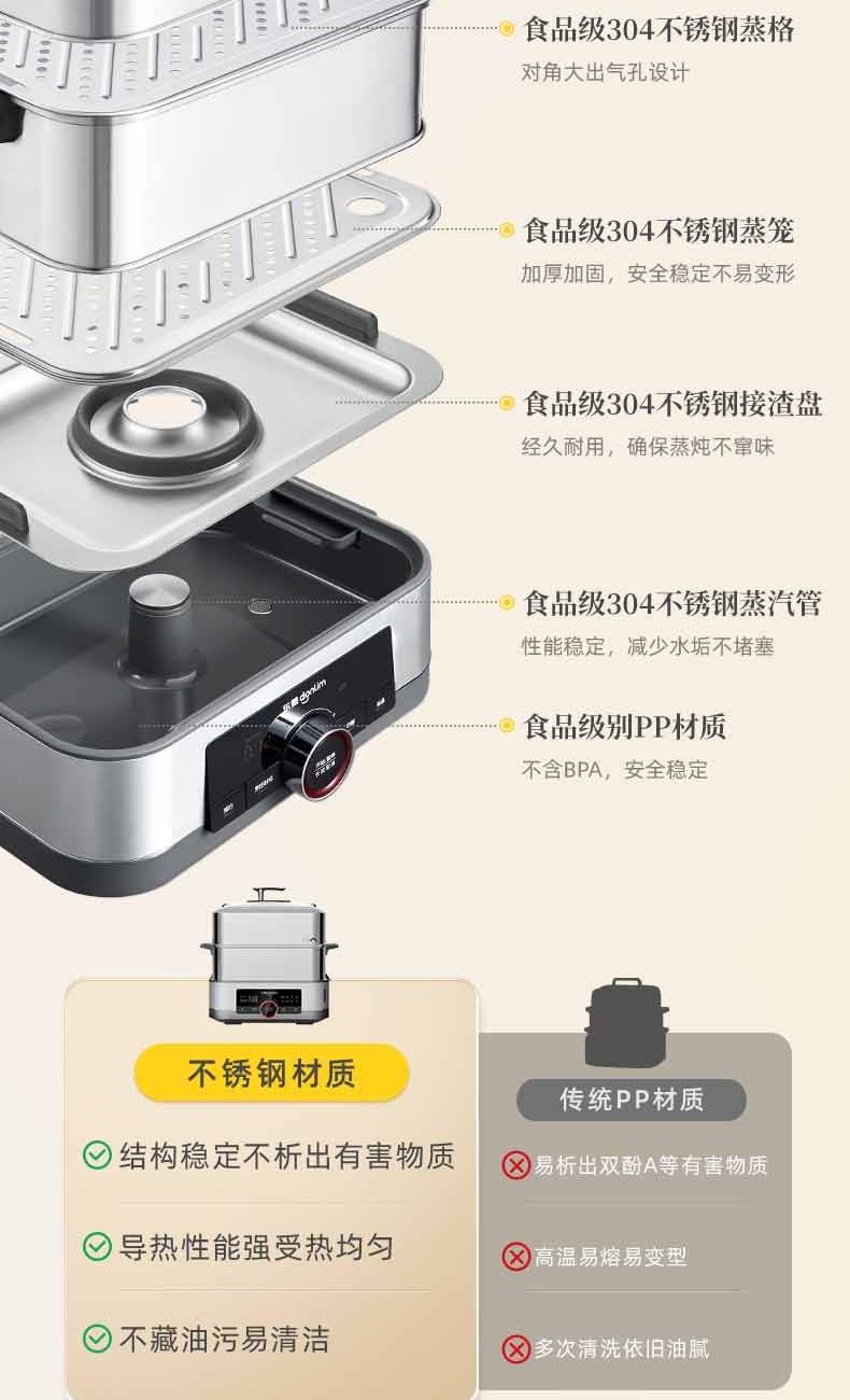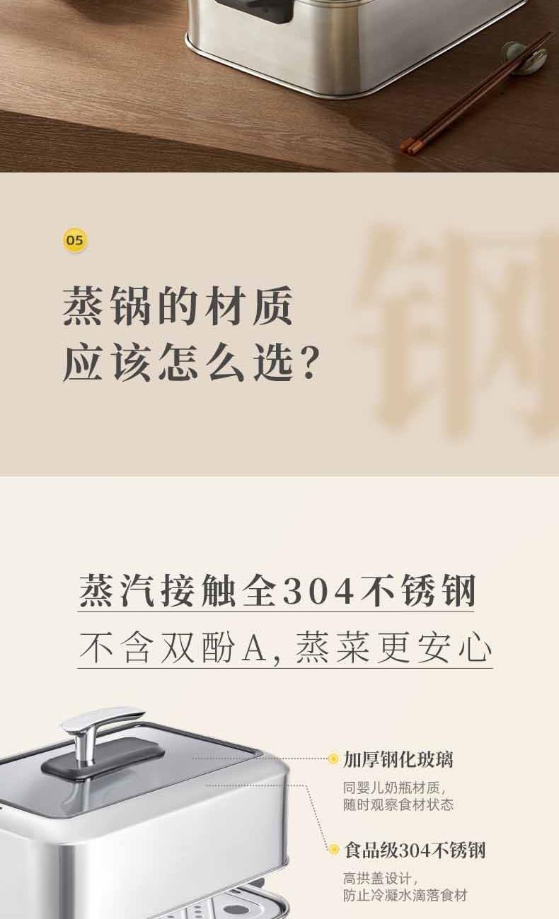 3.专 利汽锅模式,原汁原味,汤清少油低嘌呤4.速蒸/汽锅/蒸炖,百搭烹饪不闲置