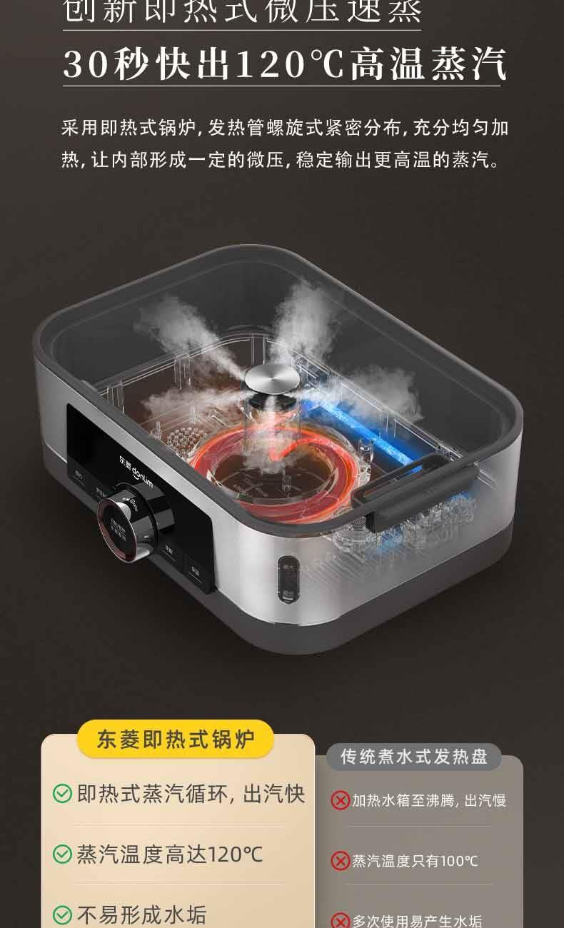 2.速蒸模式,30秒快出130℃高温蒸汽,高温更锁鲜