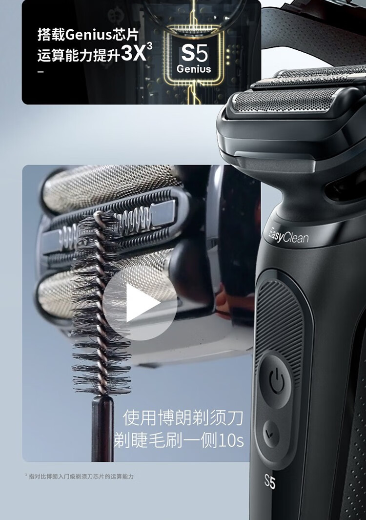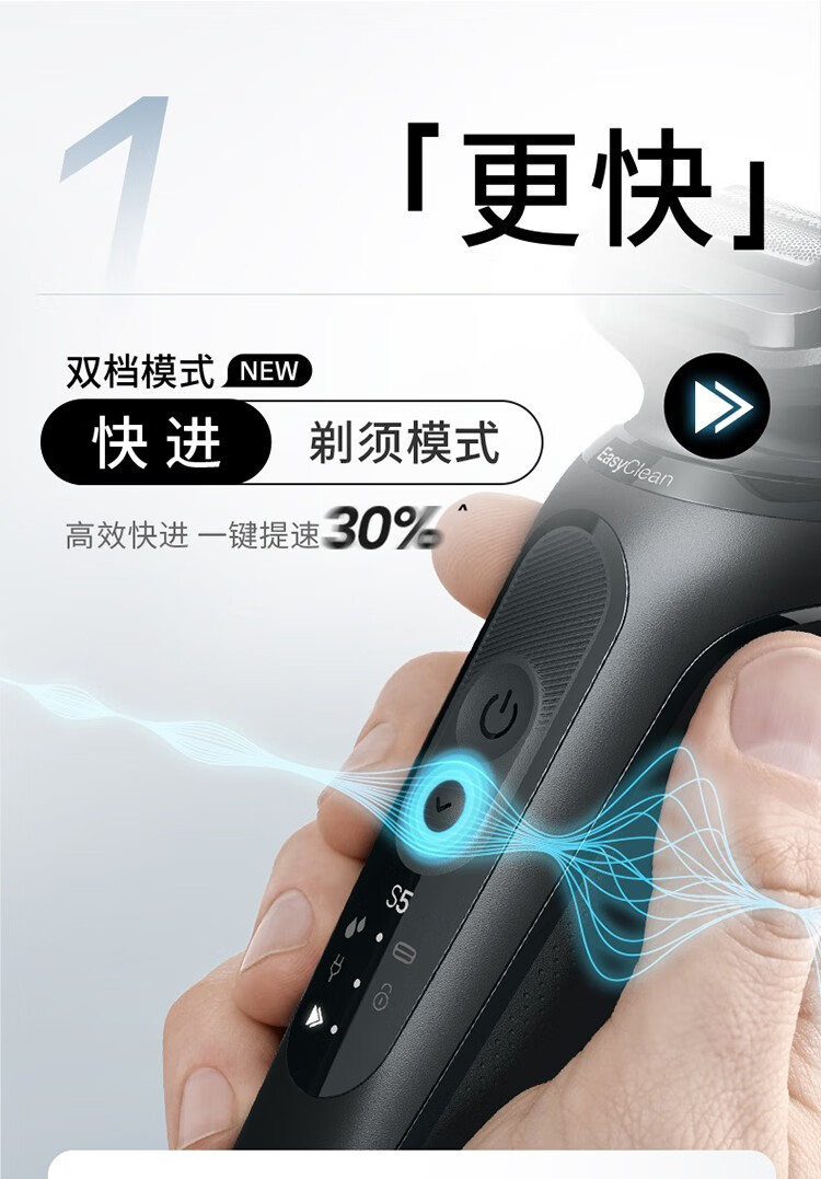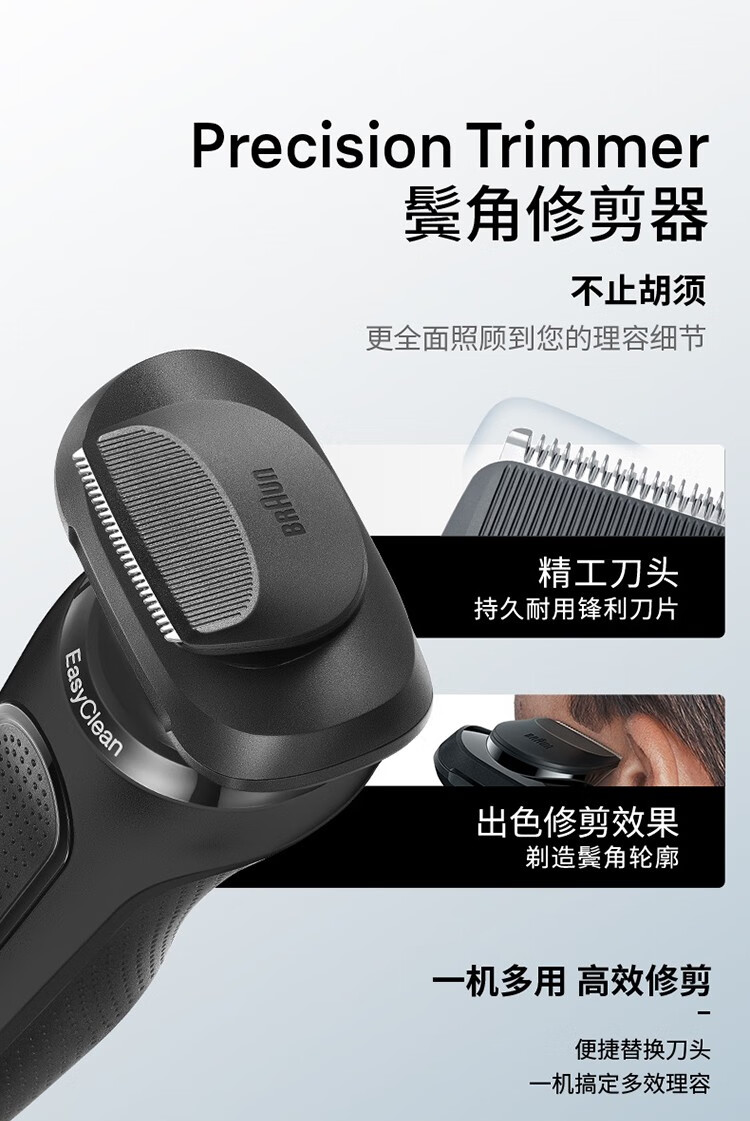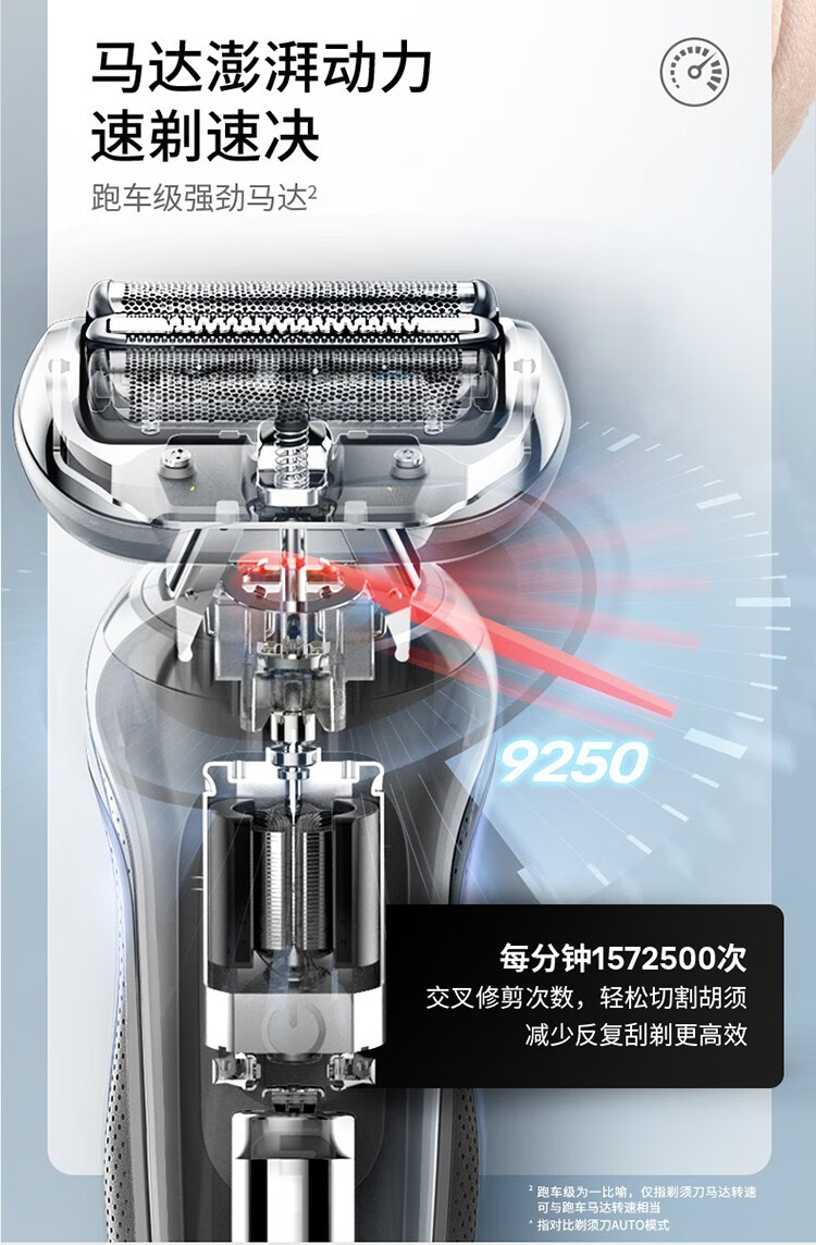 商品毛重:300.00g 商品产地:德国 产地归属:整机进口 刀头数量:3个 续航时间:45-60分钟 清洗方式:全身水洗,刀头水洗 充电时间:1小时快充 产品尺寸:长117mm;宽97mm;高231mm 续航时间:50分钟