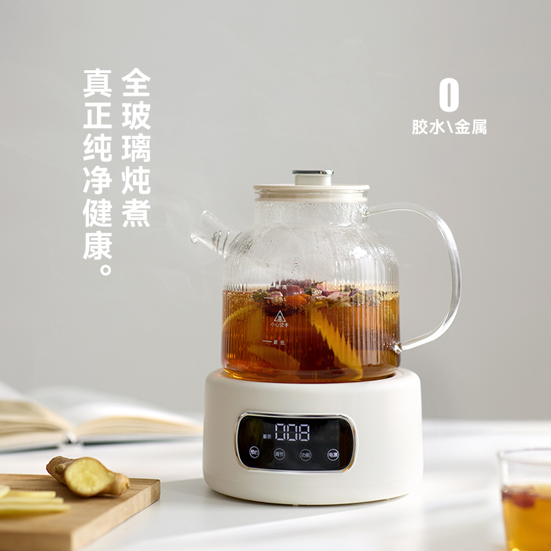 颜色:陶白色 容量:1.2L 额定功率:600W 净重/毛重:1.28kg/1.6kg 产品尺寸:205*186*235mm 包装尺寸:312*238*228mm 条码 : 6941927410197 1. 全玻璃炖煮,一体成型0毒0胶水 2. 8大智能菜单,支持预约和保温功能 3. 小气泡精炖技术 4. 可视电子屏,超大壶口,杯身刻度线