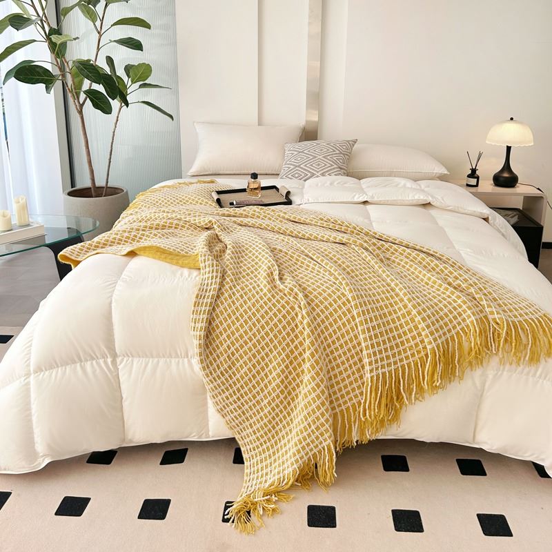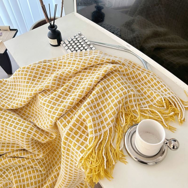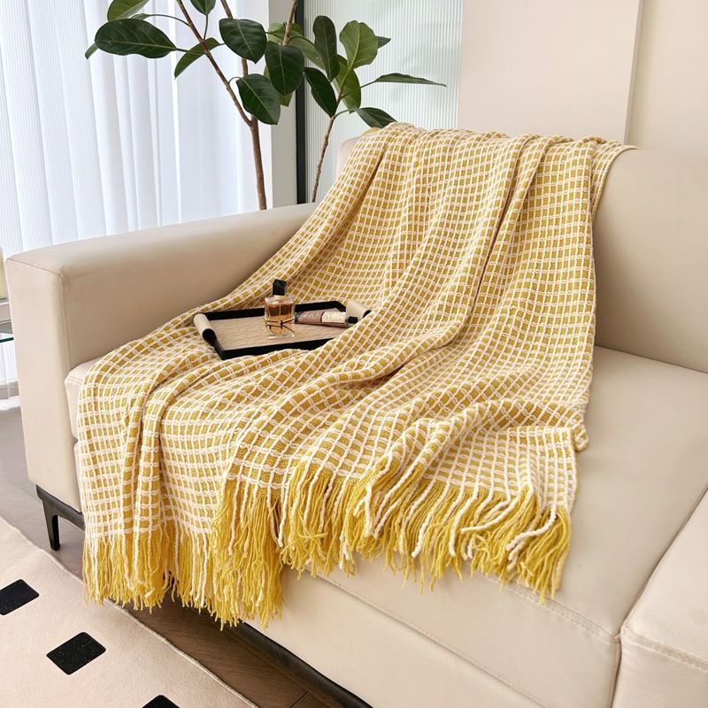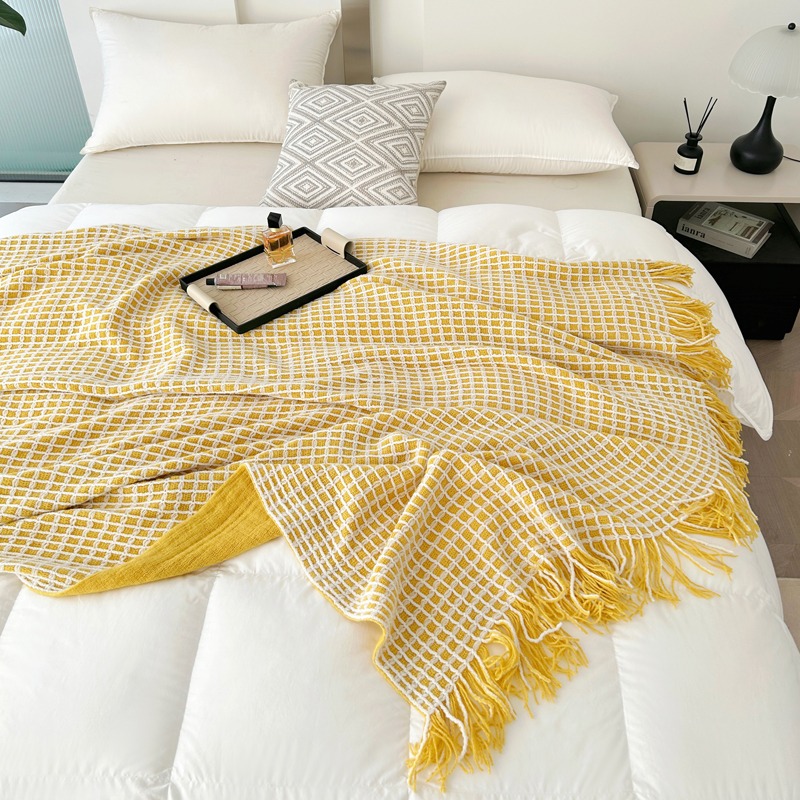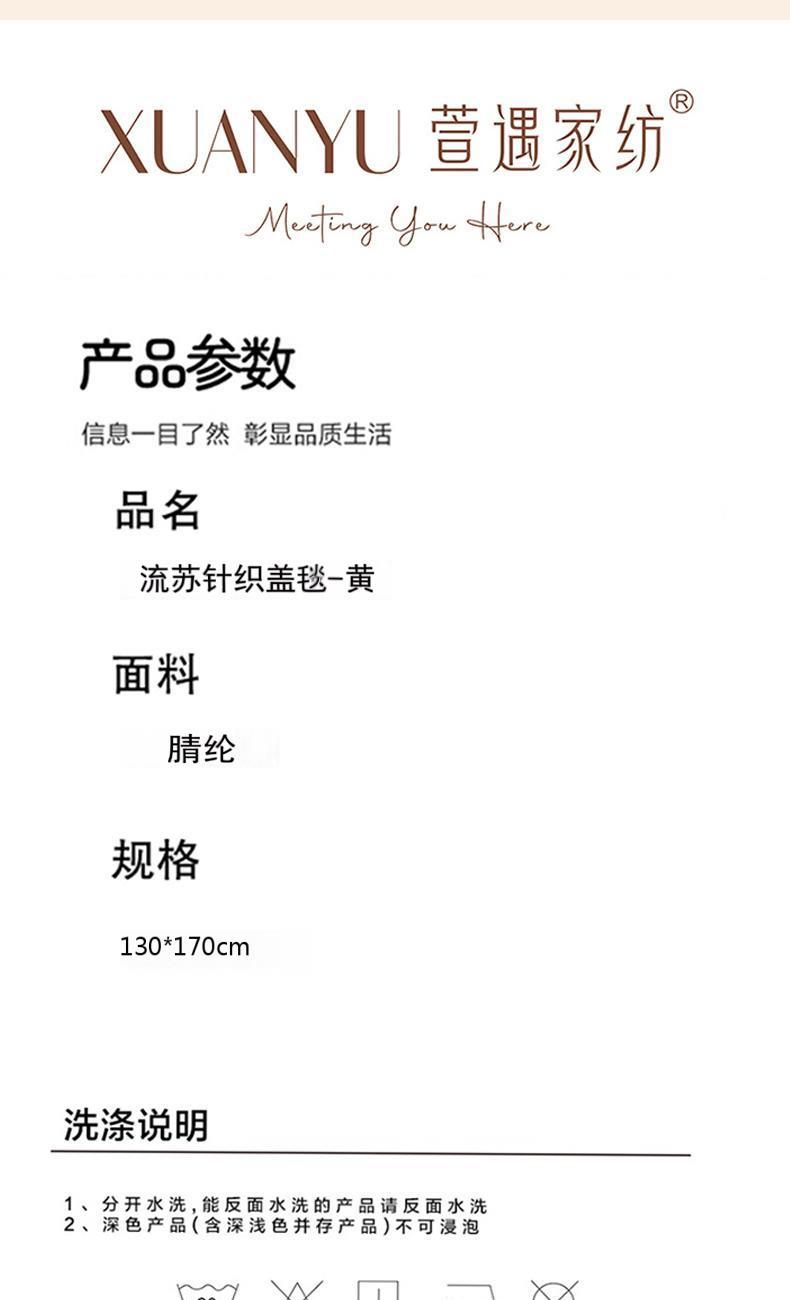 萱遇家纺流苏针织盖毯-黄Q-C71015