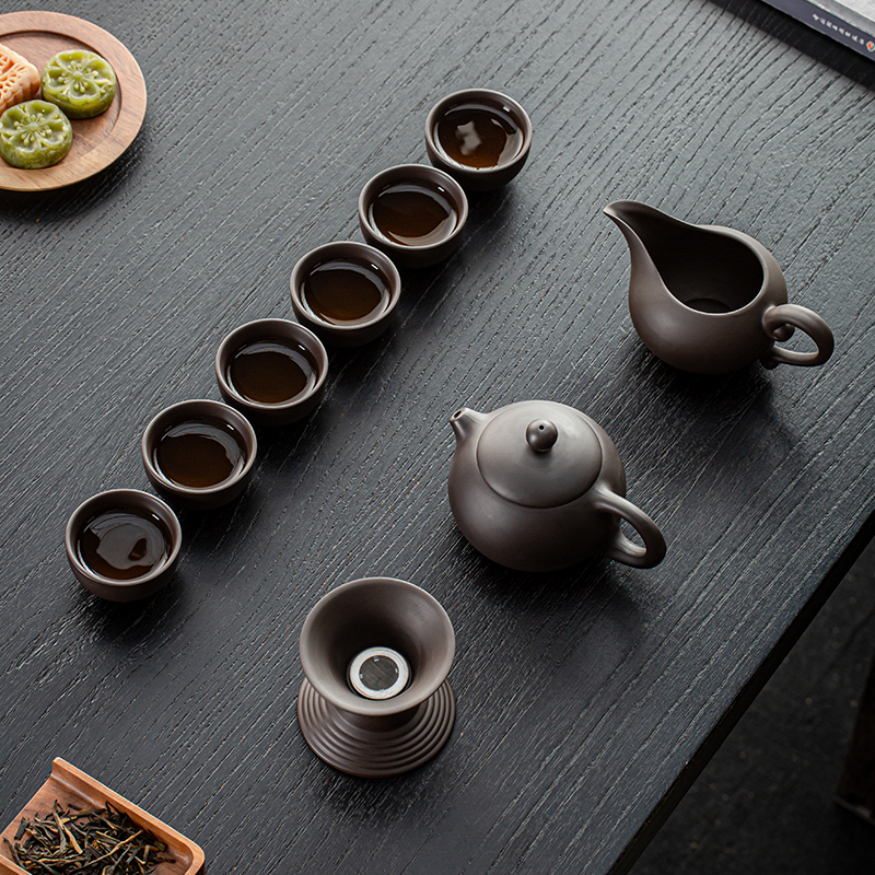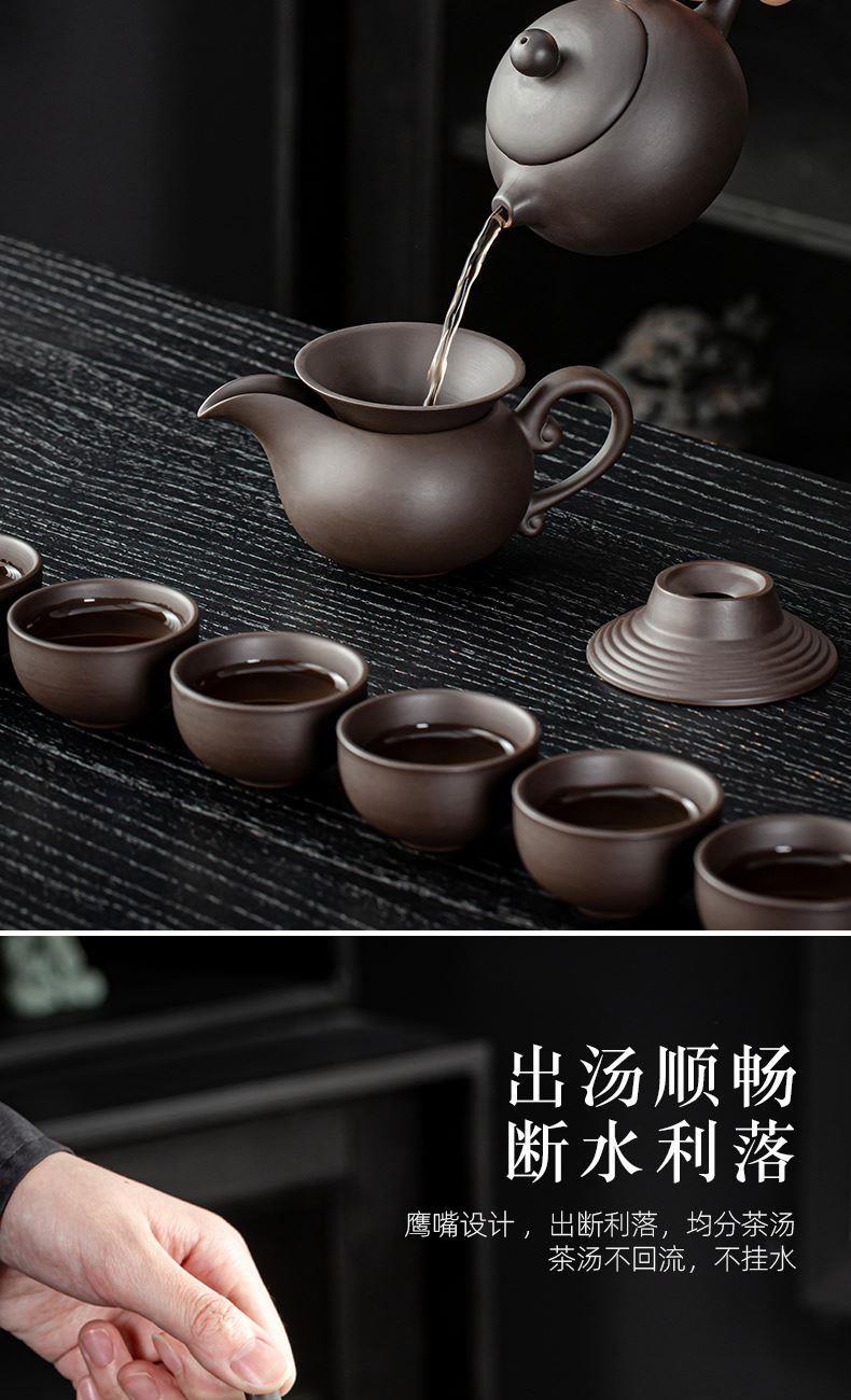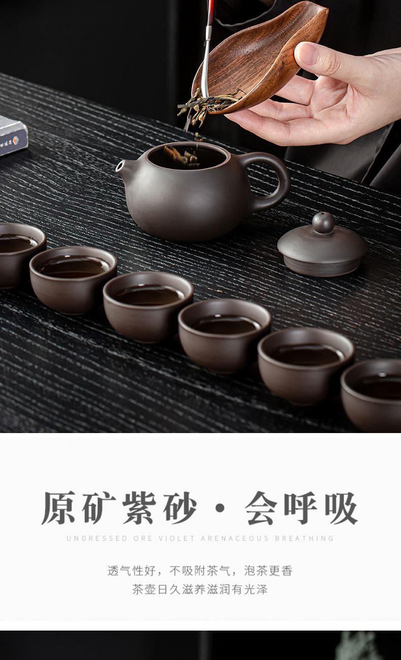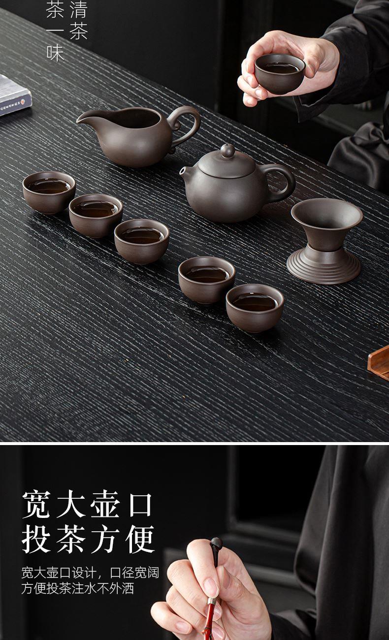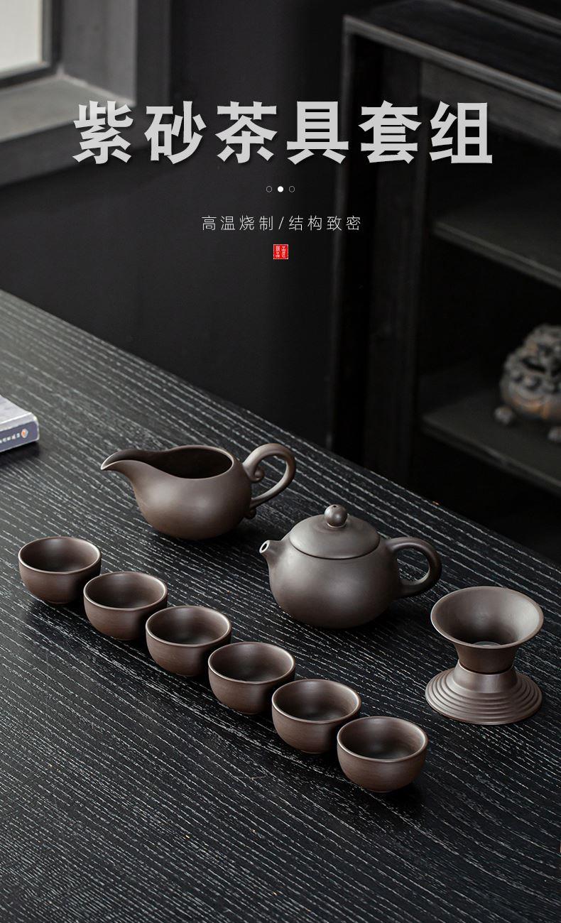 【产品配置】 茶壶*1 茶海*1 茶漏组*1 茶杯*6 礼盒*1 【产品说明】 采用天然紫砂泥料,温润有质感,兼具透气性; 壶嘴出水顺畅、断水利落; 防烫壶把拿捏舒适,底部打磨平整确保稳固; 茶漏组、茶海等配件设计简化冲泡流程,适合功夫茶仪式; 高温烧制,工艺精湛,确保茶具耐用且稳定性强。