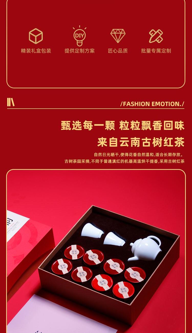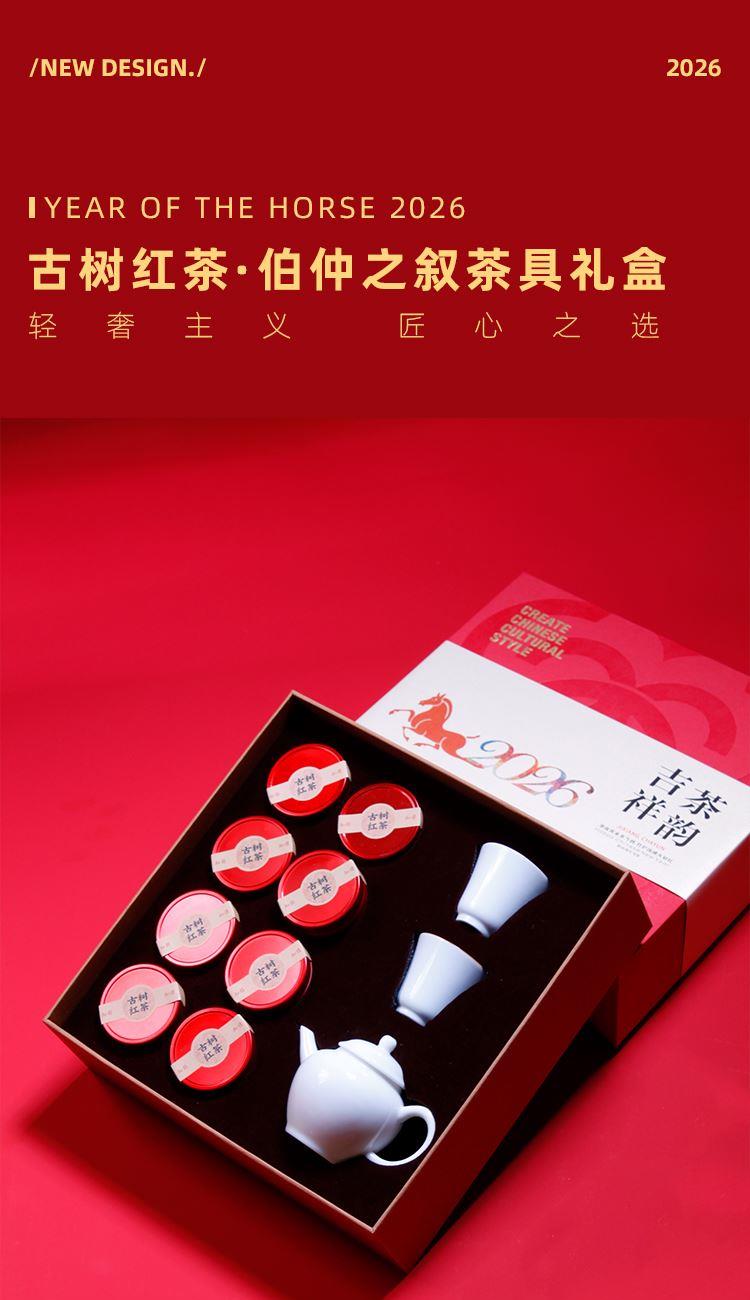 伯仲单杯x2 伯仲壶x1 古树红茶x8粒原产西双版古树红茶龙珠8粒 五秒出汤醇香甘甜 经典望川壶器型 精致典雅 耐看 一壶两杯随行品鉴 精装礼盒 可以定制企业logo 文化主题