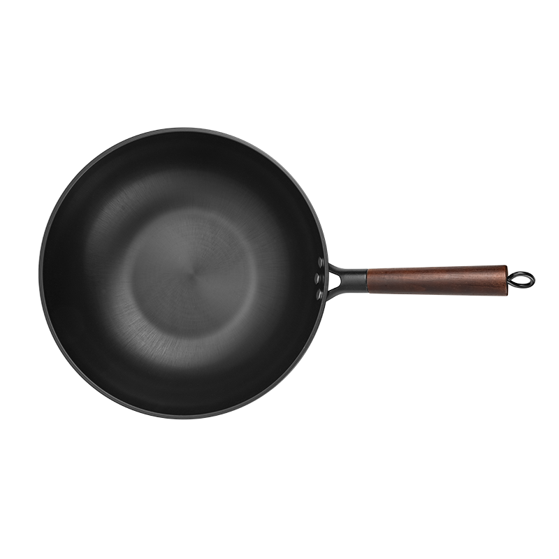 产品规格:32cm 产品材质:精铁 产品特点: 1、 黑色氧化工艺,无涂层更安全,真不锈。 2、原木手柄,符合人体工程学设计,隔热防烫,握感舒适,牢固耐用 3、32cm大尺寸设计,满足家庭多样烹饪需求。