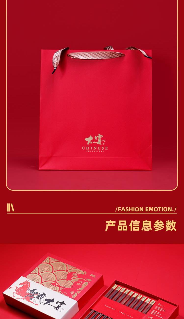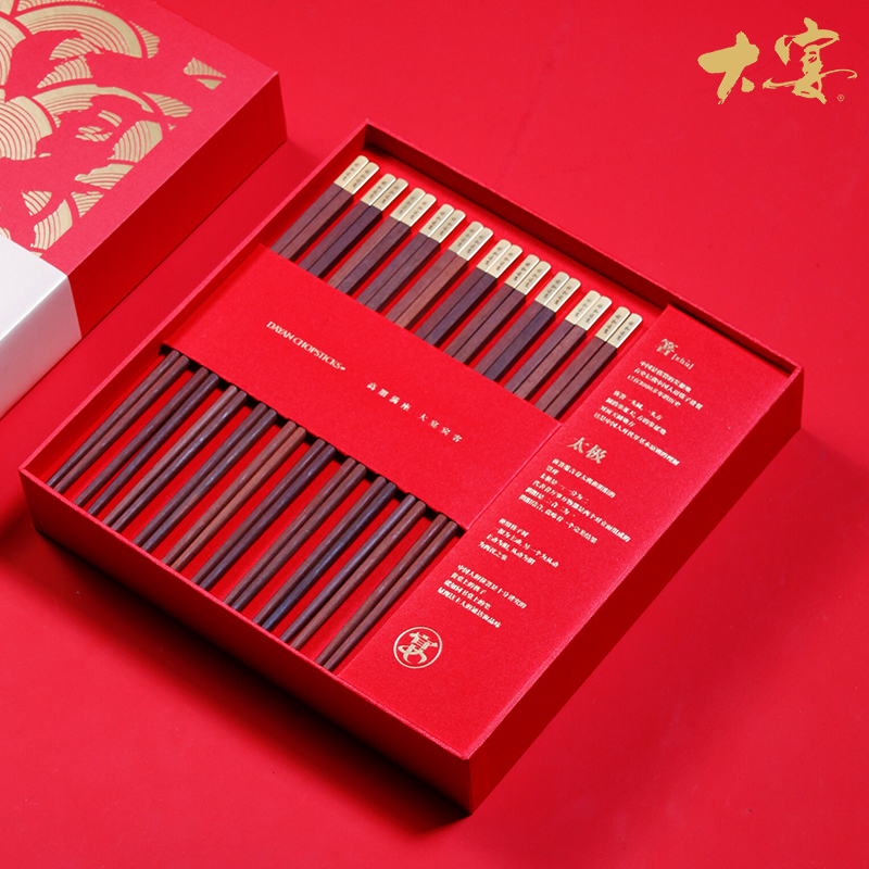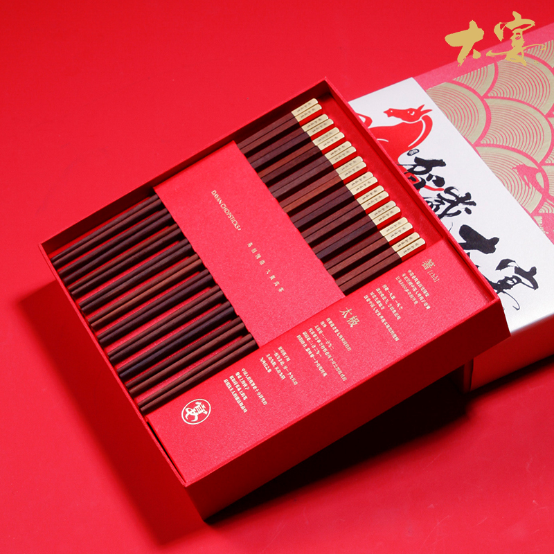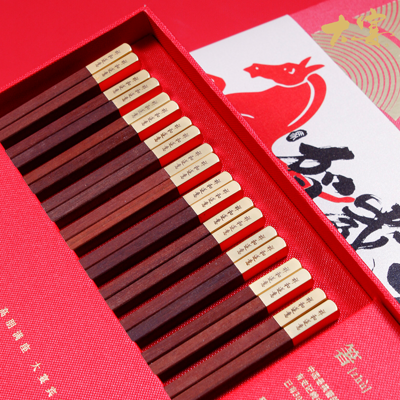 贺岁大宴10双装红檀木筷新年创意商务餐筷雅礼定制属礼物