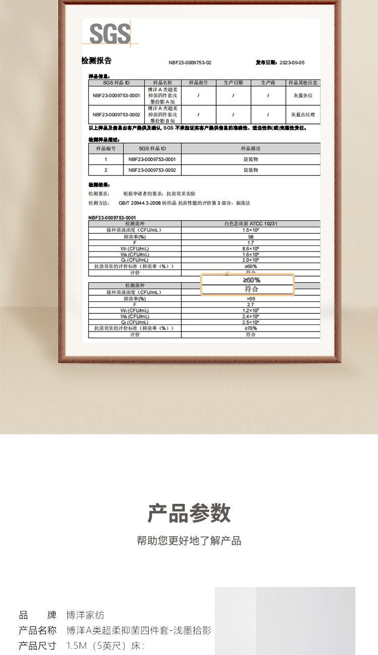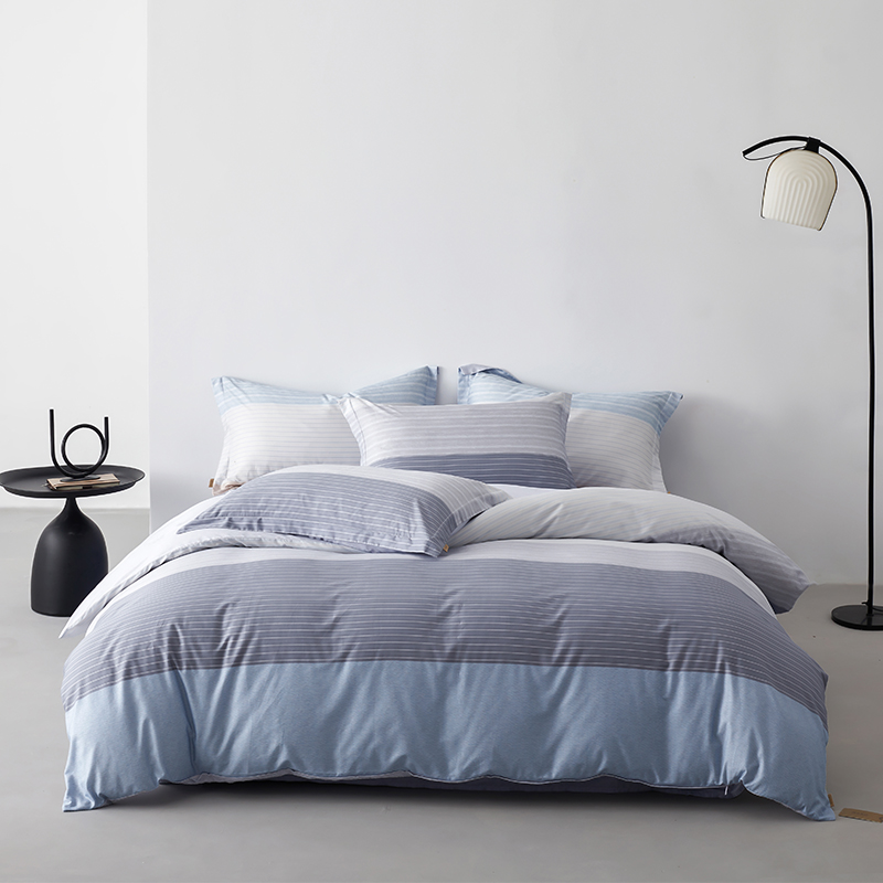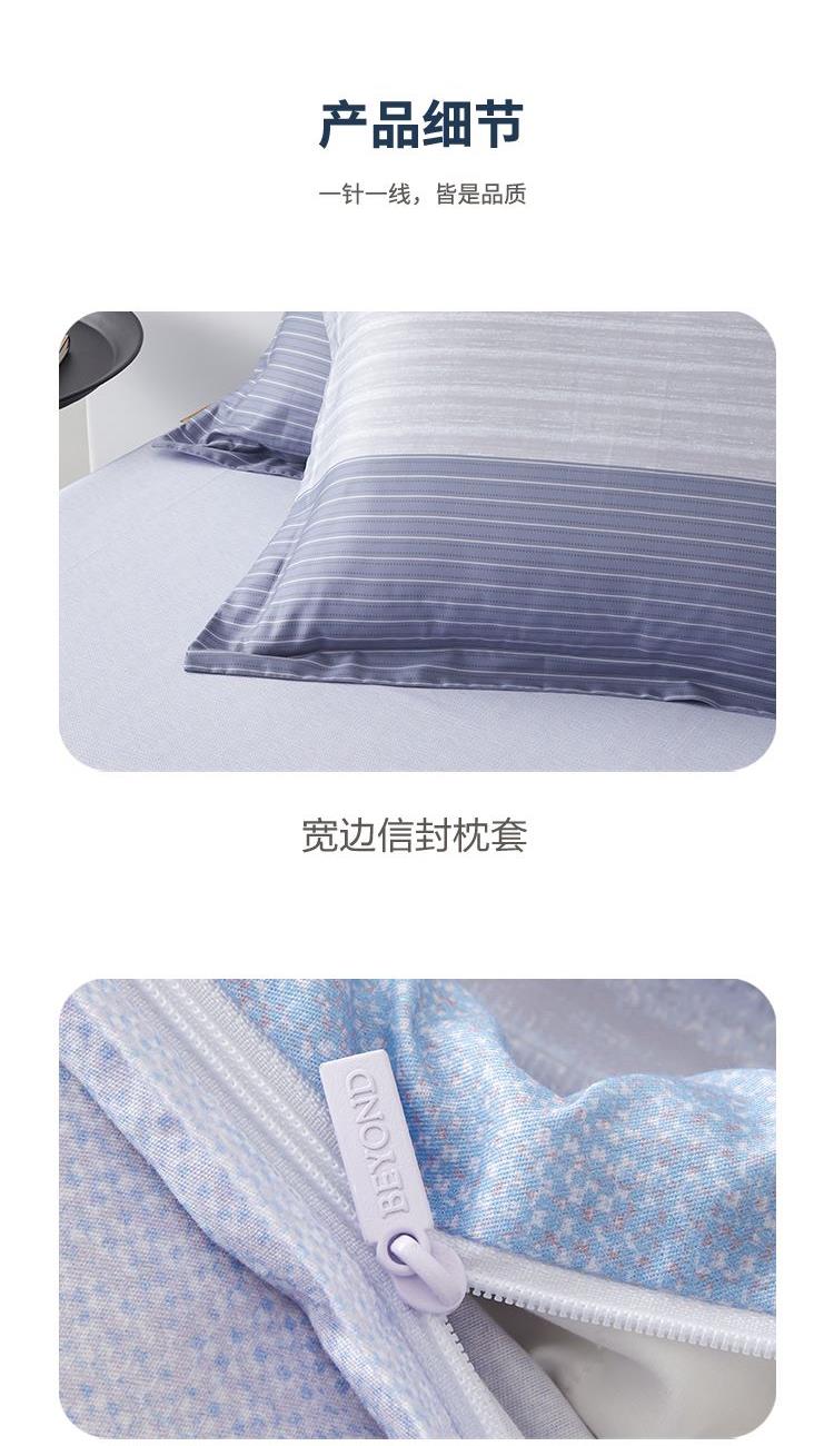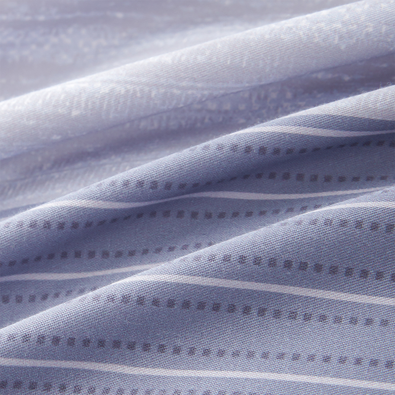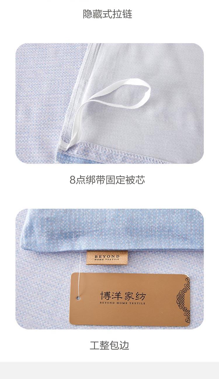 产品规格:1.5m床: 被套:200*230cm 床单:230*240cm 枕套*2:48*74cm 产品材质:棉 1、本品采用高密全棉面料,面料更柔软轻盈,触感温润,贴合肌肤透气性好。精湛印染工艺,色牢度高,床品不易褪色不易起球。 2、产品色彩上以不同深浅的蓝和灰交相辉映,整体呈现静谧纯净的画面,床品显得素雅洒脱,使整个床品清爽而又不单调。 3、全棉面料机洗方便,解放双手,久洗如新。