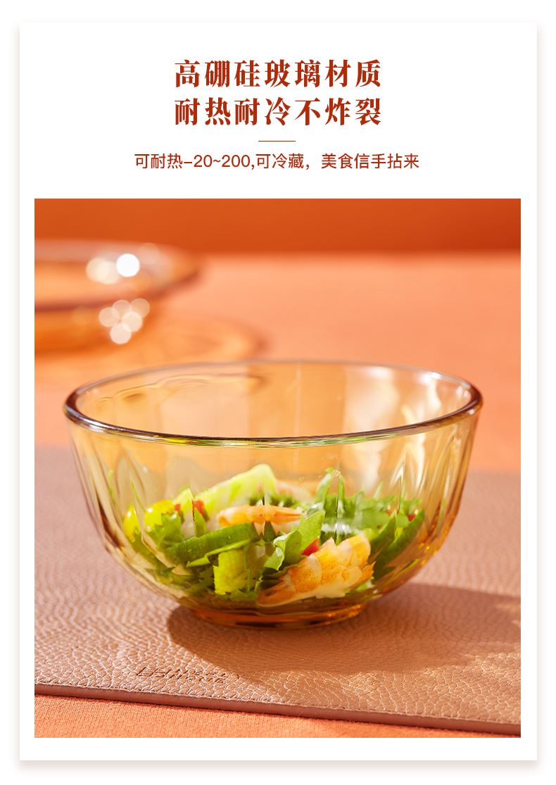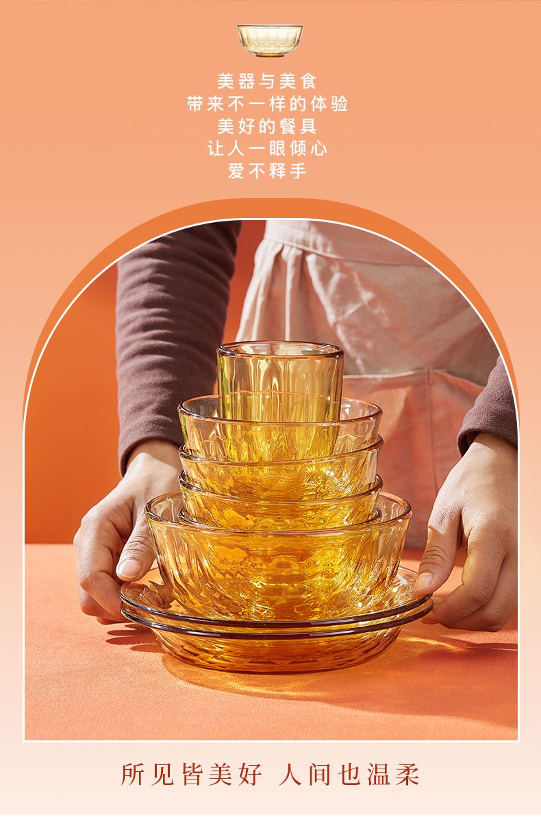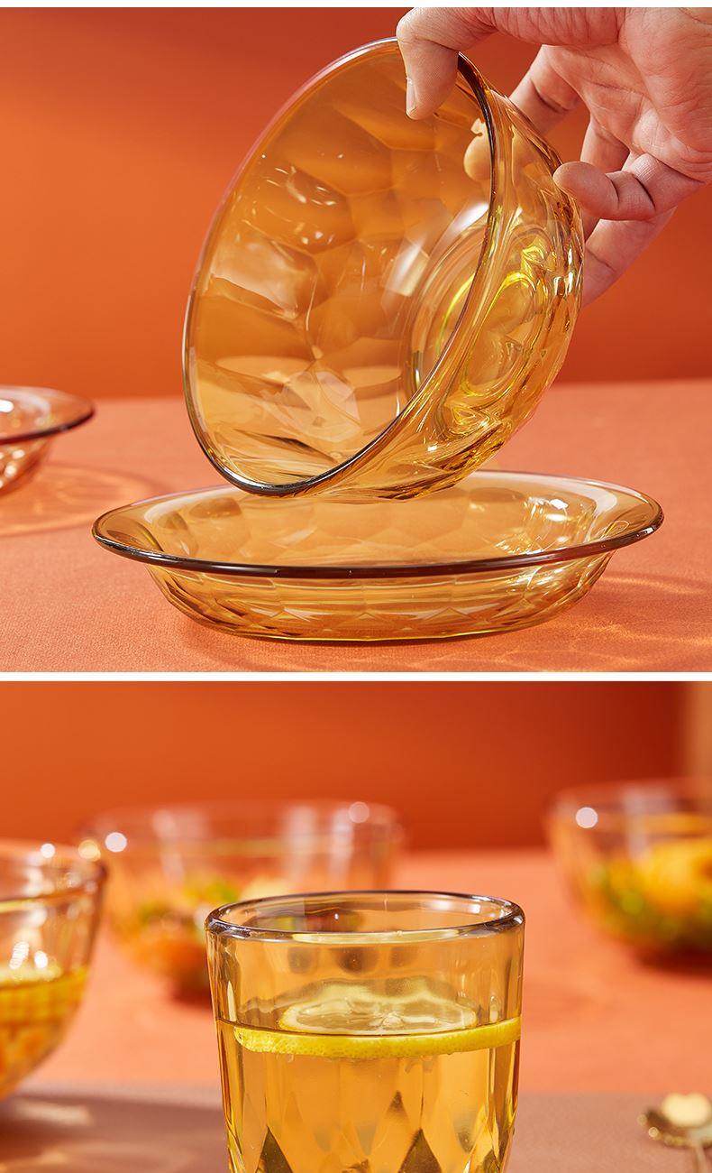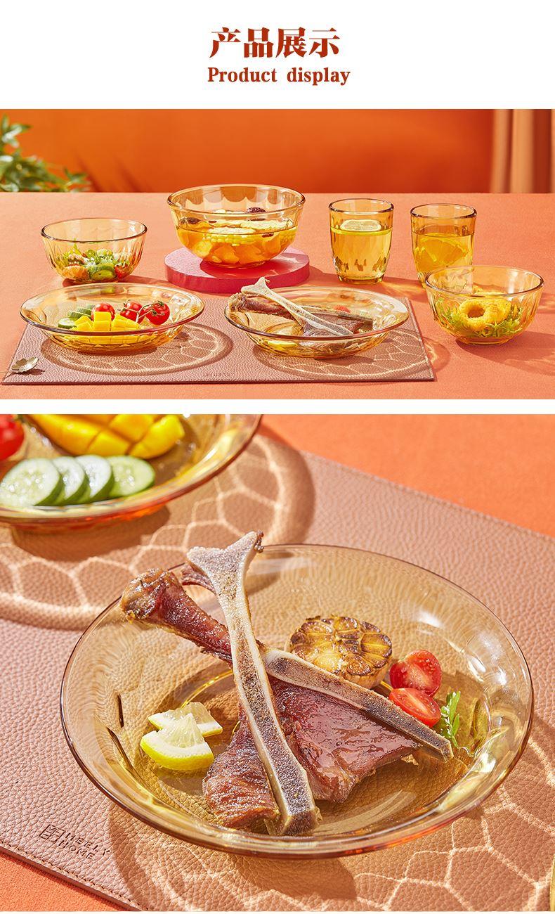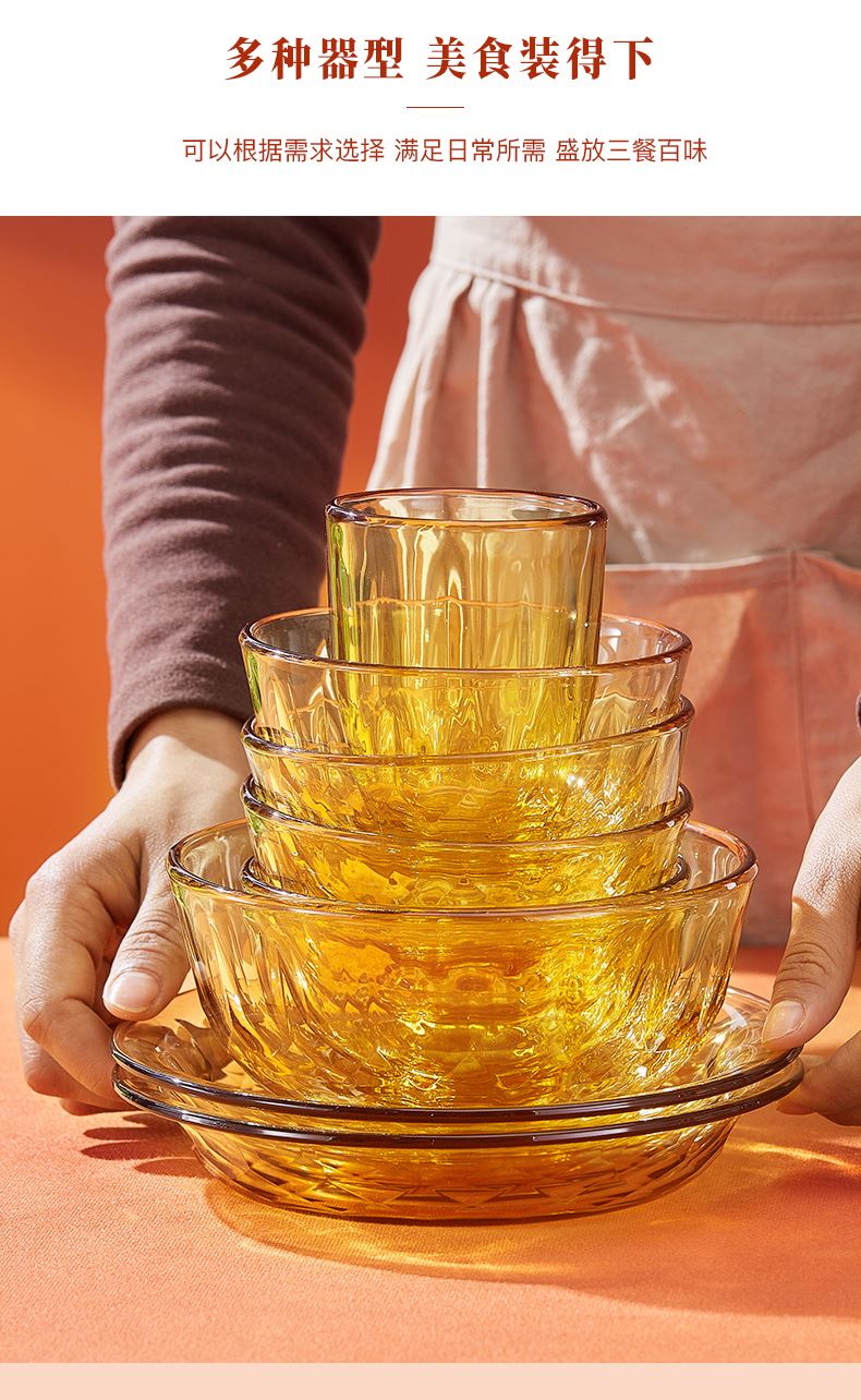 产品规格:小碗460ml*2、 盘196mm*2、杯260ml*2、大碗1000ml*1 产品材质:高硼硅玻璃 -20°C-200°C 彩盒尺寸:415*90*343mm 外箱尺寸:56.4*42.9*35.9cm 外箱毛重:18kg 产品特点: 1.产品采用高硼色料玻璃材质,颜色与生俱来,永不退色。烤箱、微波炉、冰箱冷冻放心使用。2.星境高硼餐具设计理念,用线条勾勒几何切面,以面为境折射时光、徜徉星空。3.触感温润,为您的餐桌增添一抹高雅。