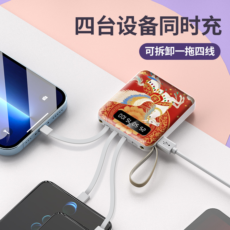 产品规格:小龙人方形自带线可拆卸移动电源+小龙人手机支架三合一数据线+梅花U盘+蓝牙耳机 小龙人方形自带线可拆卸移动电源:材质PC+ABS,容量10000毫安,尺寸7.8*8.3*2.3cm,净重:200g 小龙人手机支架三合一数据线:材质TPE+ABS+手感漆+彩印,尺寸4.9*7*2.2cm,产品电流3A,净重48g 梅花U盘:32G,尺寸6.1*1.2*0.4cm,净重10g,闪迪2.0芯片 蓝牙耳机:尺寸4*5.3*1.9cm,净重28g, 毛重:486g 礼盒尺寸:20.5*22.5*3.5cm 手提袋尺寸:26*21.9*4.5cm
