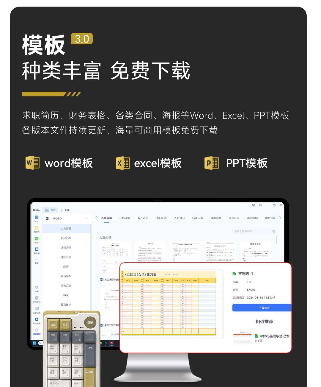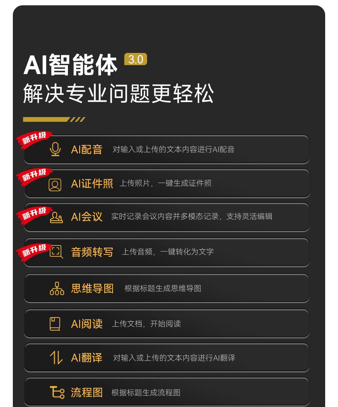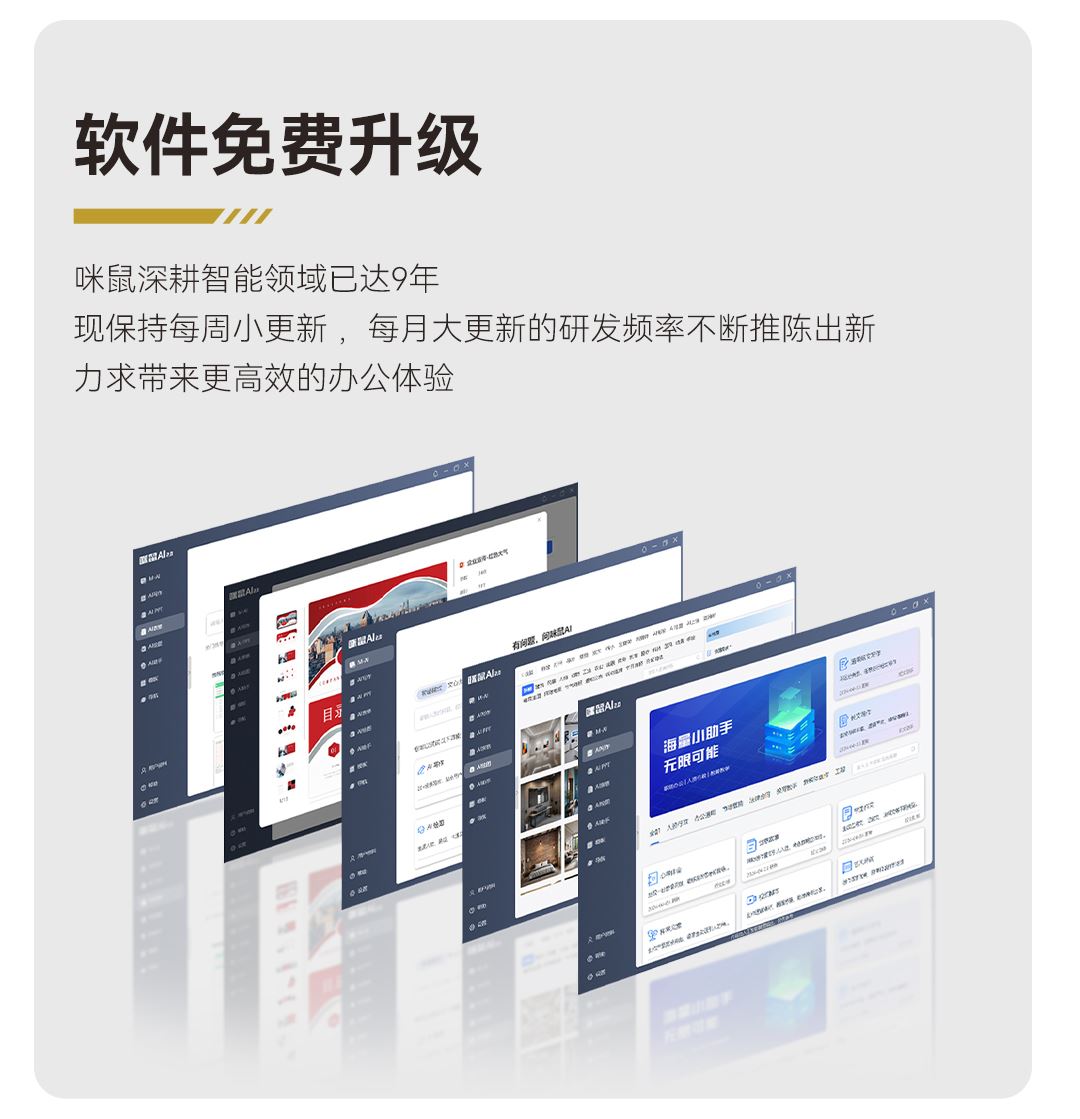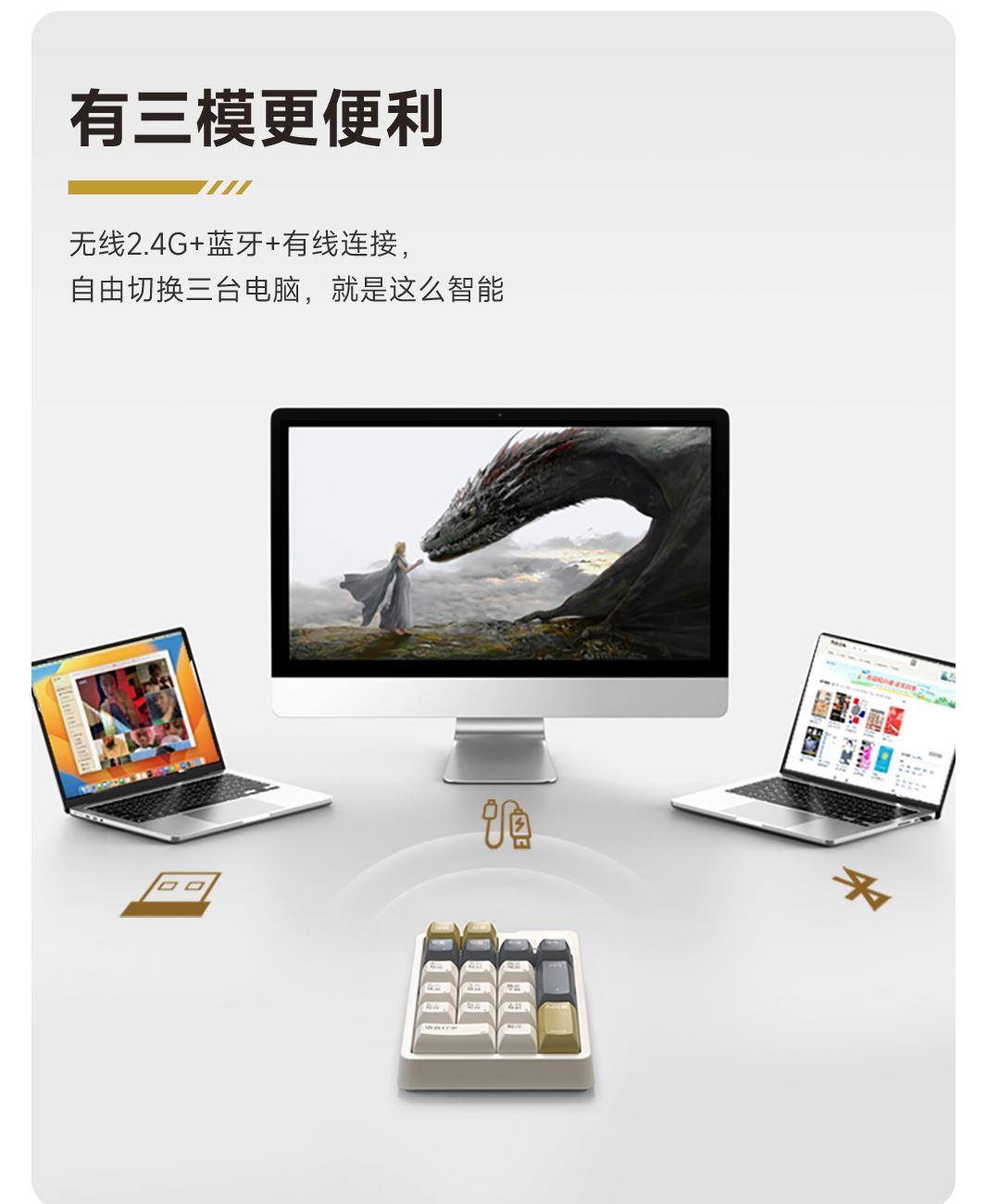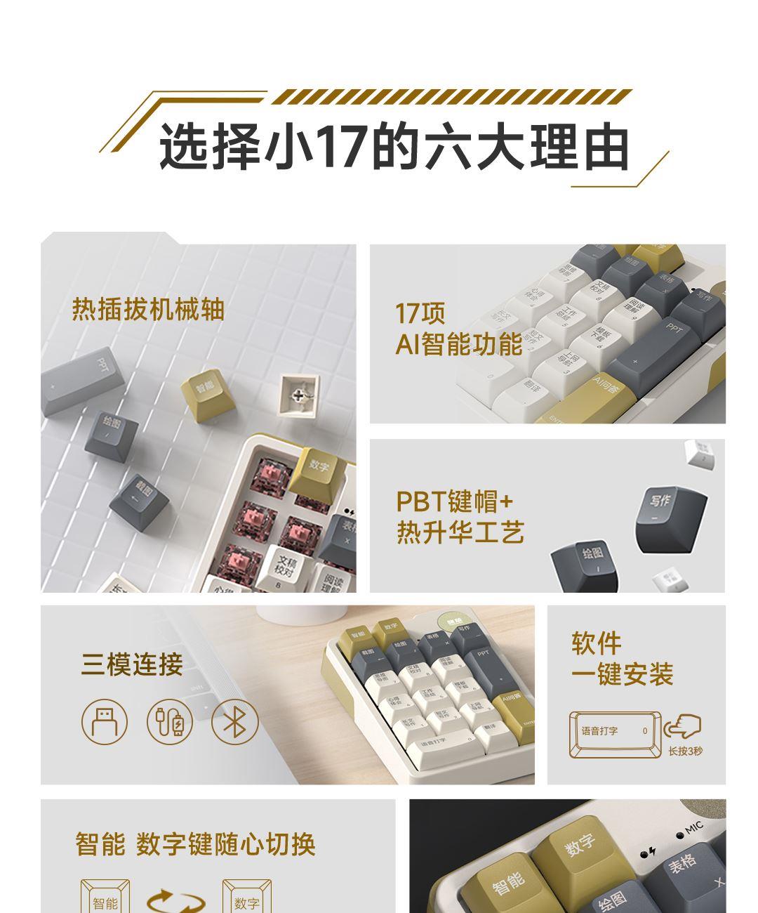 1.材质:ABS 2.搭载AI大模型:搭载9款 AI大模型 3.同时连接设备数量:3台 4.连接方式:无线2.4G 蓝牙 5.兼容系统:兼容多系统 6.按键数:≤60键 7. 供电方式:充电电池 8.电池容量650Ah 1.搭载Deepseek-R1模型6大通用模型+3大专业模型 2.AI问答 3.0 上知天文 下知地理 3.AI写作 3.0写有用的文章 4.AI PPT 3.0 做专业的PPT 5.AI绘图3.0绘专业的图片 6.AI智能体 3.0 解决专业问题更轻松 7.AI 3.0表格做全面的表格 8.AI 3.0 表格做全面的表格 9.语音打字3.0 一分钟400字 10.语音打字3.0 一分钟400字 11.AI截图 3.0一键截图提取 轻松编辑 12.双模更便利 13. 多系统兼容
