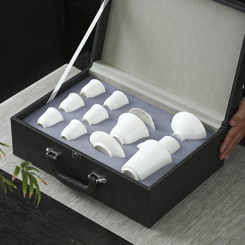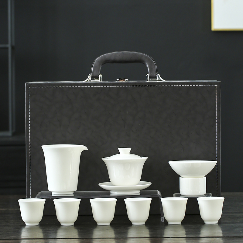 云博陶瓷羊脂玉皮盒套组茶具盖碗茶杯商务礼品伴手礼企业定制
