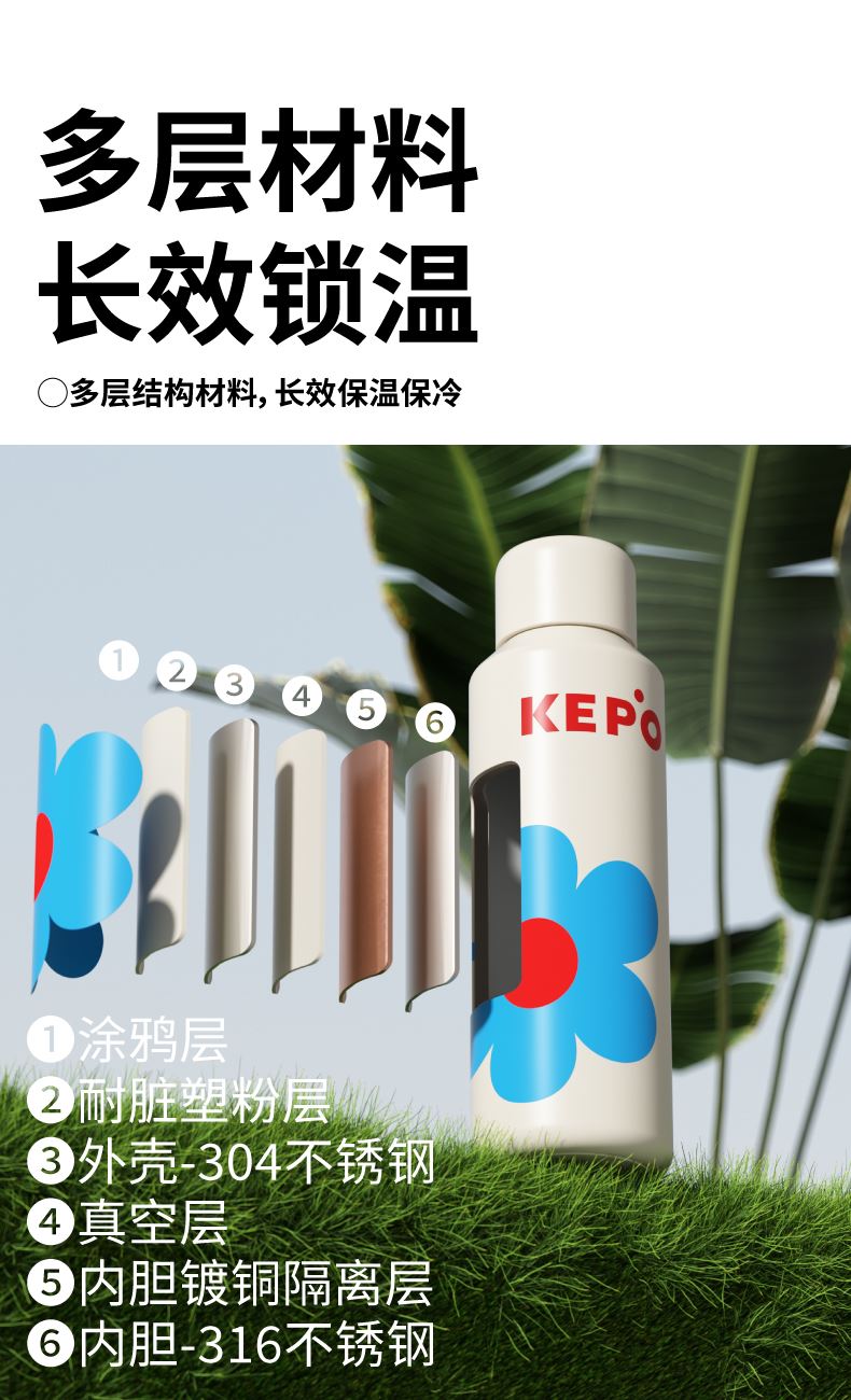 材质:316L不锈钢、硅胶、PP 颜色:慵懒夏日、绿蔓、小碎花 包装:彩盒 (1)无螺纹设计 (2)一键开盖 (3)车载可用设计 (4)花园系列,高颜值设计