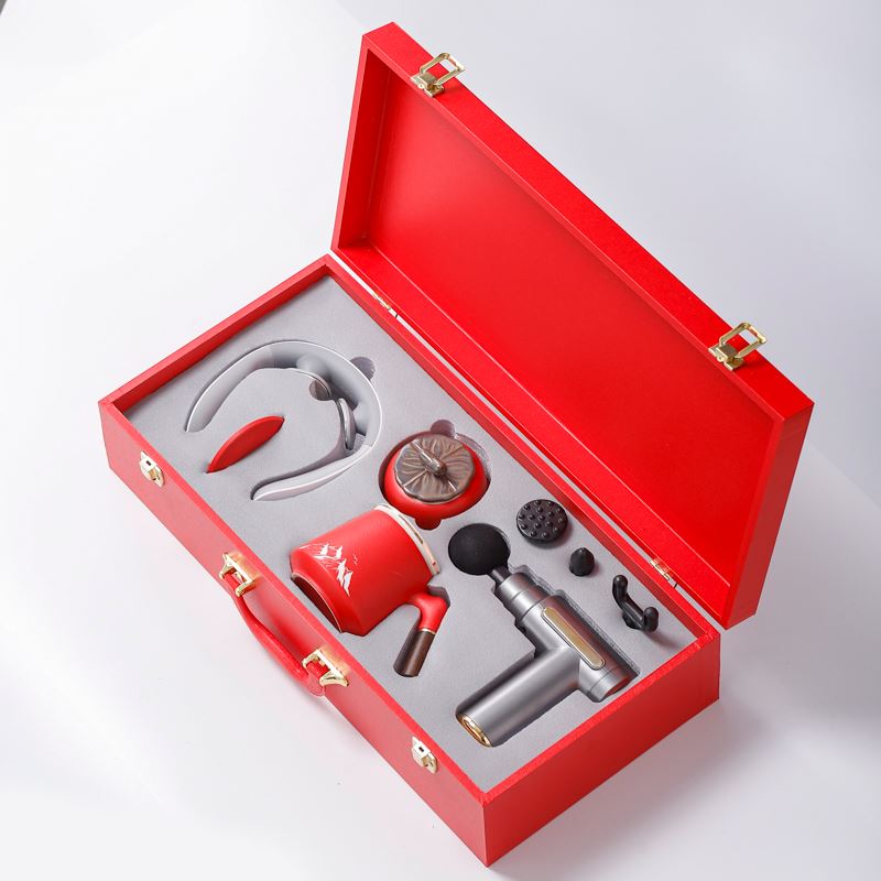 配 制: 1筋膜枪 办公杯 茶叶罐 颈椎仪或移动充电宝 笔记本锦盒 规格:筋膜枪:17.4*14cm 办公杯14.5*10.4cm 茶叶罐9.6*9cm 颈椎仪:300毫安 礼盒47.9*23cm 工艺:商务实用性礼品,上班族刚需产品。专业级筋膜枪,6档变速,4种按摩头,液晶触屏,深度缓解肌肉酸胀。移动充电宝,1W毫安,自带四根可拆线,内置手机支架轻薄便携,大容量智能电芯,续航更长充电更快。