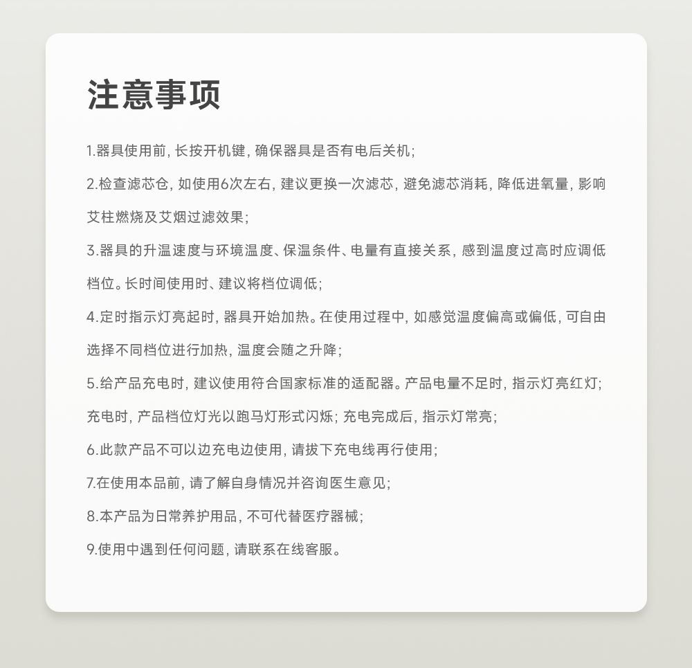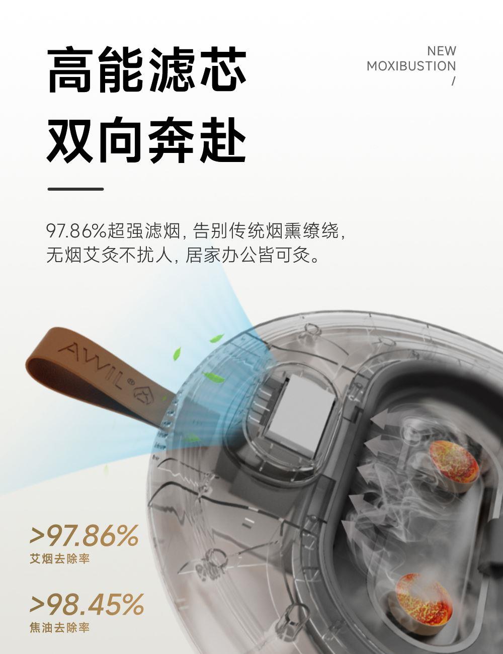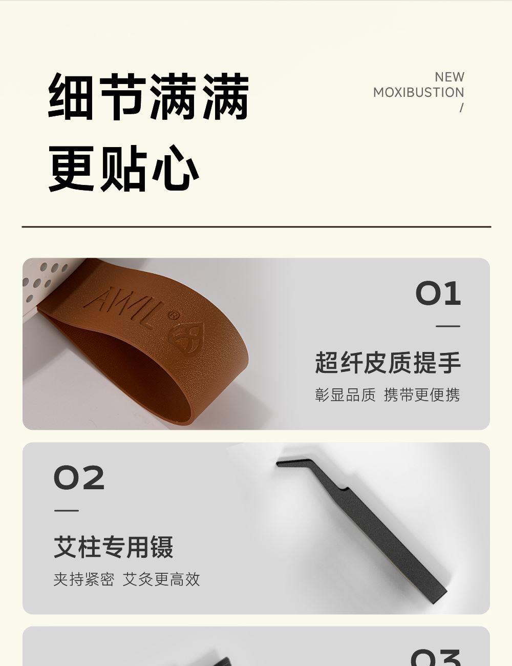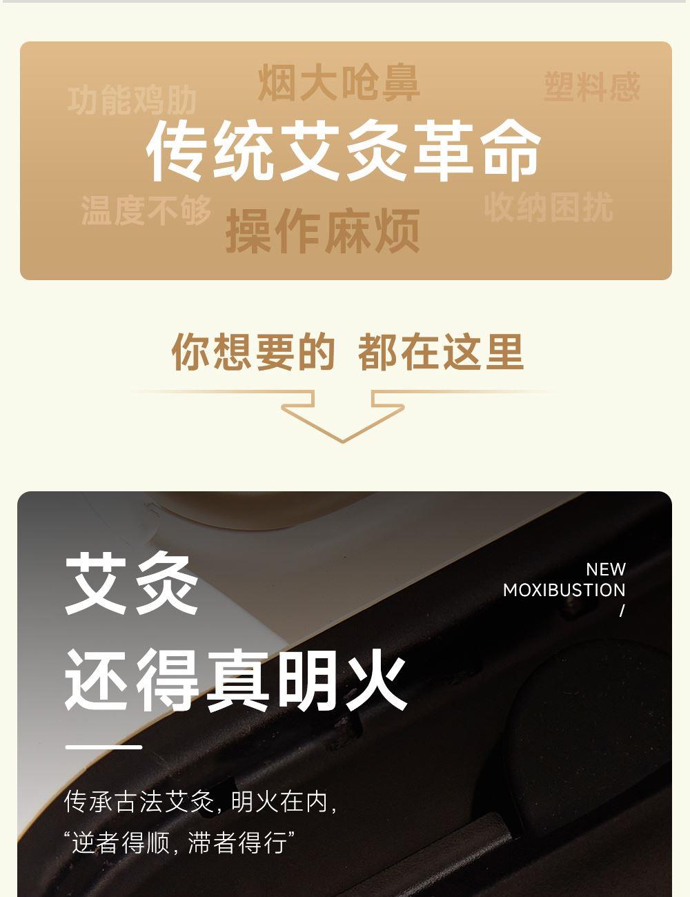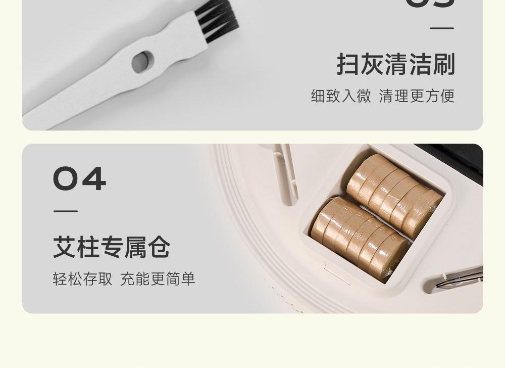1、明火艾灸+科技智能的创新设计,为消费者提供了更专业安全且好用的全新灸养解决方案; 2、坐垫选用星空斜纹毛呢布料,亲肤柔软,耐磨透气性强;B1级别高弹防火海绵,防火阻燃,柔软高回弹久坐不变形。 3、智能两档温控、明火艾灸;8层过滤烟油系统;3.5cm专研配方艾柱,内置双仓可放两个艾柱,发热更快,灸感更好; 4、耗材、配件一体化收纳,产品小巧易放置,使用更便利;可多场景移动使用; 5、工艺材质,更具礼品属性,可送朋友、送配偶、送父母; 6、使用人群:35-45岁精致女性,40-50岁中产男性;亚健康人群,送礼人群 ;