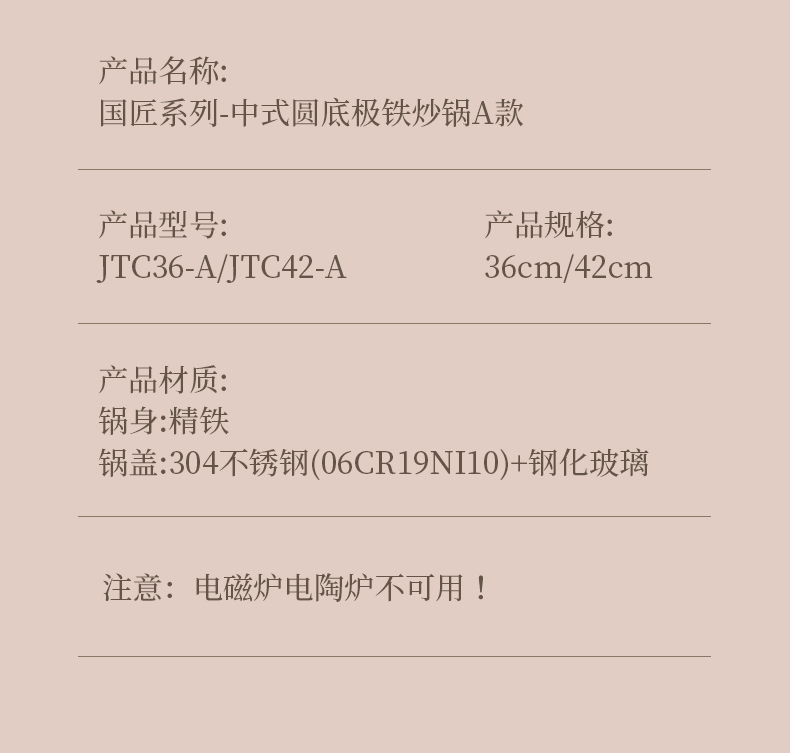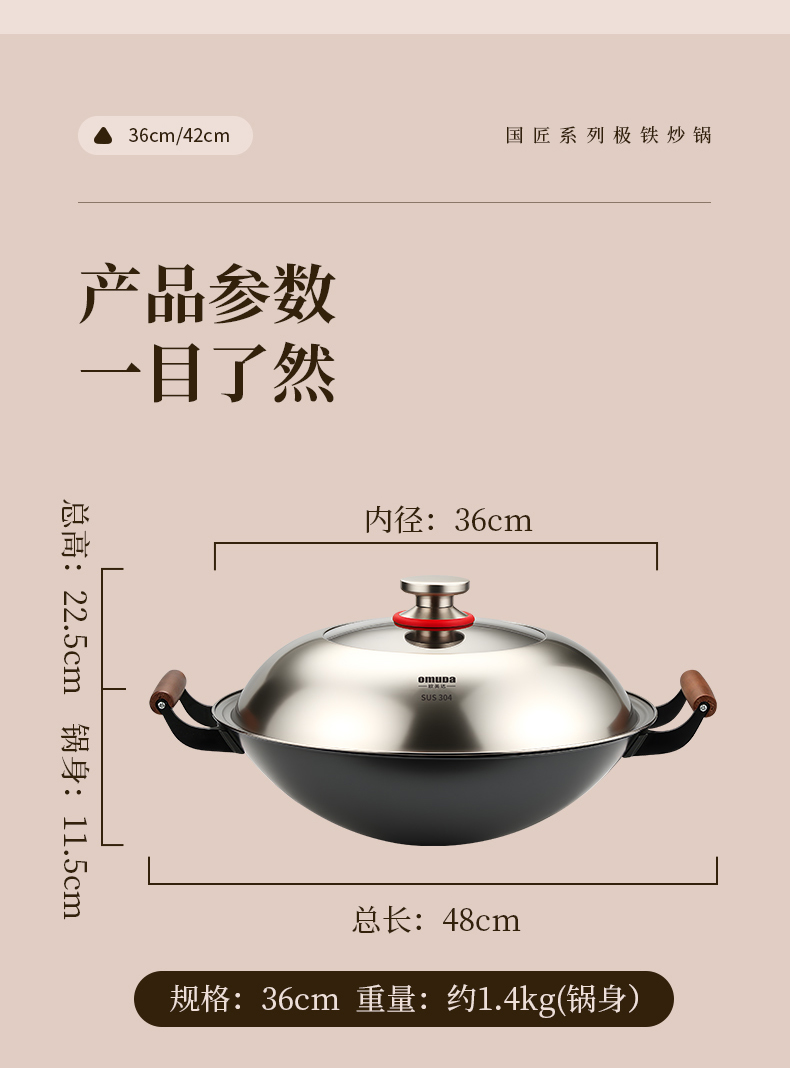 欧美达国匠系列-中式圆底极铁炒锅A款42CMJTC42-A