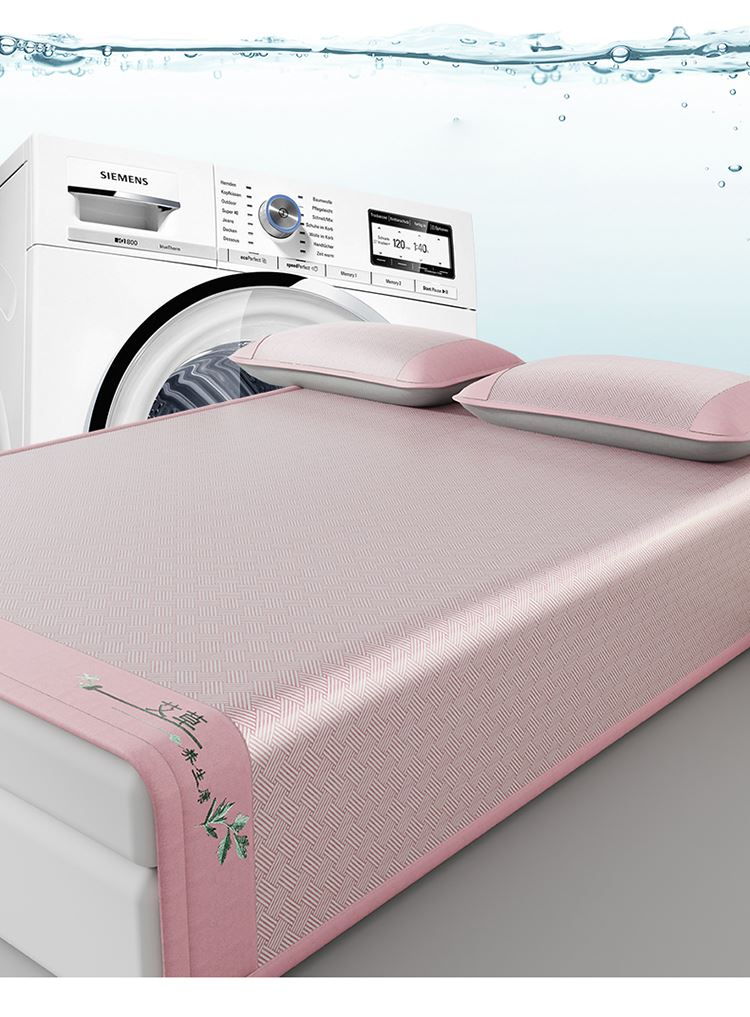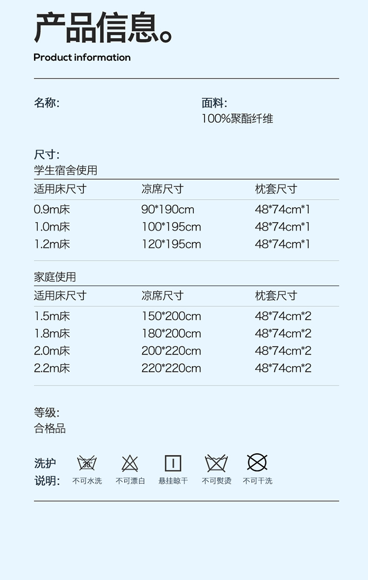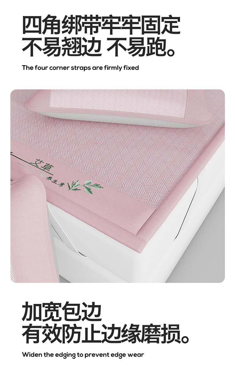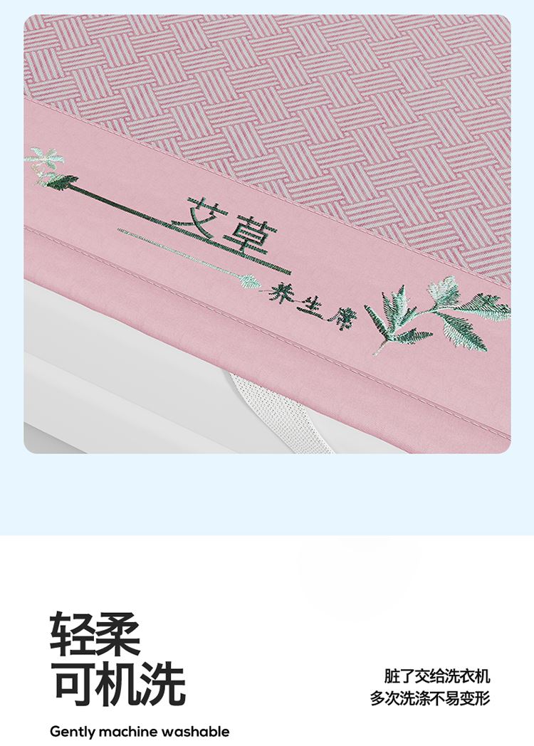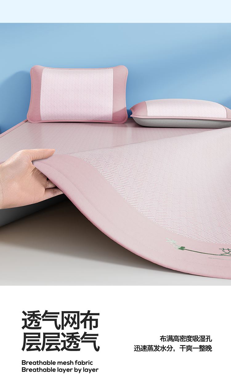 1:艾草养生席凉 睡到自然醒 2:冰凉再升级开启沁凉夏夜 的气息沁入心怀 冰丝席自带凉爽消暑质感,一股自然惬意 3:冰丝材质适合怕凉体质,凉感轻柔温和凉感不伤身 尺寸:180x200cm凉席+48*74cm*2枕套一对 包装:彩盒