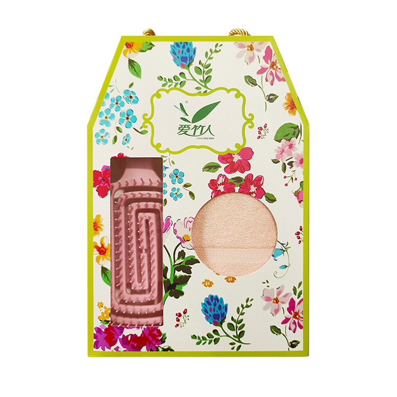 爱竹人竹纤维美容巾粉色气垫梳2件套C04