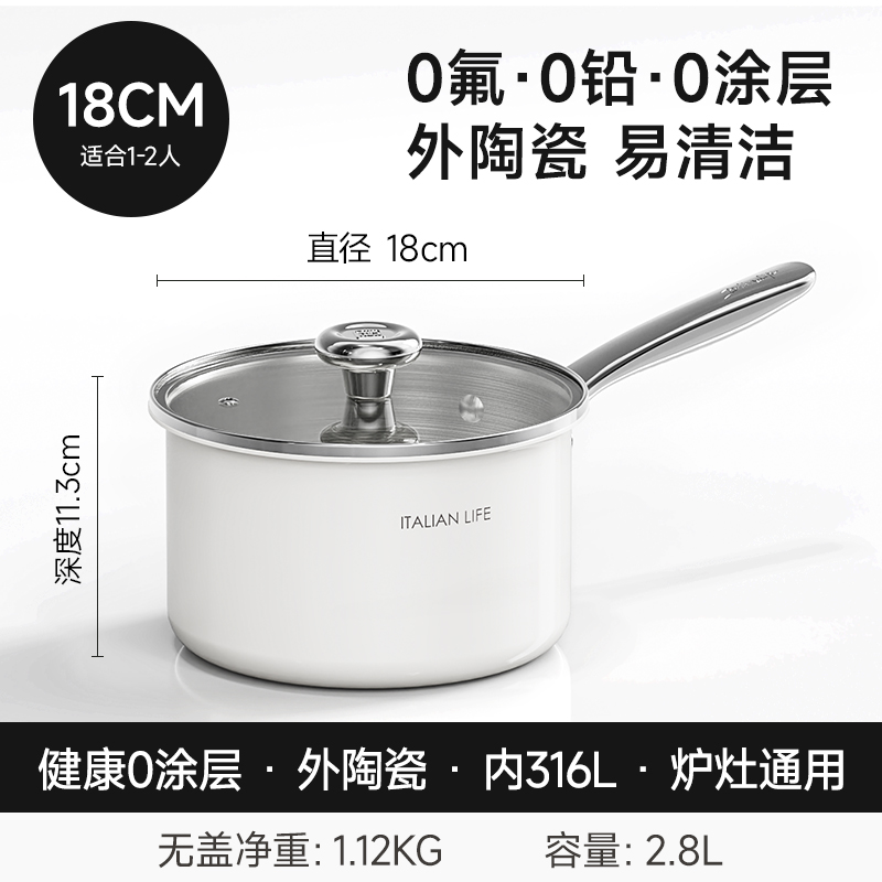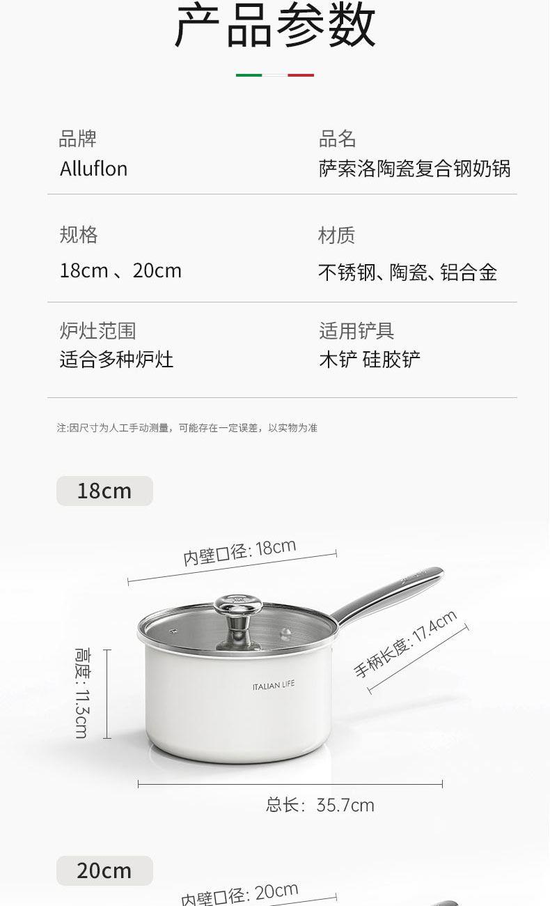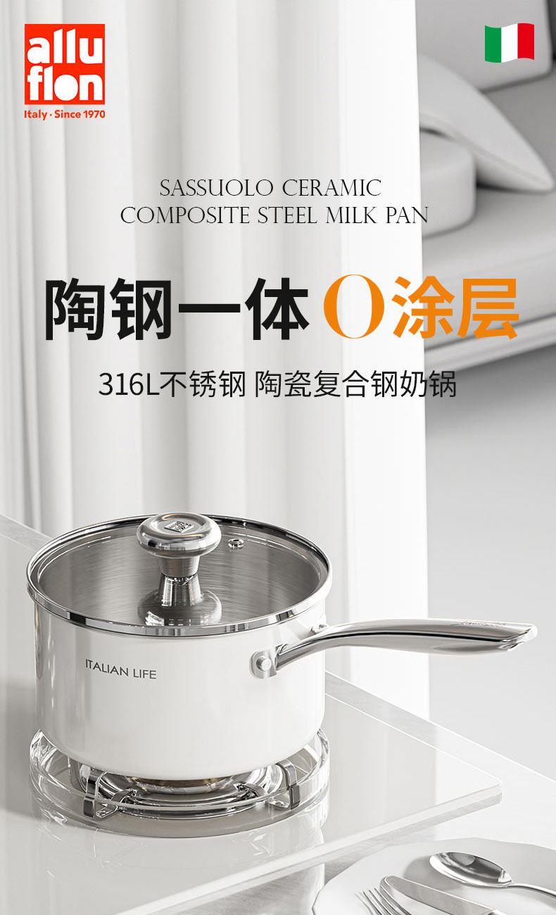 Alluflon阿路弗仑萨索洛陶瓷复合钢奶锅18cm