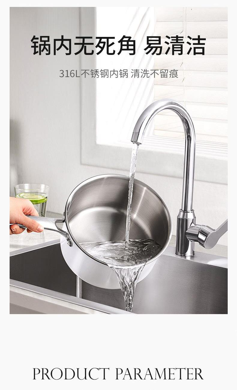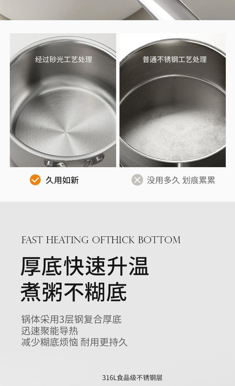 规格:18cm 材质:复合钢 单个尺寸:390X250X148 1、0涂层脱落,0氟更健康 2、内316L不锈钢外天然陶瓷,纯净健康 3、外陶瓷釉面,不留划痕 4、内里砂光工艺,强度更高耐磨 5、3层钢复合锅底,不糊底 6、锅身加高,不惧沸腾溢锅。