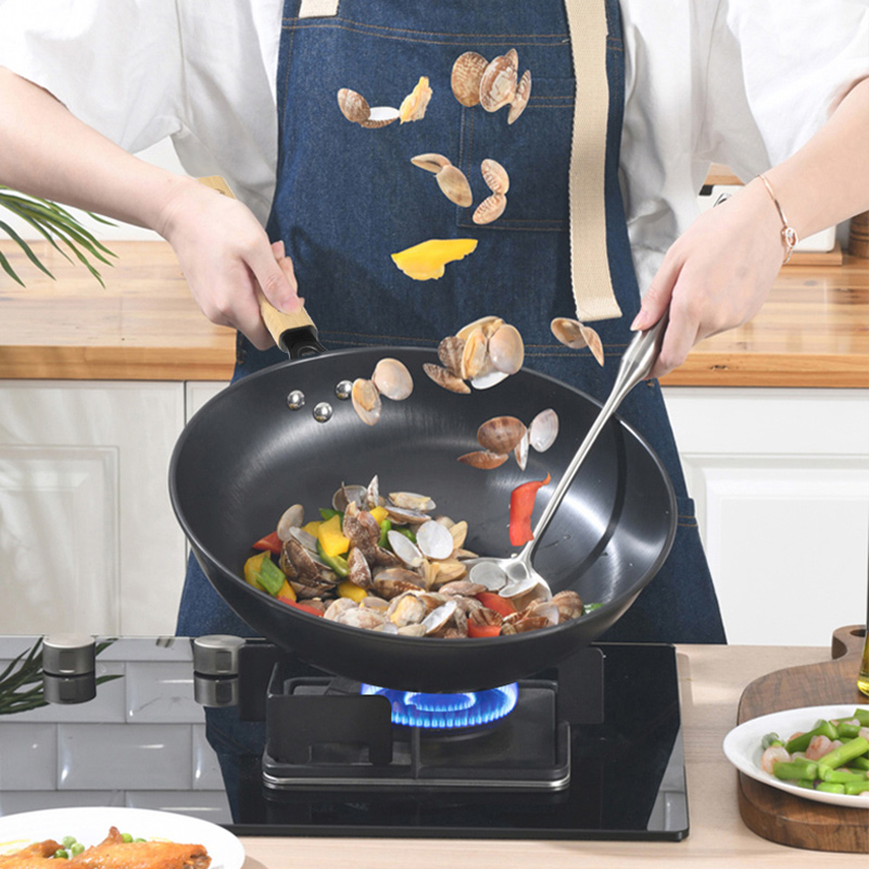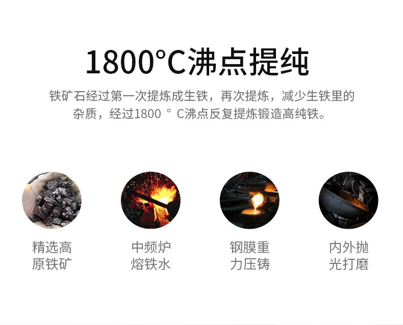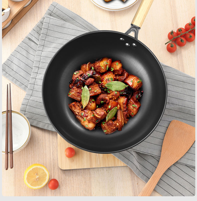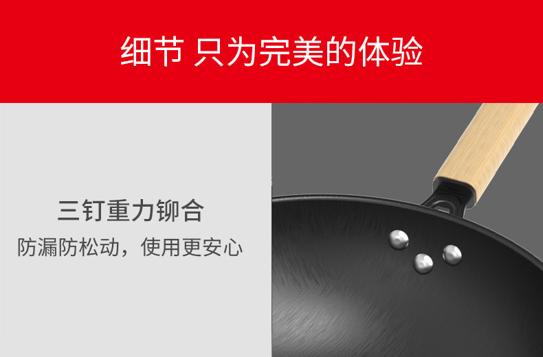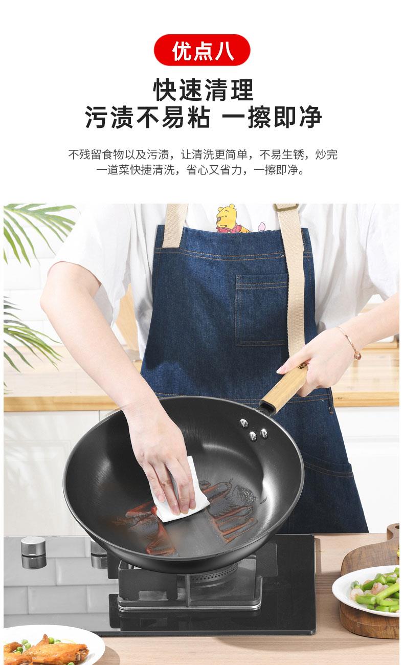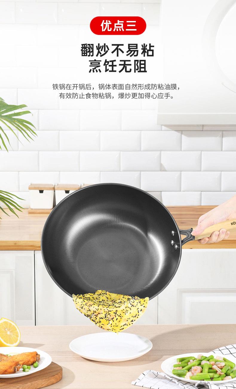 规格:32cm 重量:2.6kg 包装尺寸:77*40*53cm ◎甄选优质精铁打造锅身,不挑锅铲,金属、硅胶、木质锅铲等都可以使用;不挑食材,花蛤、螺师、排骨都可以轻松驾驭;不挑清洁工具,钢丝球、百洁布都可以洗涤,无涂层,坚硬耐磨,再不用担心掉漆了。 ◎采用渗氮处理新型技术,经两次高温熔炼提纯工艺,提高了铁的硬度和密度,大大增强铁锅防锈能力,再也不用担心锈迹斑斓危害身体健康。 ◎铁锅在开锅后,锅体表面自然形成防粘油膜,有效防止食物粘锅,爆炒更加得心应手。 ◎锅身采用数控旋压技术,一体成型,底厚壁薄,导热快速且均匀可大量减少油烟的产生,让厨房不再乌烟瘴气,油烟满地。 ◎锅底螺旋纹设计,可防止锅底凹凸不平,并且做到不挑炉灶不易拱底,是出租屋里电陶炉的好搭档。