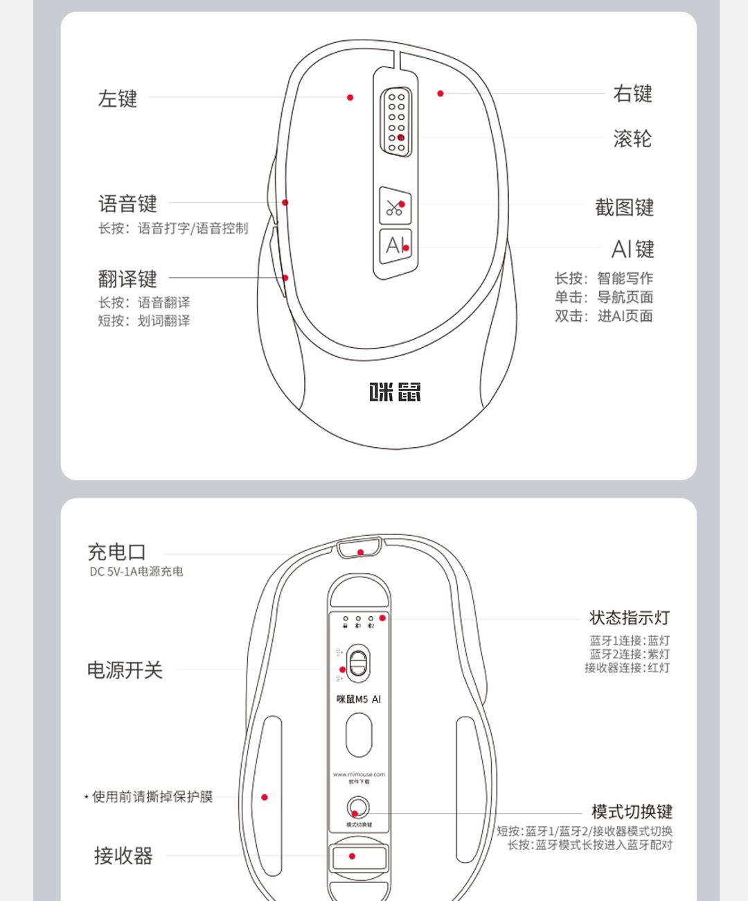 • 咪鼠科技AI智能鼠标M5AI黑色