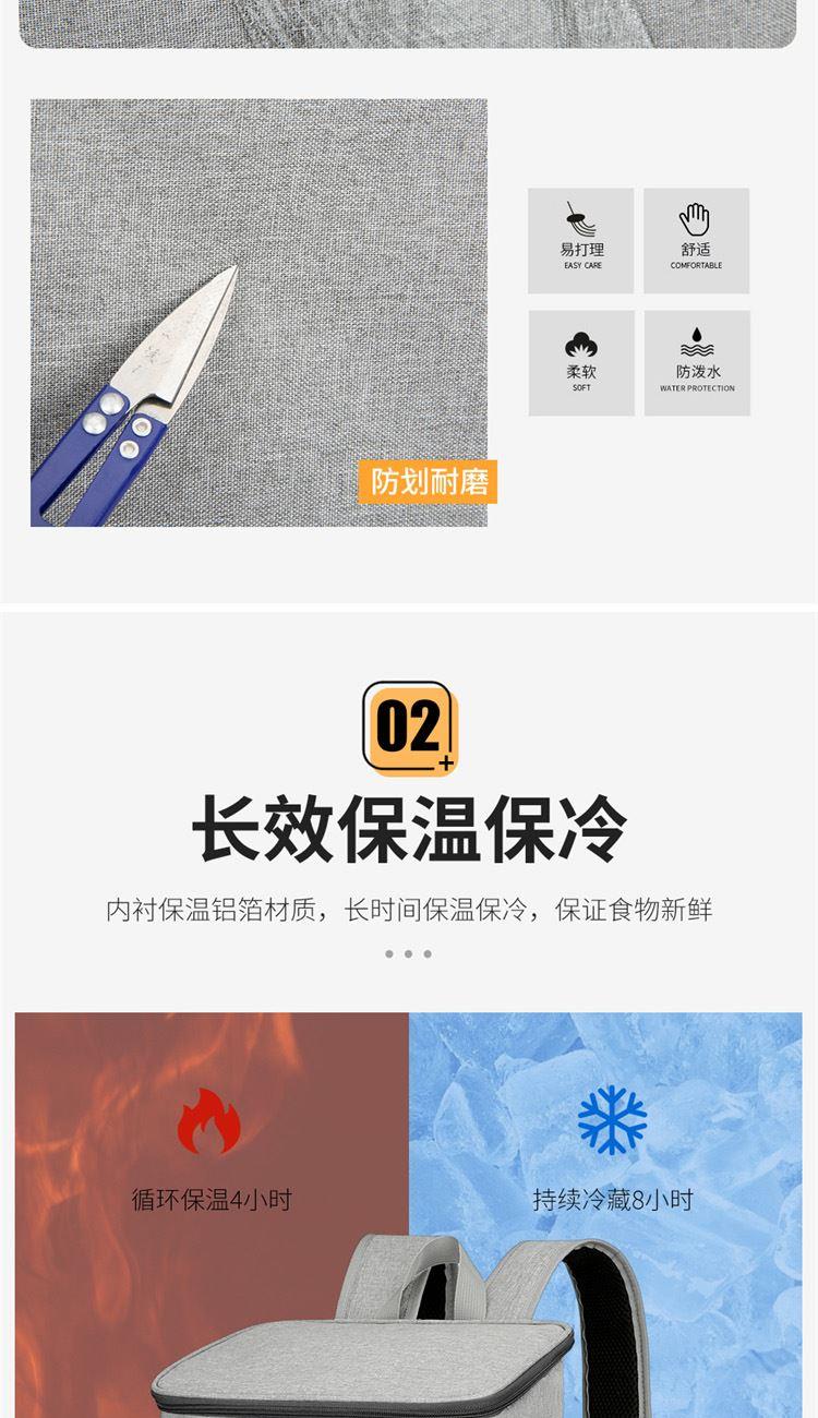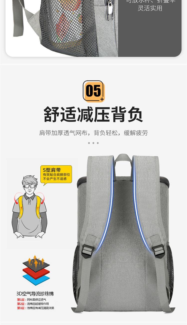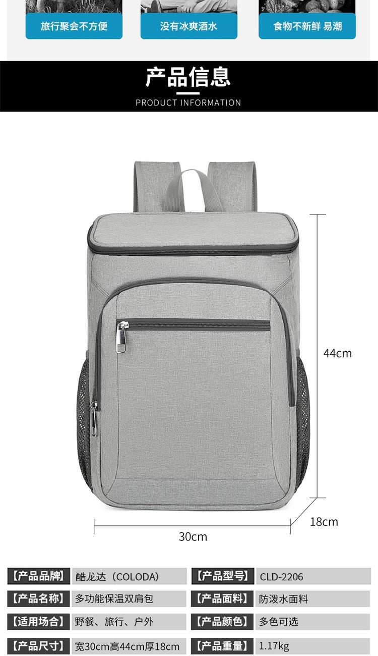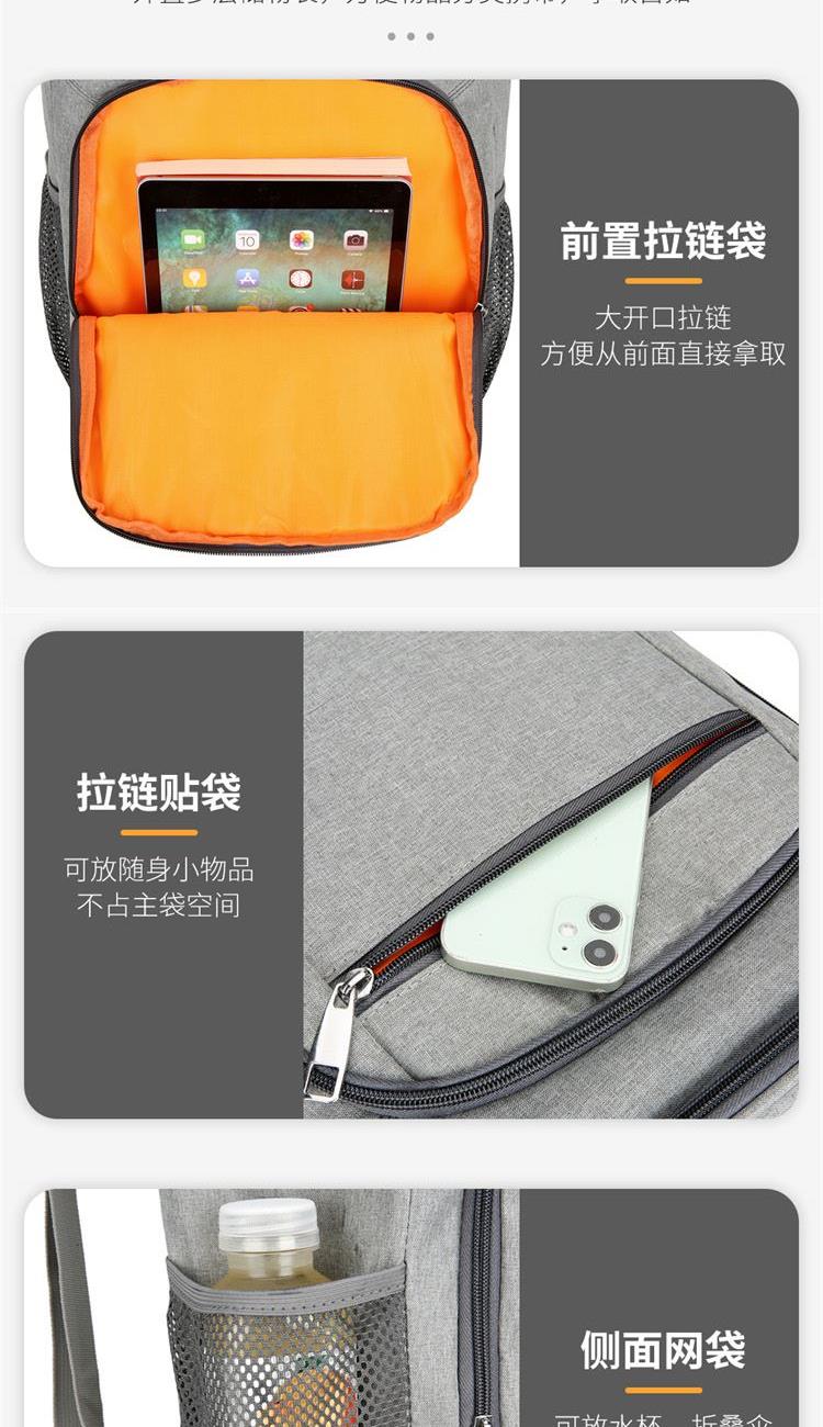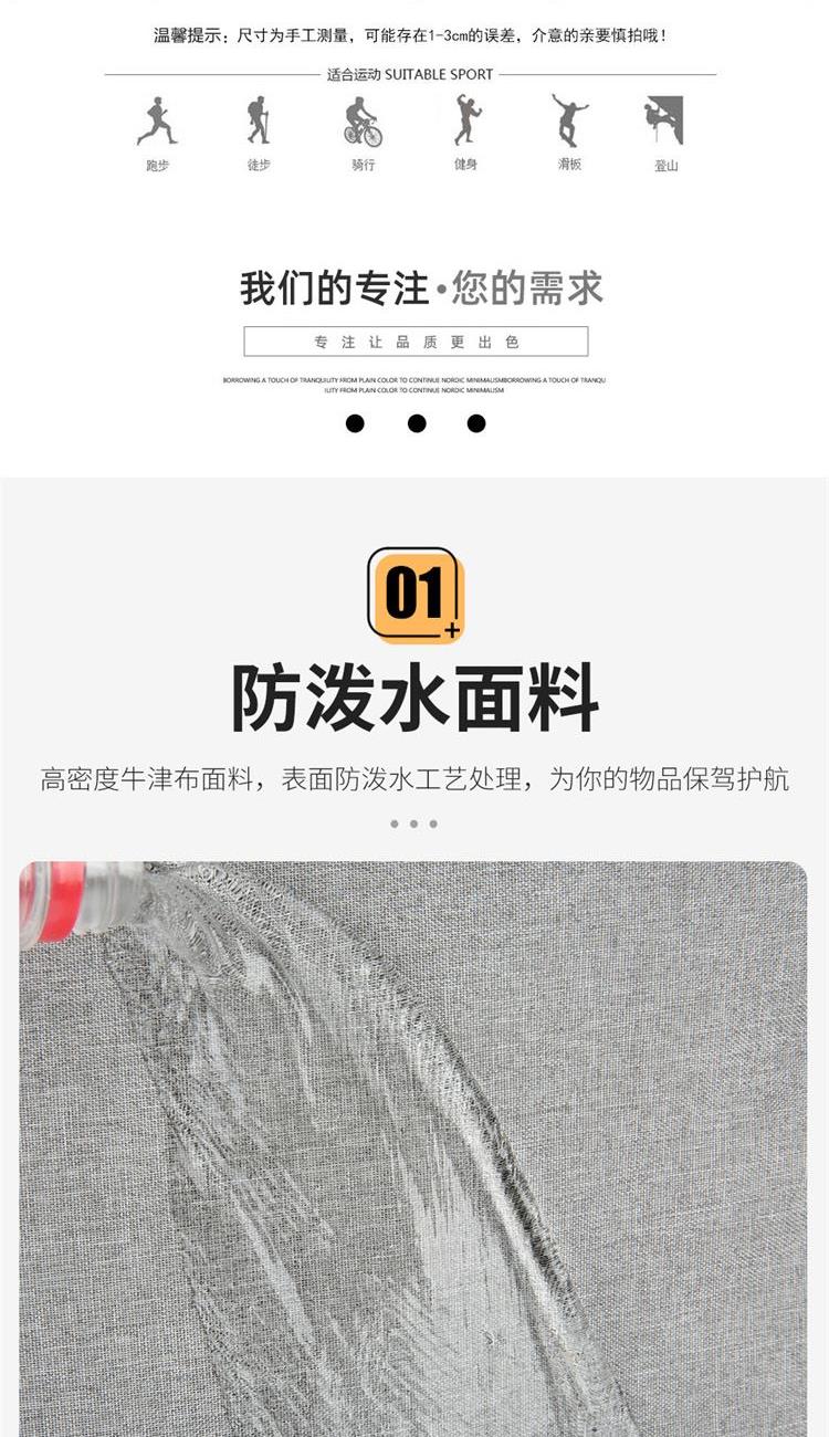 材质:300D涤纶防泼水面料 重量:0.48kg 尺寸:30*44*18cm 颜色:黑/灰