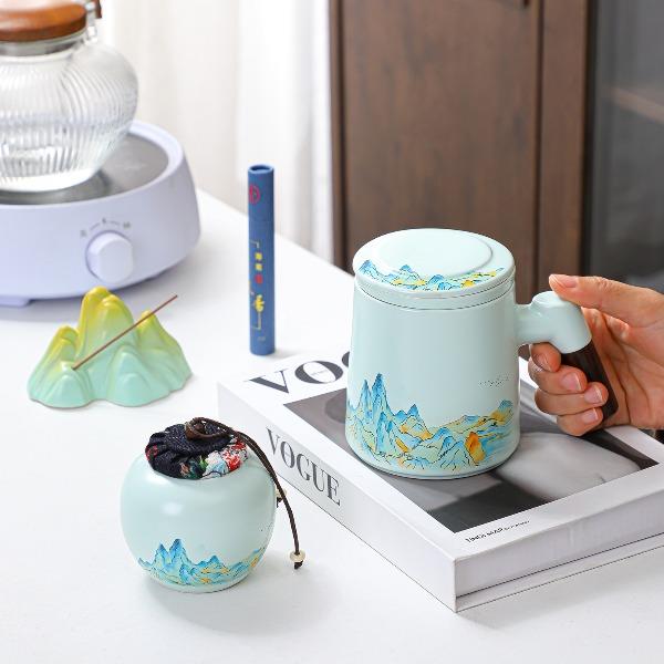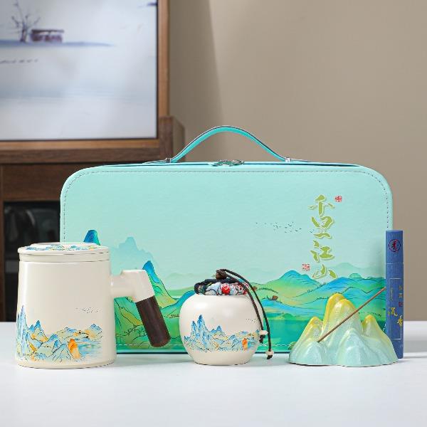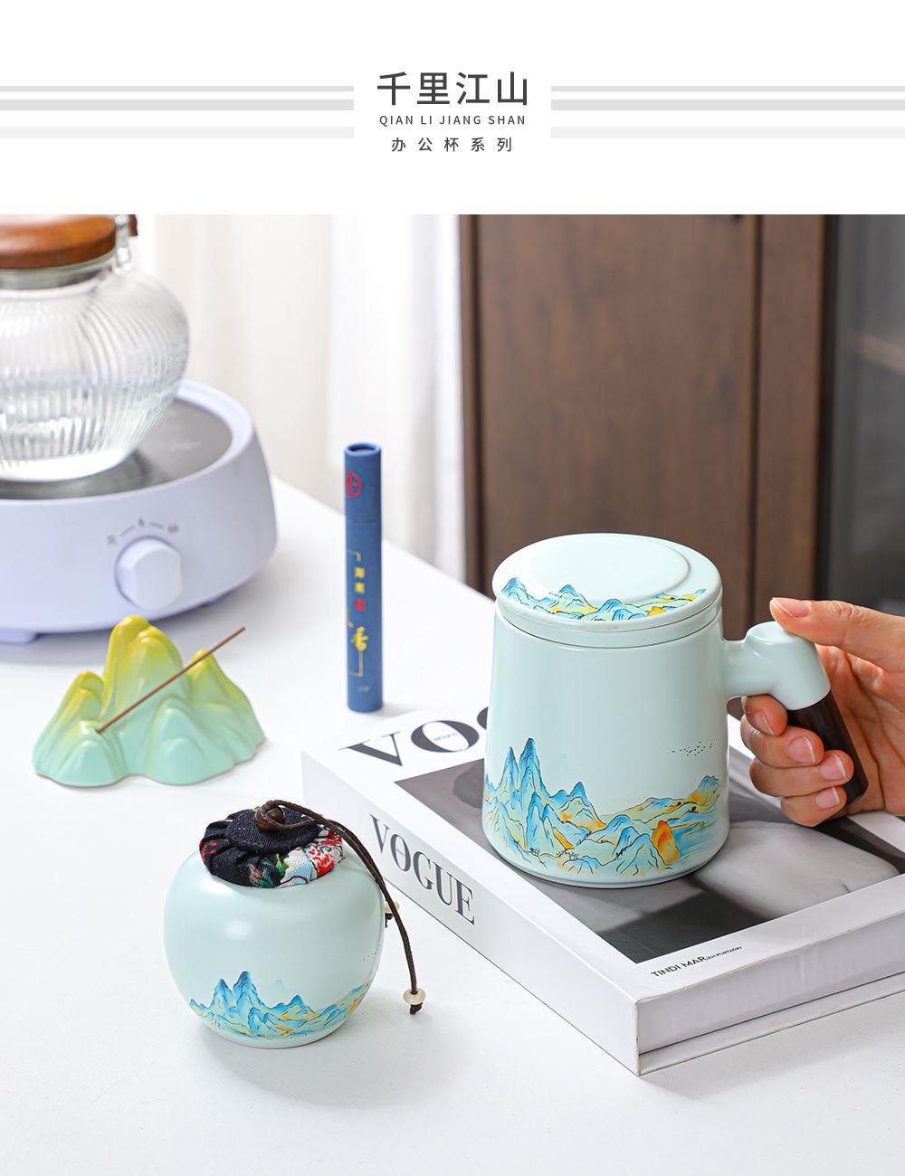 瓷语花香千里江山办公杯套装
