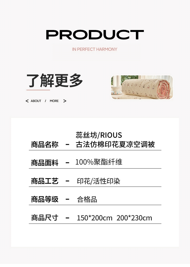蕊丝坊家纺新款古法仿棉印花夏凉空调被150*200cm