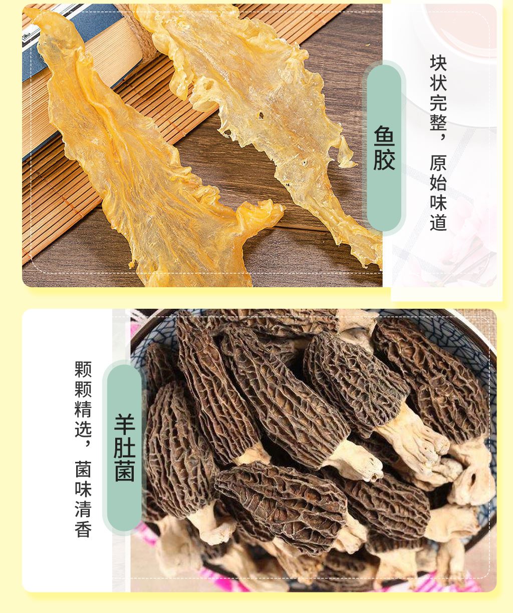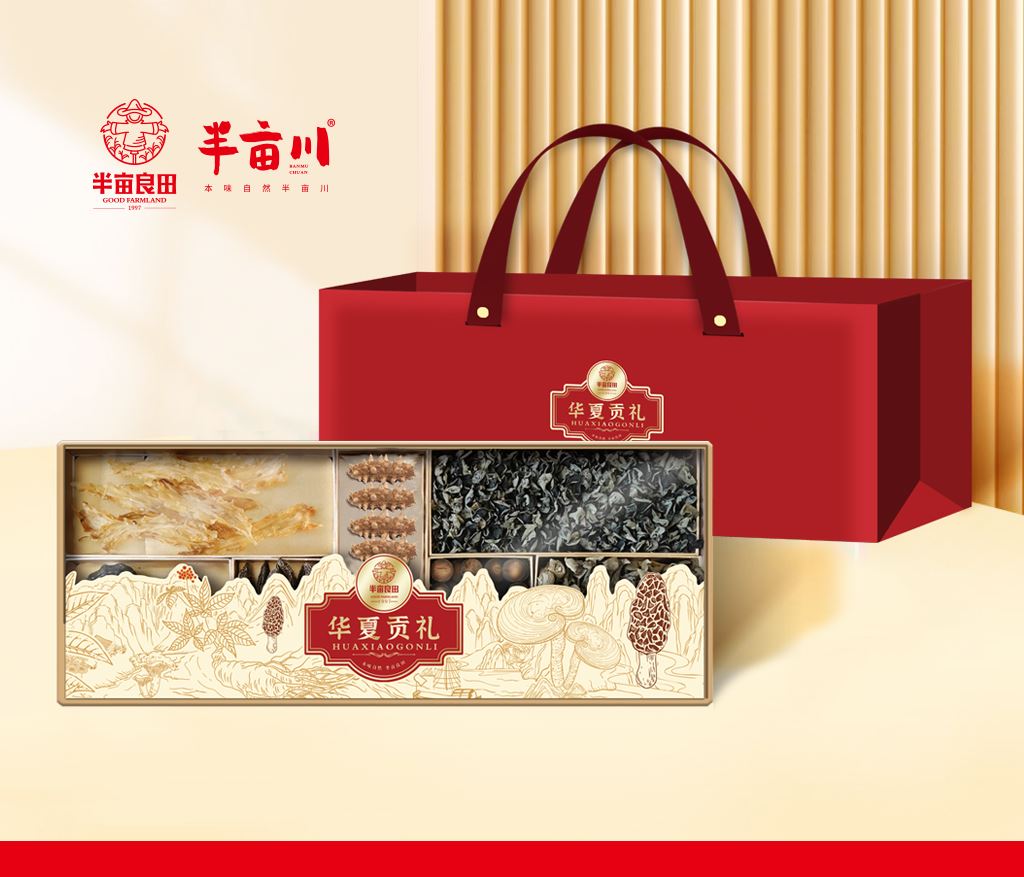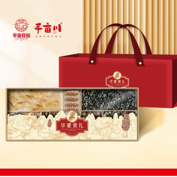 产品配置: 深海鱼胶50g 深山灵芝60g 冻干海参10g 精选化橘红165g 精选羊肚菌25g 东北秋木耳150g 精选鹿茸菇120g 净含量:580g 礼盒尺寸:69*9*27cm 半亩川华夏贡礼山海奇珍、深山灵萃共一盒。深海鱼胶配冻干海参,东北秋木耳搭精选鹿茸菇,高价值礼盒加手提袋,送礼超有面!