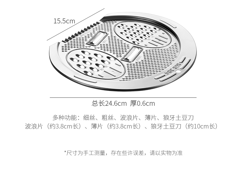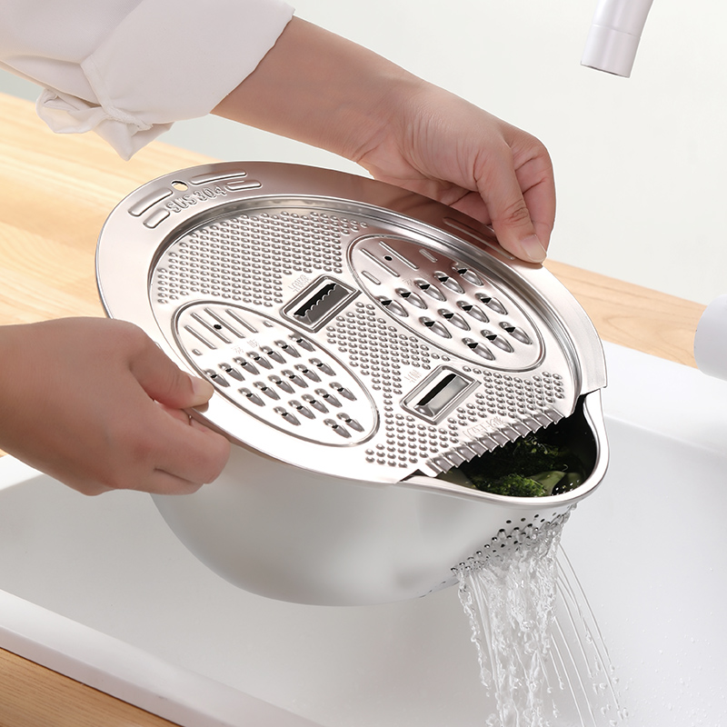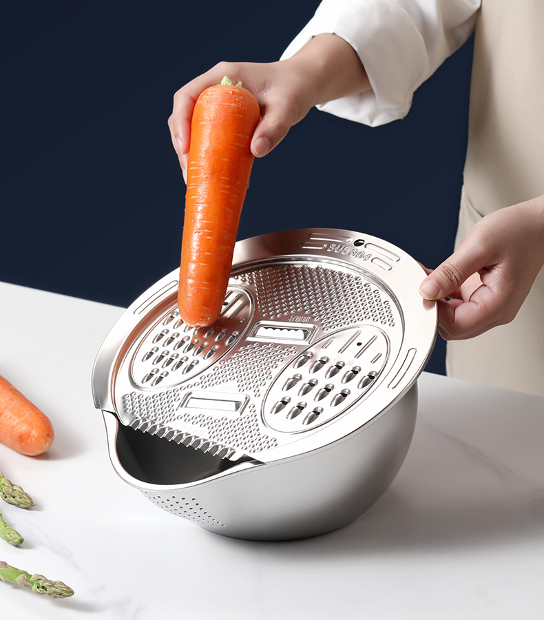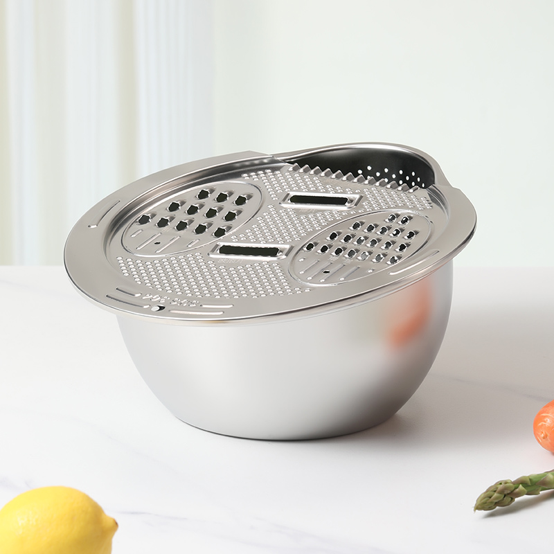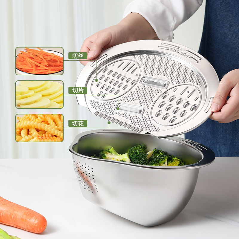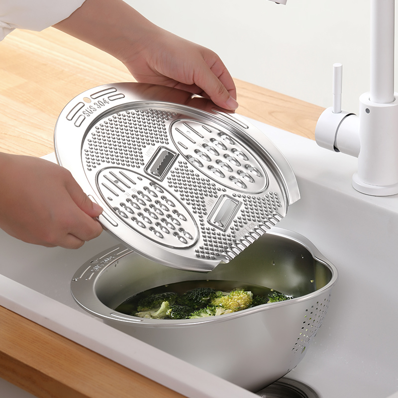 产品型号 :SG-LSP024 产品规格 :24CM 产品材质 :304不锈钢 彩盒尺寸 :250*125*250MM 采用国际标准不锈钢板材,新型倾斜设计,造型美观,一盆多用。 一体成型技术,精细网孔,圆弧包边,光滑舒适,方便拿取。 斜壁可沥水,盆底可搓米,轻微倾斜,即可轻松沥水。 洗菜切菜收纳三合一,轻松切片,轻轻倾斜,即可清洗沥水。 大容量收纳盆,一次备完所有菜,切菜随心所欲,不担心满溢出来。