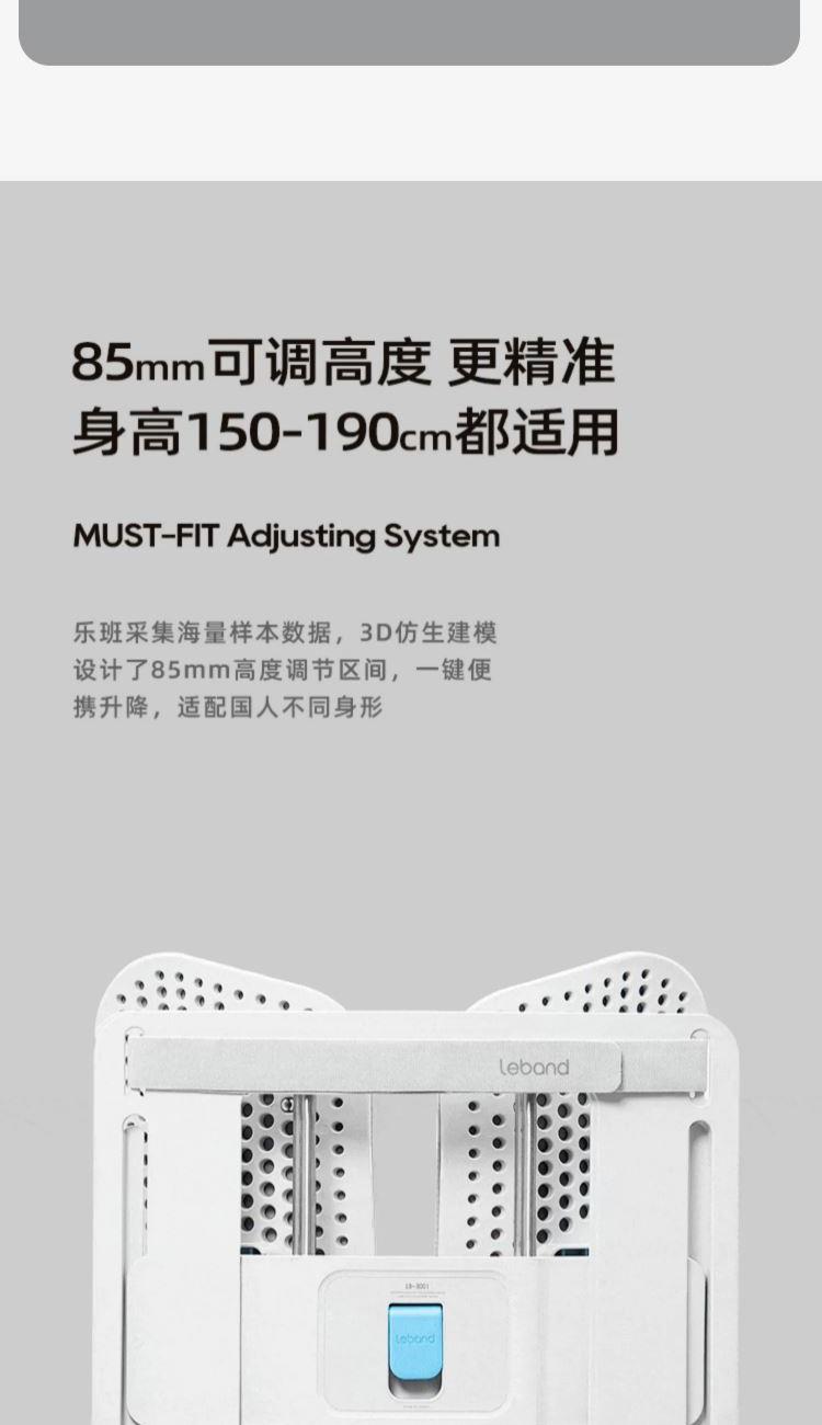 产品型号:LBB001-ALGY 产品规格:无垫款 产品净重:1.3kg 产品尺寸:390*370*140mm 可调高度:85mm 乐班技术:双弹簧设计 调节方式:卡扣 一键式升降两侧同时调节 执行标准:Q/ZMFL BK001-2021