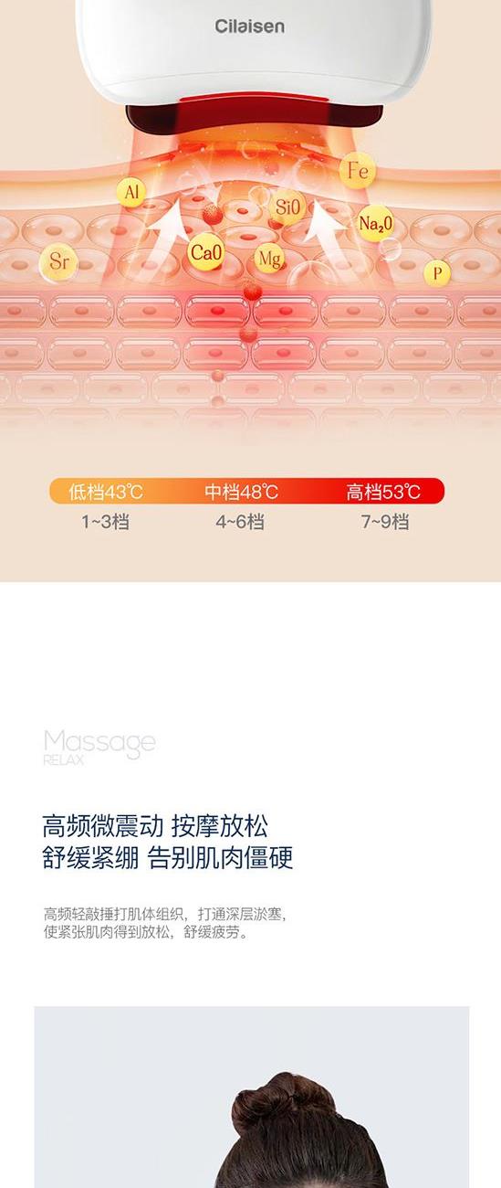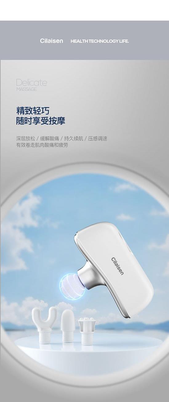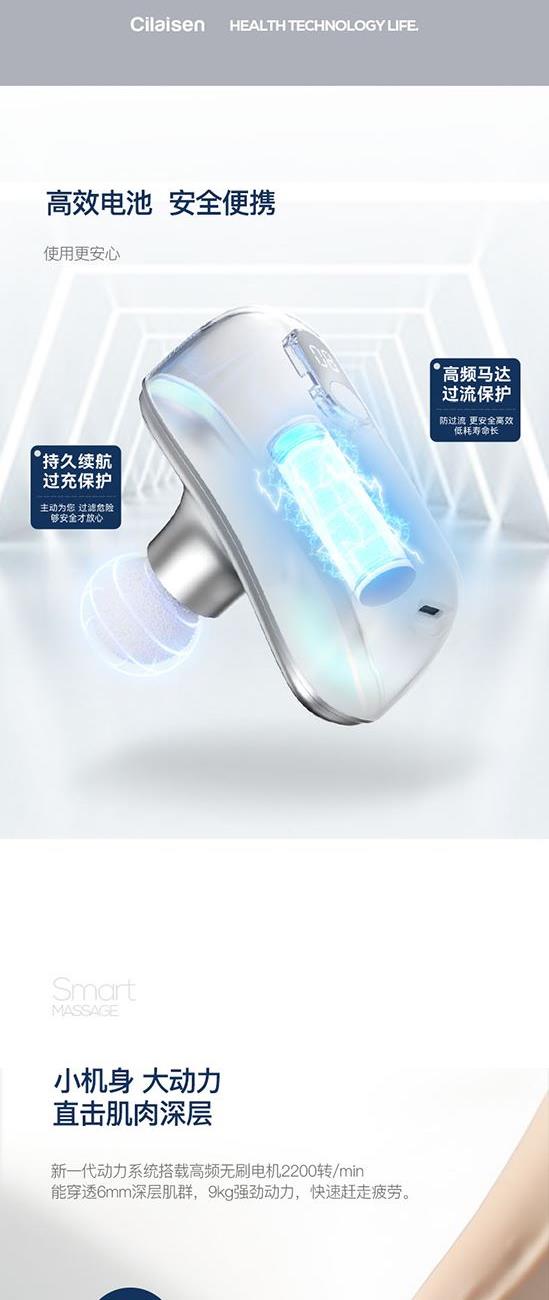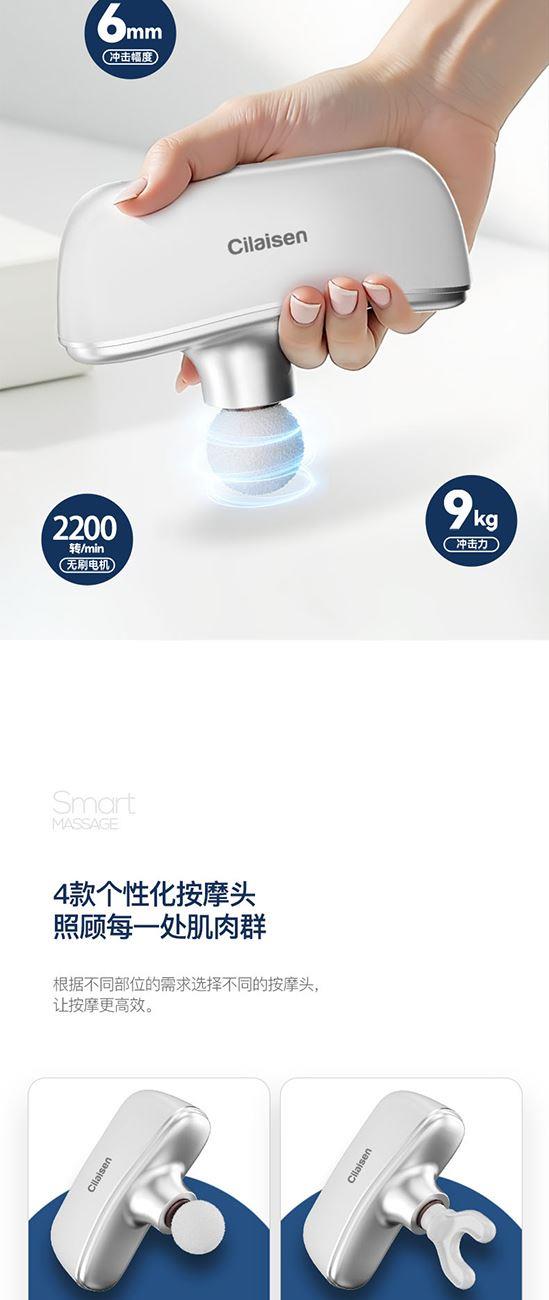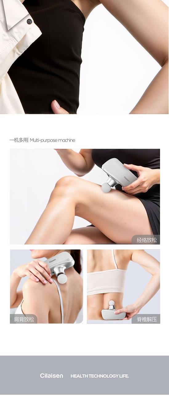产品参数: 套装型号:CP-C13 商品条码 : 6972831861034 筋膜枪型号:CP-F12 筋膜枪尺寸:125x65x42mm 筋膜枪额定功率:30W 筋膜枪电池容量 : 1100mAh 刮痧仪型号:CP-SD1 刮痧仪尺寸:98x75x25mm 刮痧仪额定功率:5W 刮痧仪电池容量:500mAh 额定电压:5V⎓ 刮痧板尺寸:97x50x6mm 产品毛重:660g 彩盒尺寸:316x228x50mm 装 箱 数 : 20pcs 外箱尺寸:652X476X275mm 包装清单:筋膜枪X1、刮痧仪X1、刮痧板X1、充电线X2、说明书X1 核心卖点: 1、筋膜枪:10档力度调节、一体化设计、持久续航、高效电池 ,安全便携小机身大动力、4款个性化按摩头、小巧不占地,轻松放进口袋、背包 2、刮痧仪:面部美容、肩颈按摩、背部刮痧、四肢放松;9档调节,恒温发热 释放砭石微量元素,深层养护;高频微震动,按摩放松; 3、刮痧板:蜜蜡刮痧板,多种用法 疏通经络;圆润板身,舒适握感 贴合皮肤,一板多用。