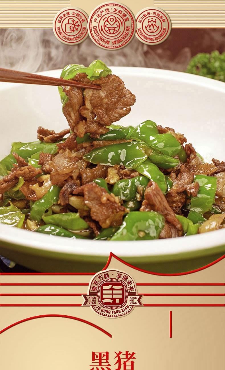 冰鲜黑猪瘦肉 600g*1袋 冰鲜黑猪后腿 600g*1袋 冰鲜黑猪带肉棒骨 600g*2袋 冰鲜黑猪里脊(通脊) 600g*1袋