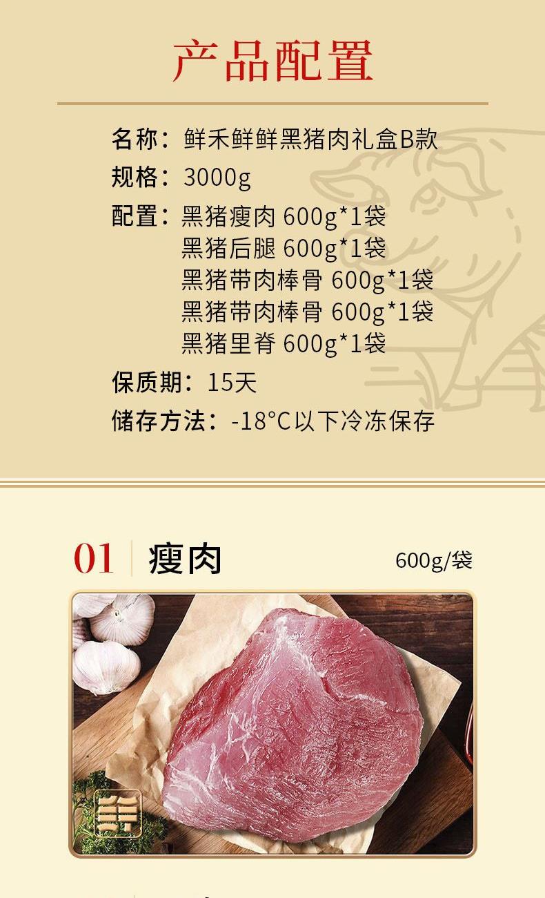 鲜禾鲜冰鲜黑猪肉礼盒B款3000g