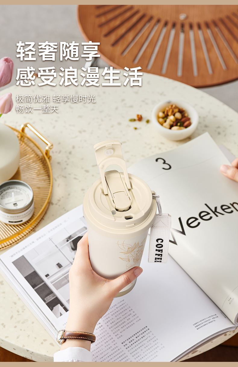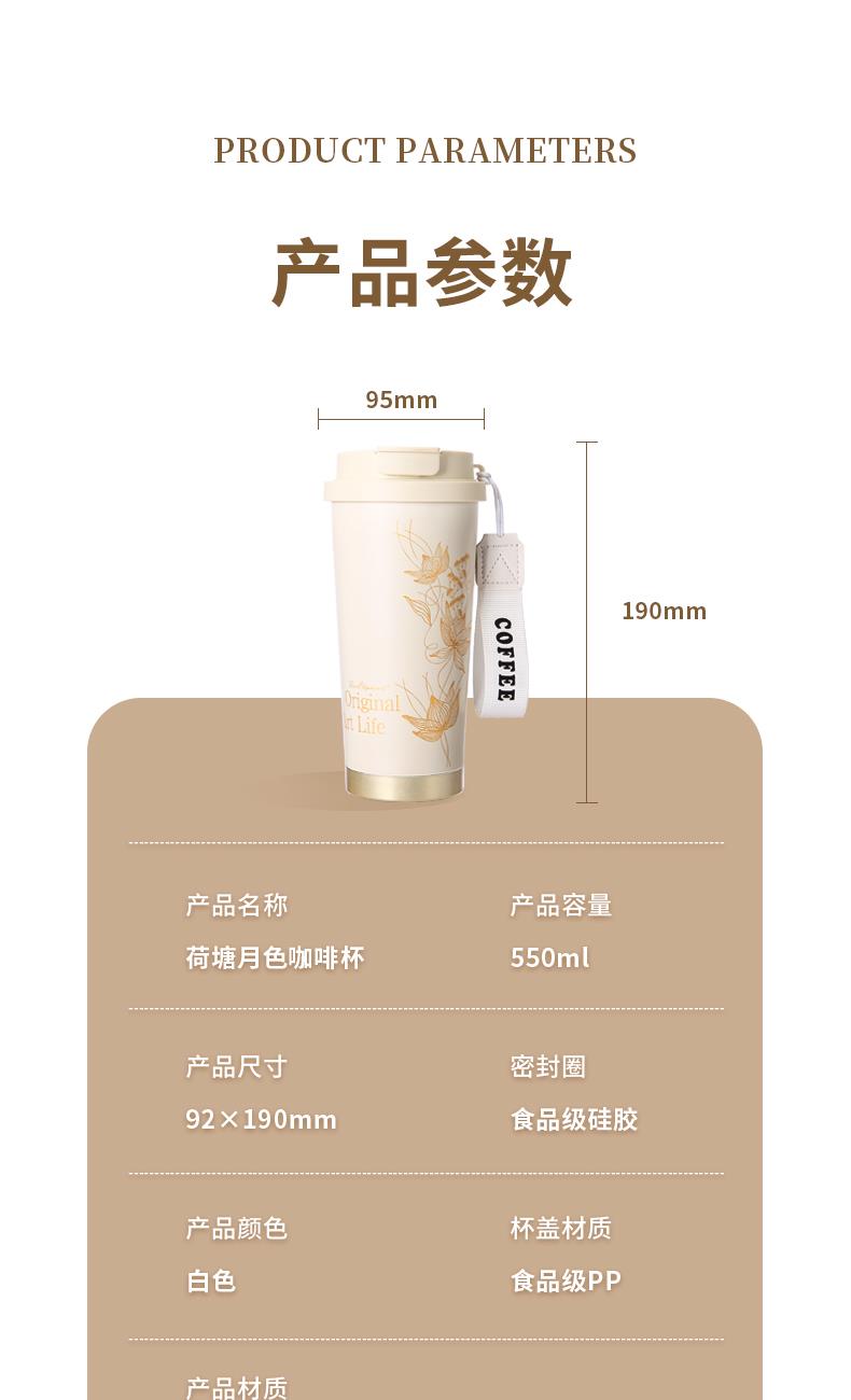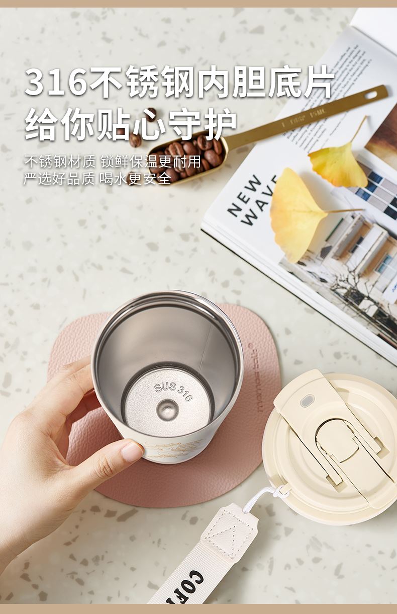 规 格:550ml 材 质:内胆底片SUS316不锈钢,内胆壁体SUS304不锈钢 杯盖:PP(食品级) 密封圈:硅胶(食品级) 颜 色:白色 彩 盒 尺 寸:L9.5*W9.5*H20cm 外 箱 尺 寸:L49.5*W40*H42cm 1、采用食品级不锈钢材质,耐腐蚀电解研磨技术,内胆光滑细腻,不易粘附水垢,为您的健康保驾护航。 2、杯身采用喷塑工艺,杯底不锈钢打造,耐磨、坚硬、能有效保护杯体,手感舒服。 3、乐享生活,内置吸管,双饮模式设计,可吸引、可直饮,慢吸快饮,精致时尚。 4、配置手提带,家居户外携带便捷。