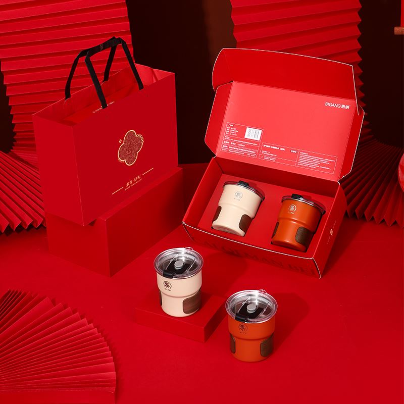 产品型号 :SG-FQ350S 产品规格 :350ML × 2只 产品材质 :304不锈钢 彩盒尺寸 :254*148*83MM 马年将至,心意先行,新年用新杯,和好运一起碰个杯。 杯身印着“马上来财”满满的好寓意,年味和潮感直接拉满。 马年送它,主打一个“喝出好运,礼出排面”开启马年好运时代。 轻巧便携,就要人手一个随行杯,出行带上它,享受健康生活。 适合露营喝茶、咖啡、啤酒、冷热饮等饮品,开启减塑环保露营生活。 礼盒+手提袋,盛装每一段相伴,是一款能传递年味、寄托心意的礼赠佳品。