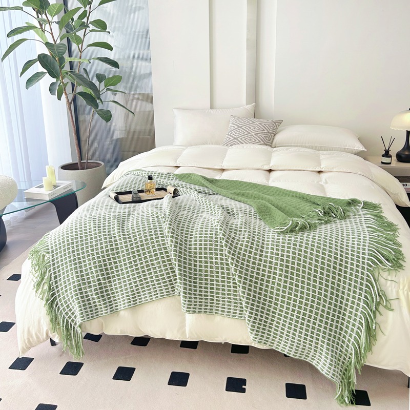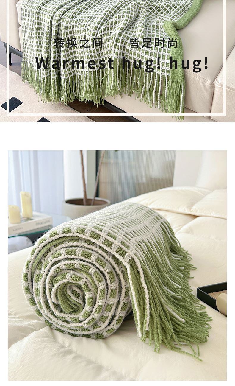 萱遇家纺流苏针织盖毯-绿Q-C7103