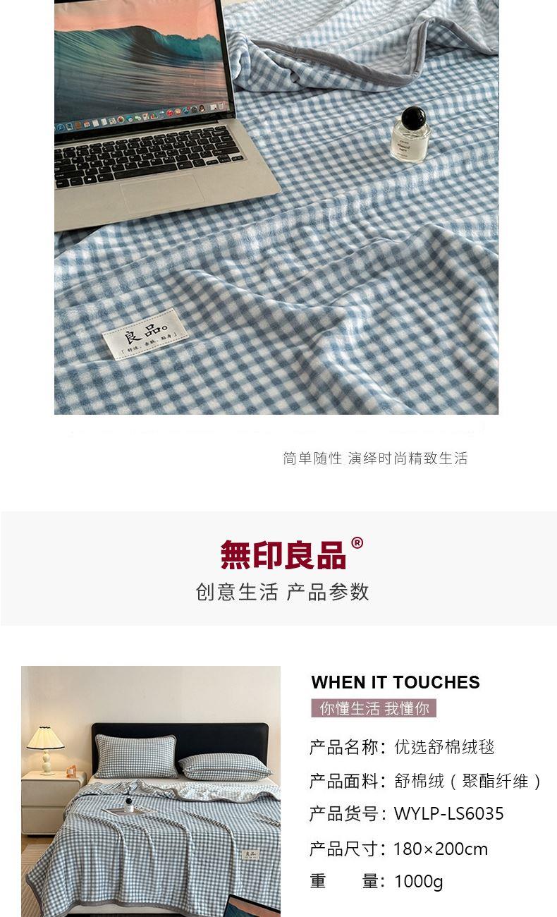 规 格:180×200cm 面 料: 舒棉绒(聚酯纤维) 克 重: 1000g “無印良品”大染无印,优良品质的产品是年轻人喜欢的,“無印”设计, 优雅 , 质朴 , 自然 , 是無印良品的初心与追求。让体验更舒适。享受简约健康生活,走进無印,上善若水,大爱无疆,创新让生活更精彩。