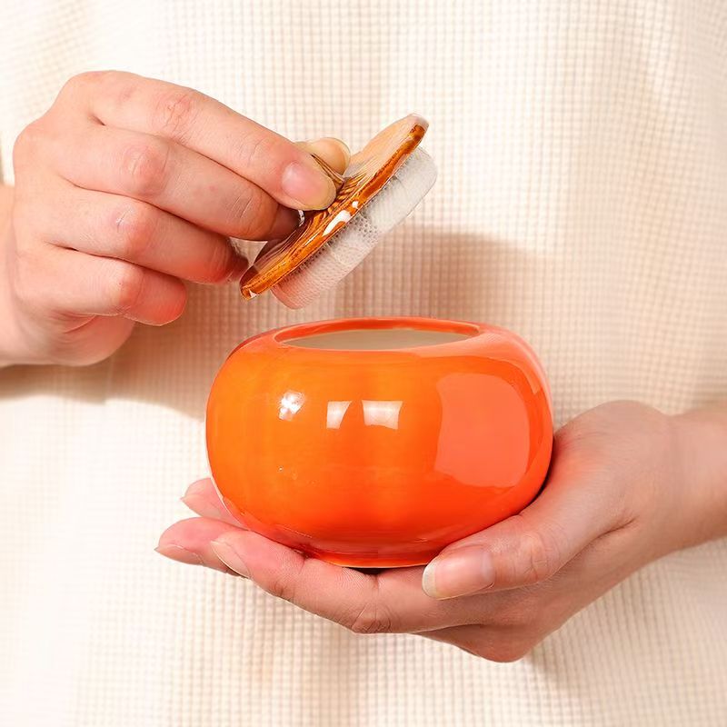 产品组成:整套=1茶壶+1茶罐+4杯+礼盒 产品尺寸:柿子罐:长9cm 高7.5cm 柿子壶:长14cm 高8cm 柿子杯:长6.3cm 高4.5cm 外箱尺寸:77*48*54.5cm 产品特点: 高质量陶瓷茶具,有趣的柿子外形,精美彩盒包装。有颜值兼具实用性; 是送礼/自用的佳选。