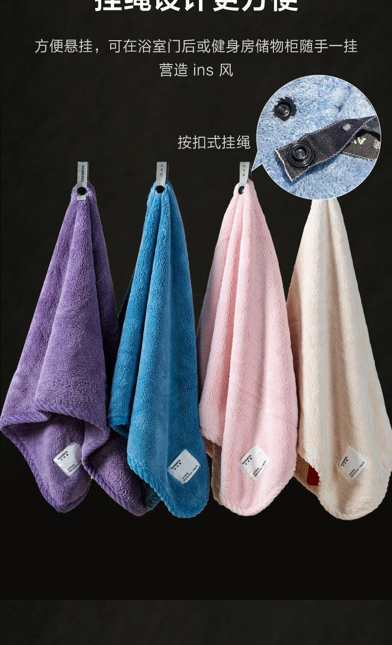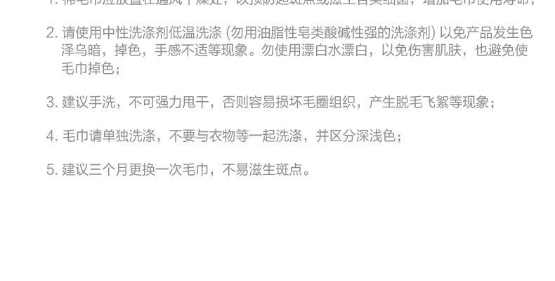 材质:聚酯纤维 规格:35*75cm,1条装 颜色:多色可选 产品特点:产品具有kangjun性能,检测达到7A级kangjun标准,经过150次的洗涤后依然保持良好的kangjun性能;产品选用优质原料,采用法兰绒长毛,织造精致细密,纤维均匀清晰立体,更长且舒展的毛圈使得吸水性远高于普通毛巾,兼具触感及耐用性; 产品区别市面上普通的聚酯纤维毛巾,织造工艺及细节处处体现品质,产品色彩牢固,毛圈紧密不掉毛,经久耐用!