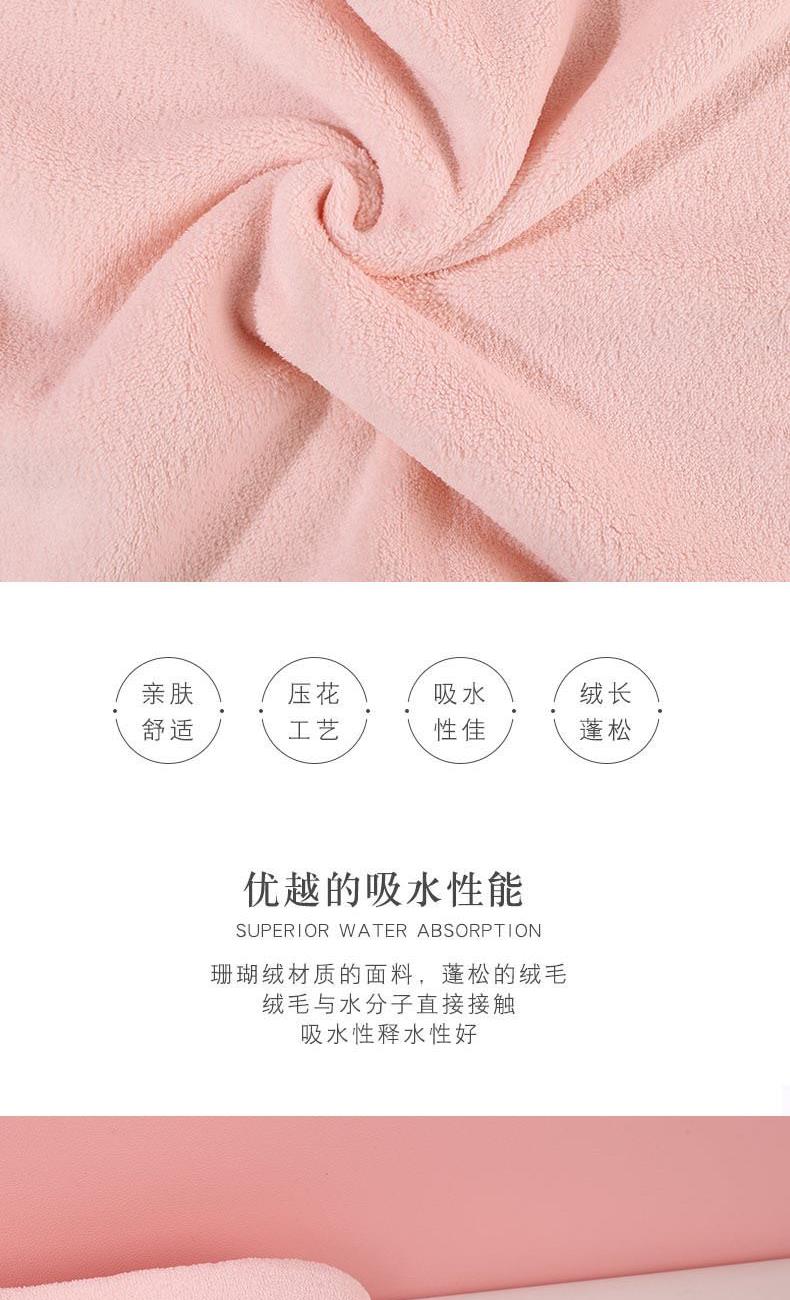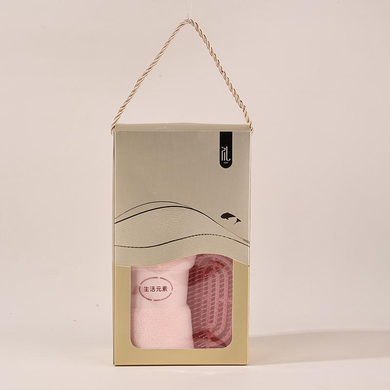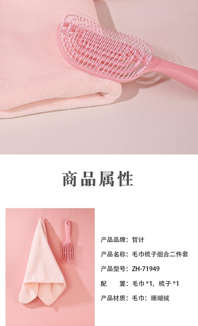 配 置:珊瑚绒毛巾*1,梳子*1 产品材质:毛巾:珊瑚绒 包装尺寸:140*70*245mm 包装方式:彩盒 单套重量:0.19KG
