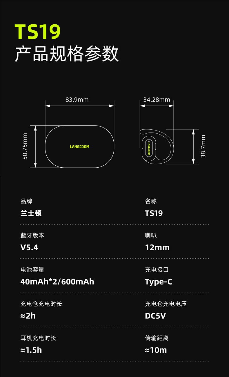 兰士顿挂耳运动开放式蓝牙耳机TS19