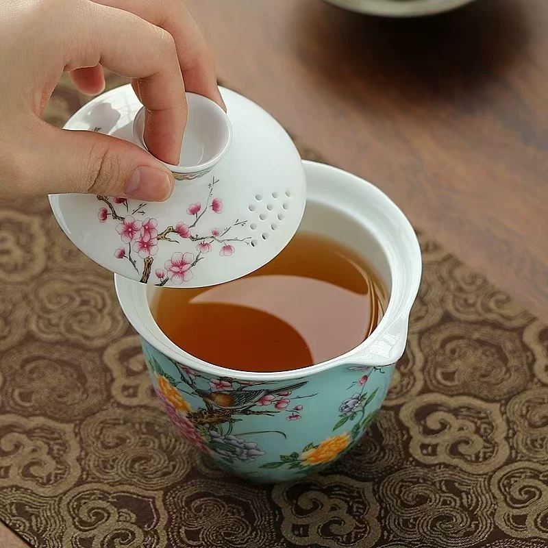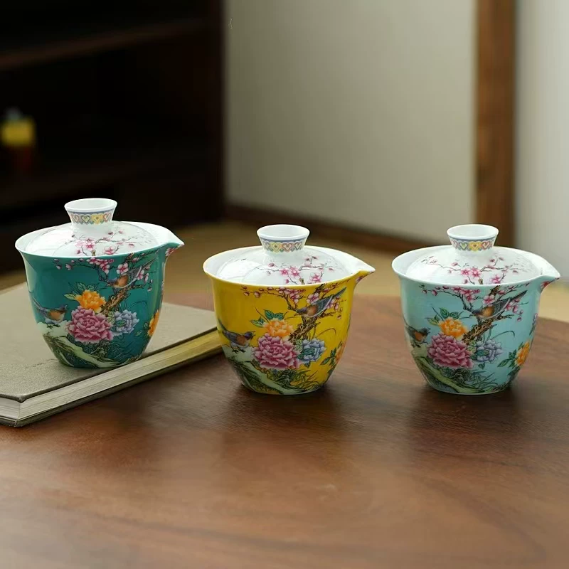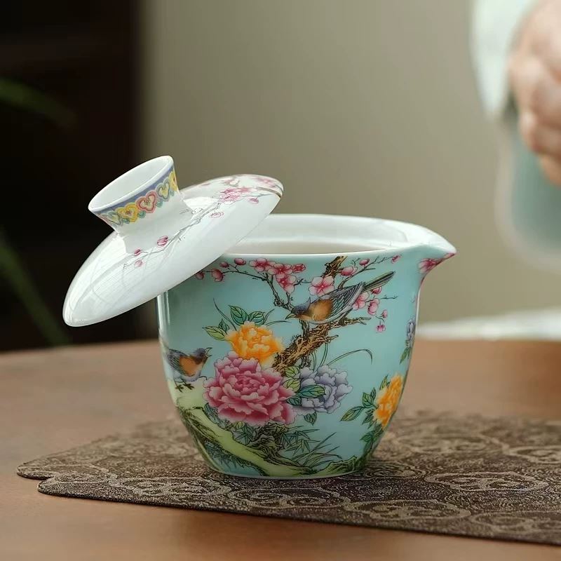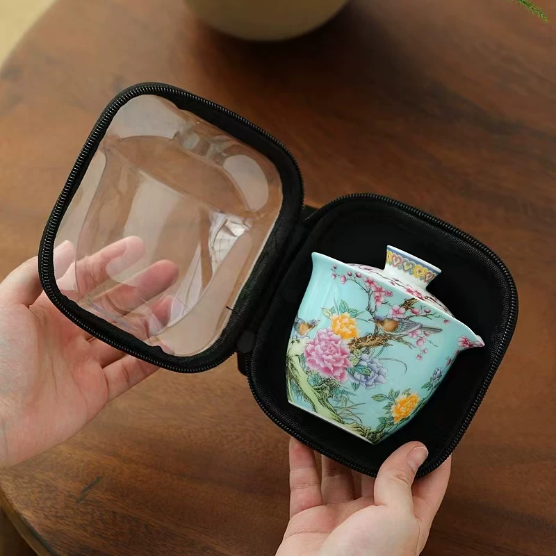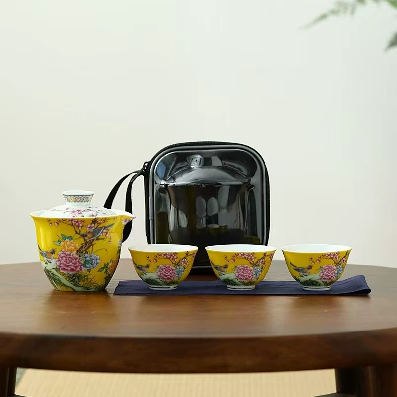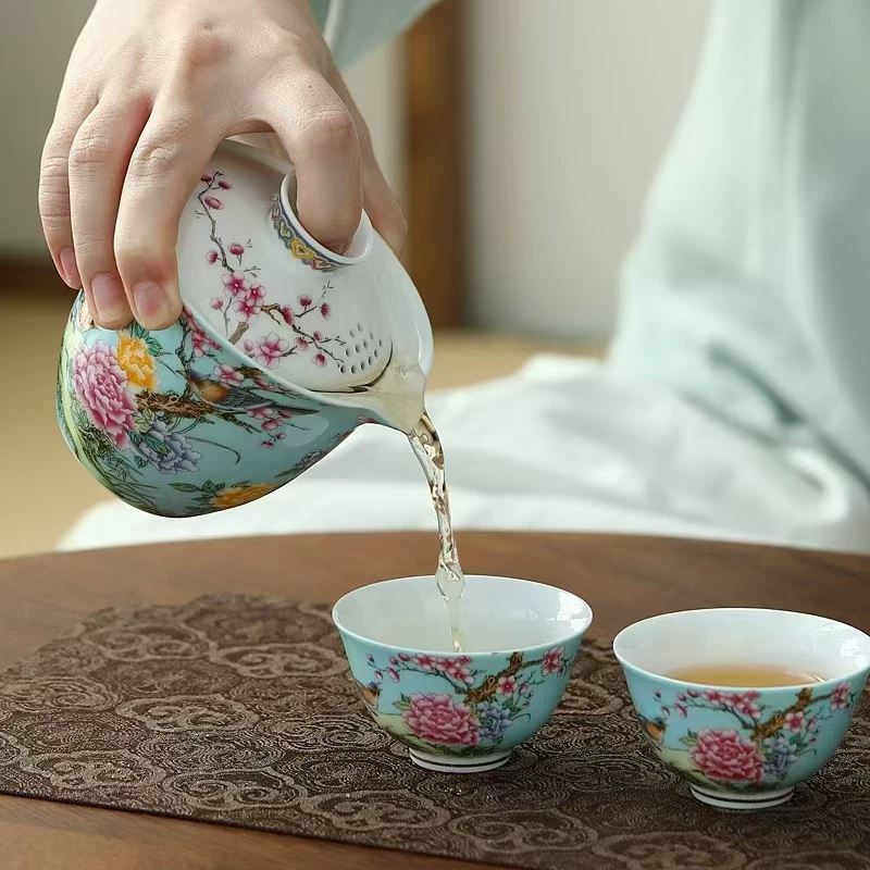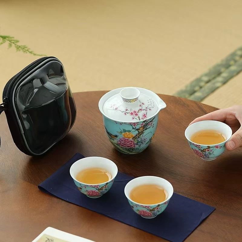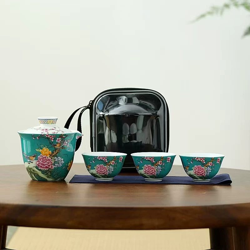 瓷语花香喜上眉梢珐琅彩快客茶具