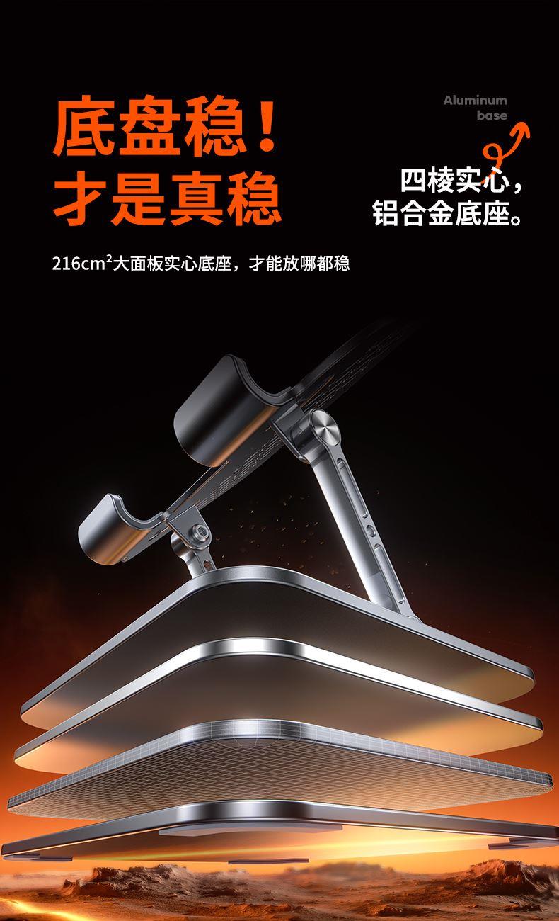 型号:D2 材质:铝合金+碳素纲+ABS+硅胶防滑垫 颜色:枪色 适用型号:手机/平板/笔记本 适用场景:卧室/办公室等