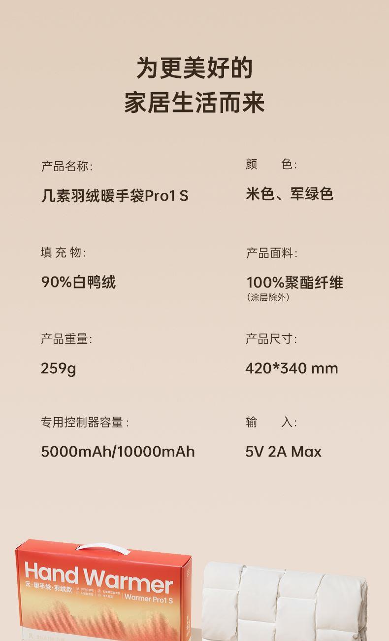 几素羽绒暖手袋WarmerPro1S(5000mAh)