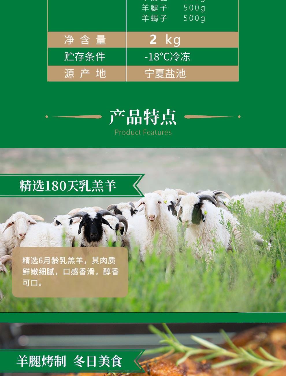 配置: 羊寸排 500g 羊前腿 500g 羊腱子 500g 羊蝎子 500g 一方水土,养育一方特色滩羊盐池滩羊食百草 “吃中草药 (甘草、苦豆子)喝弱碱水"长大的羊。 中和体内酸性,使得肉质鲜嫩细腻,脂肪分布均匀原切滩羊羊肉不腥不膻。 宁夏盐池县 自然环境优异,气候冬长夏短 日照充足, 土地呈盐碱化,使得水源呈弱碱性, 盐池草原呈半沙漠化,其中含名贵中草药约110种左右 新鲜屠宰,保证肉质鲜美!