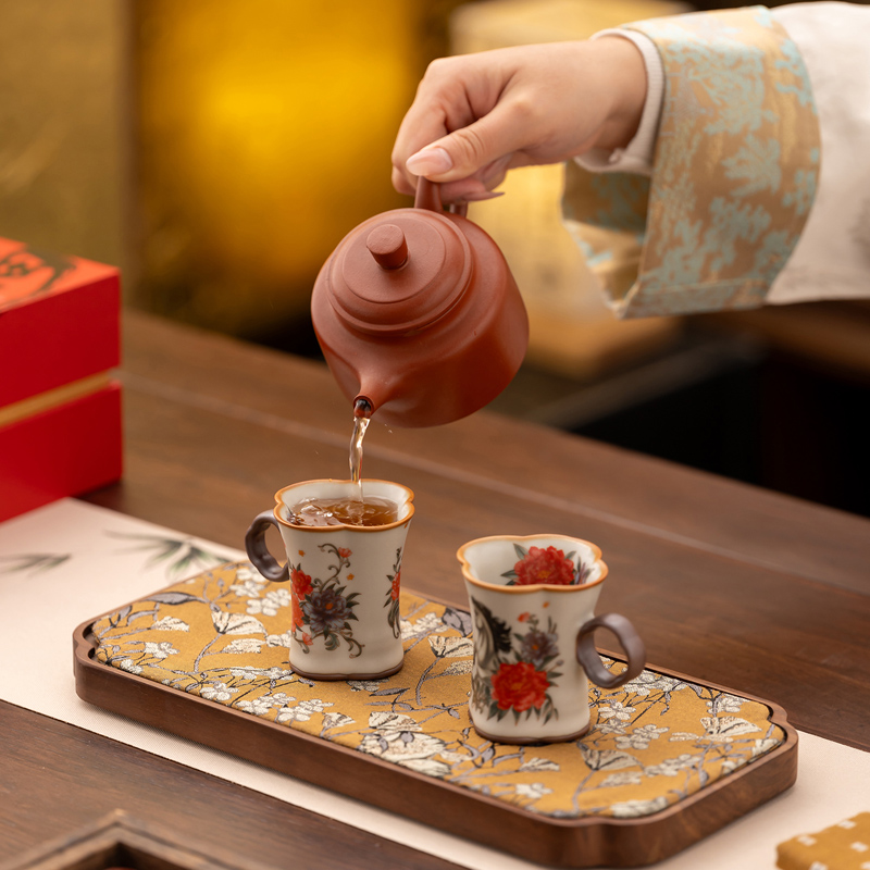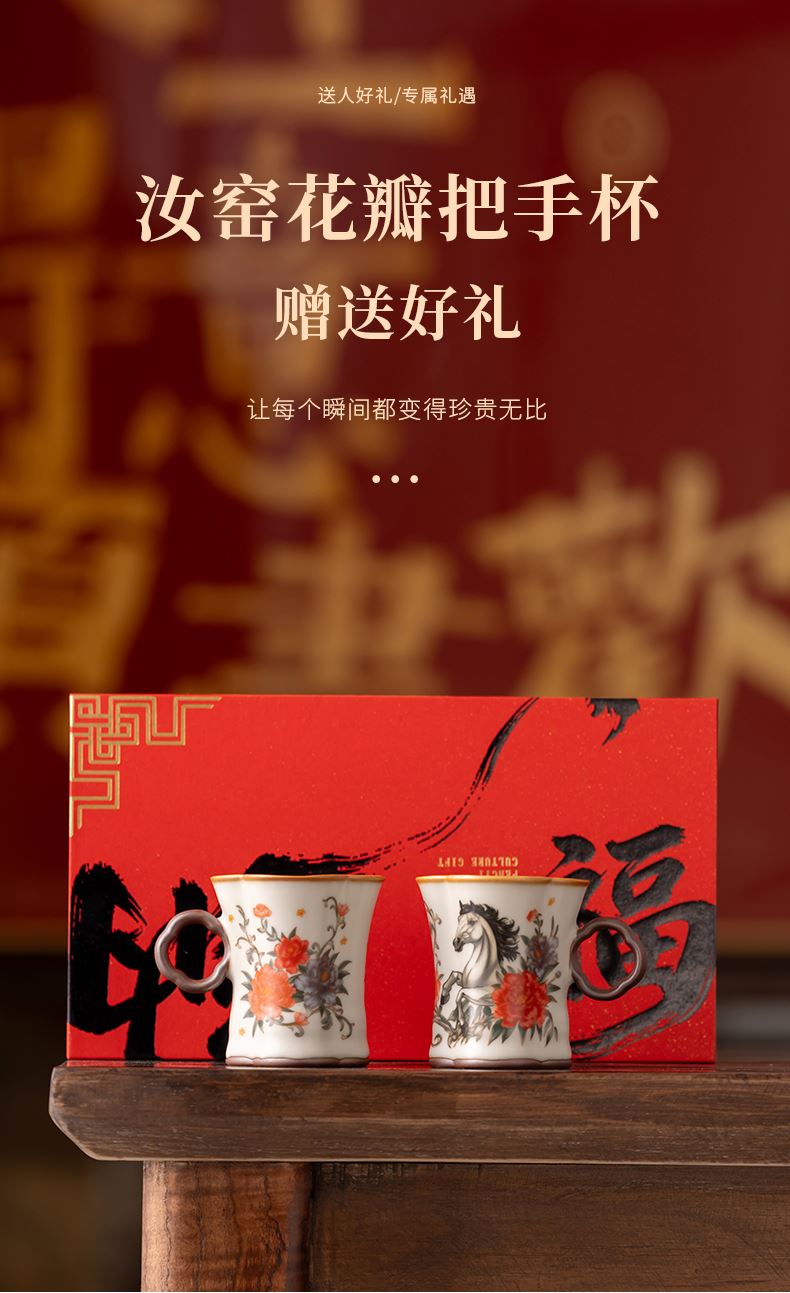 配 制: 2杯 1礼盒 手提袋 材质:汝黄瓷 规格:8.8*7.3cm 容量:90ml 推荐说明:三八女神节礼品,马上花开。亚黄汝瓷,玛瑙入釉,蝉翼开片,家有千财万贯,不如汝窑一片。技术新品。画面堆料技术,富有立体浮雕质感,真实感强。杯身开片,可养瓷。