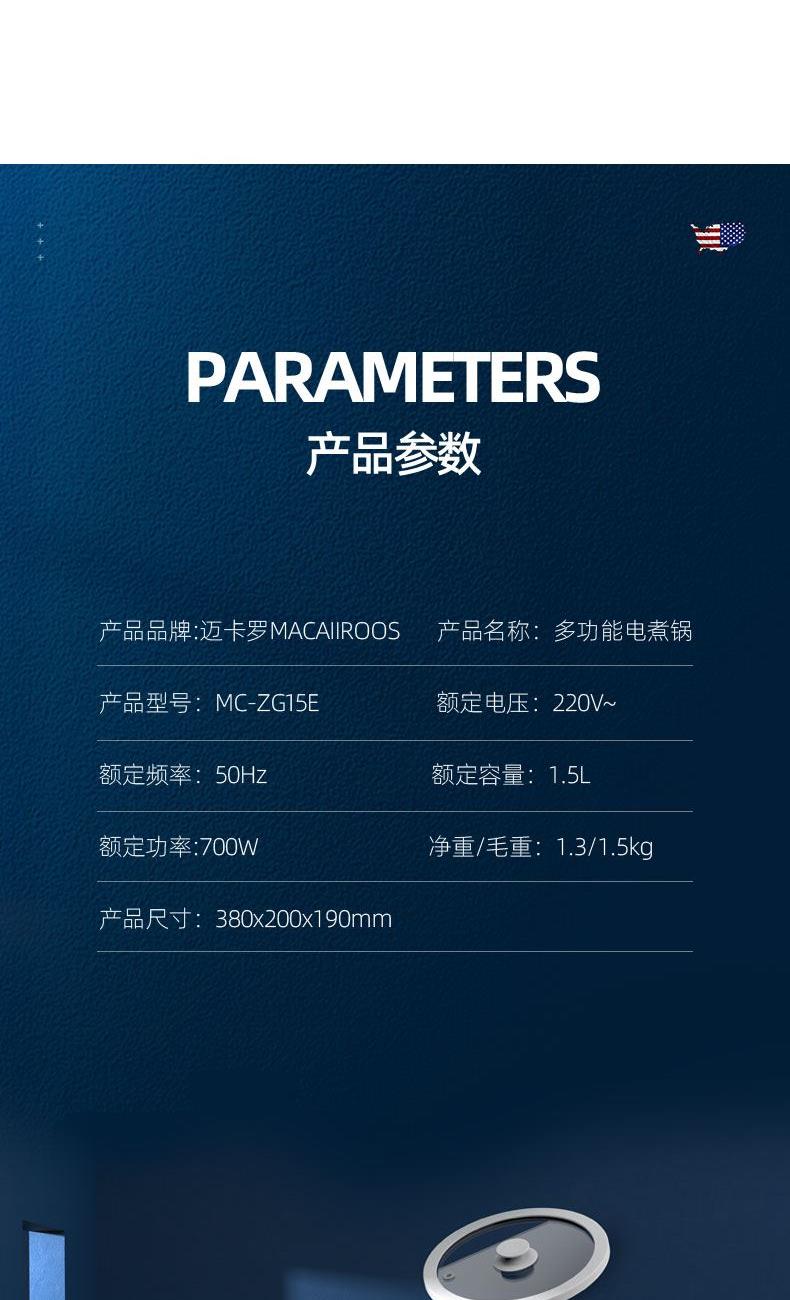美国迈卡罗多功能电煮锅MC-ZG15E