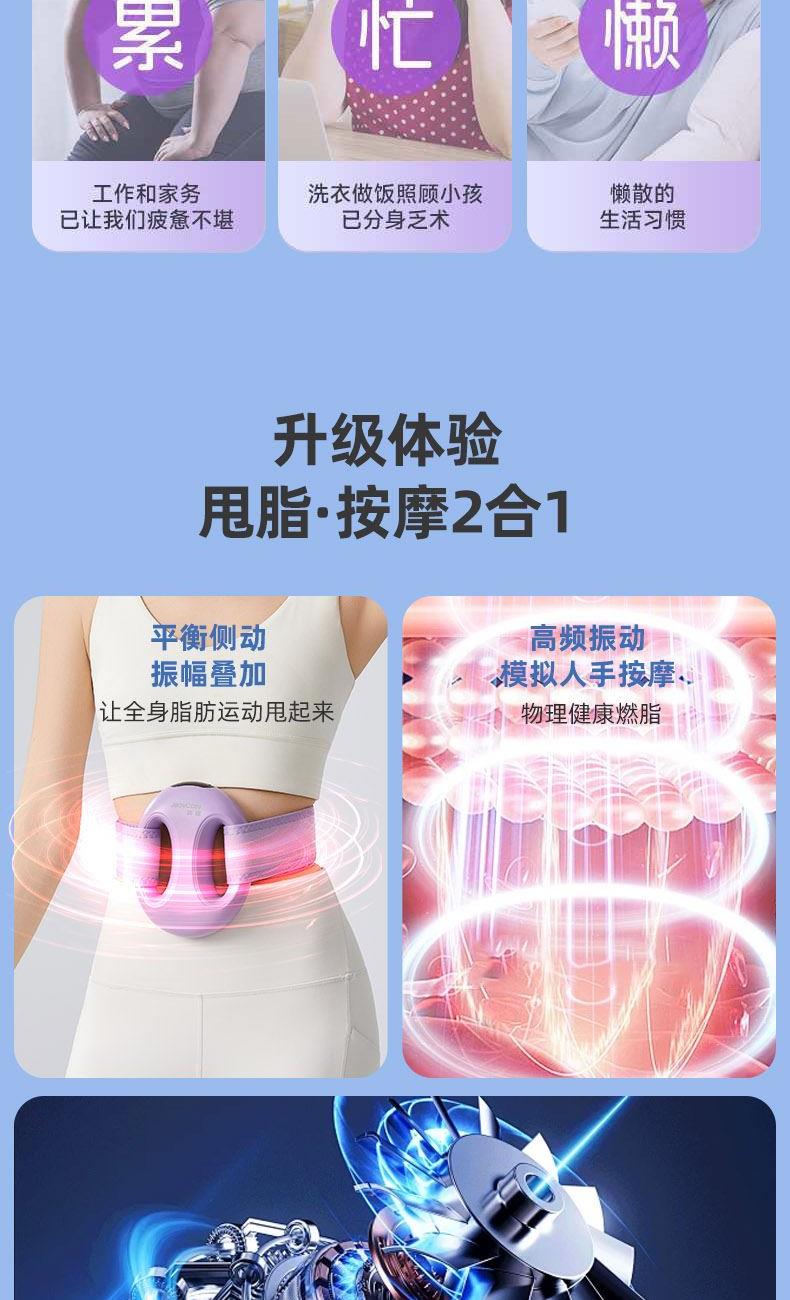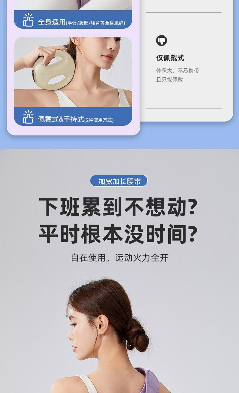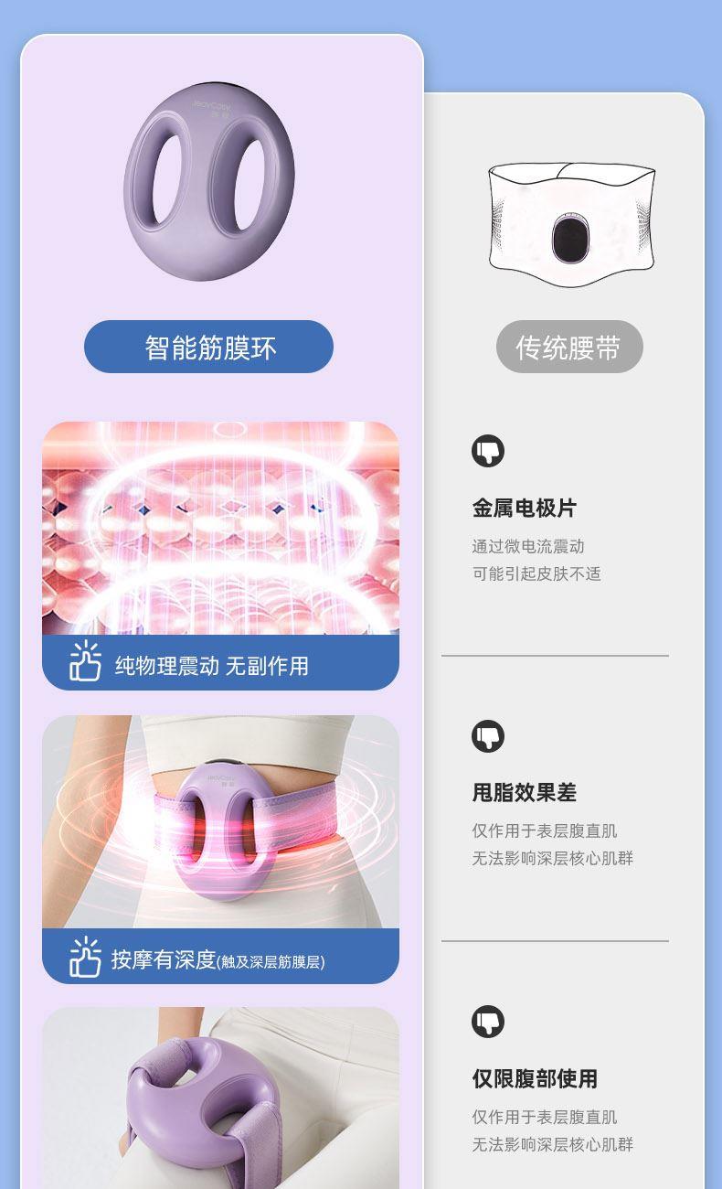 产品功能:震动按摩 产品材质:ABS 供电方式:TYPE-C充电 1200mAh 产品颜色:紫色 米色 产品型号:TY-801 额定电压:DC 4.2V 额定功率:12W 产品净重:0.42kg 产品尺寸:14x16x5cm 条形码:6952679802062 1、升级体验,高频震动,让全身脂肪运动甩起来 2、1台筋膜环=6台按摩仪,一机多用,多部位按摩,贴合身体各部位,臀部、腰部、腹部、等多角度按摩 3、六档力度调节,三档变频模式,渐进式放松 4、Type-C接口,便捷充电