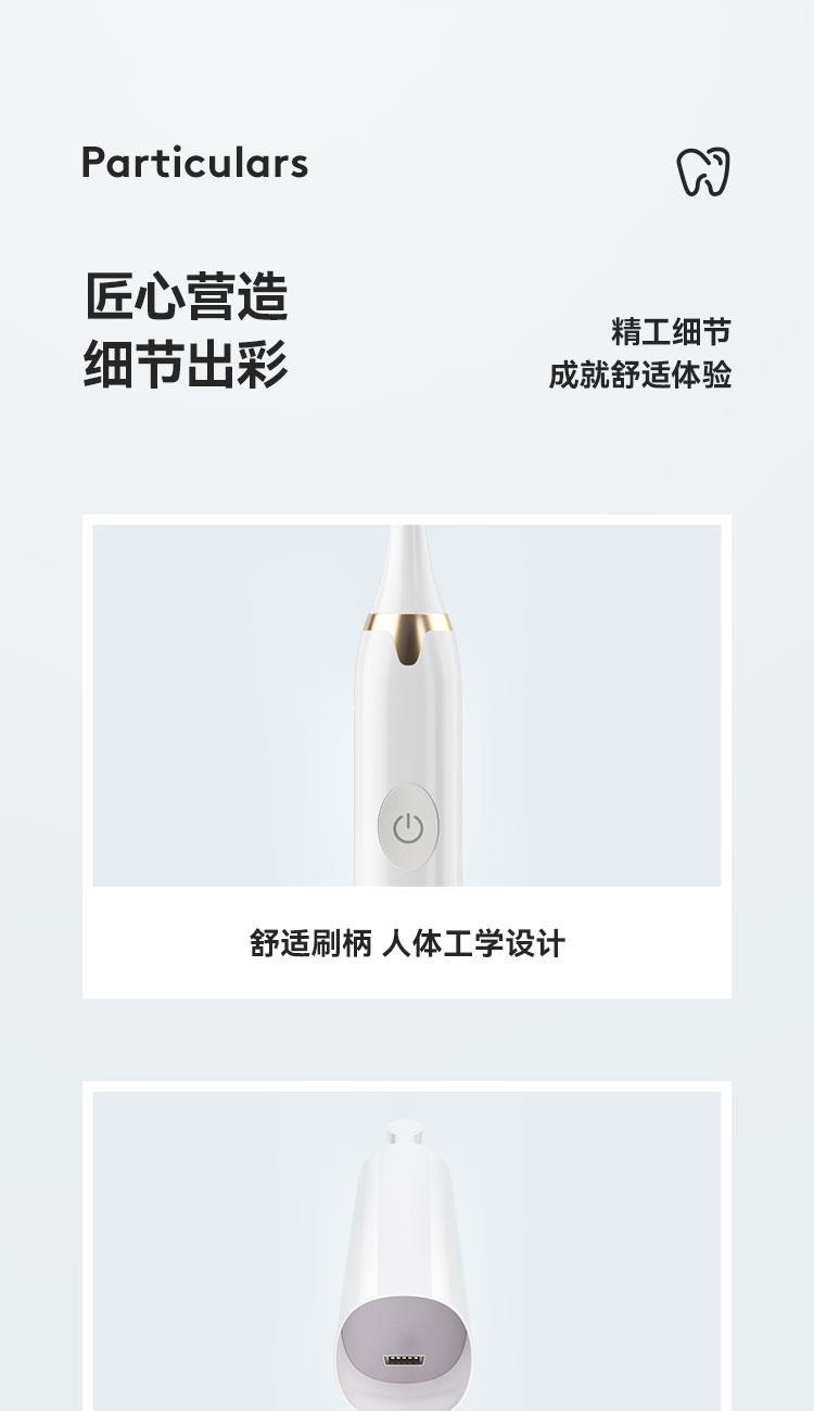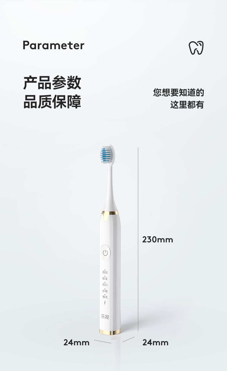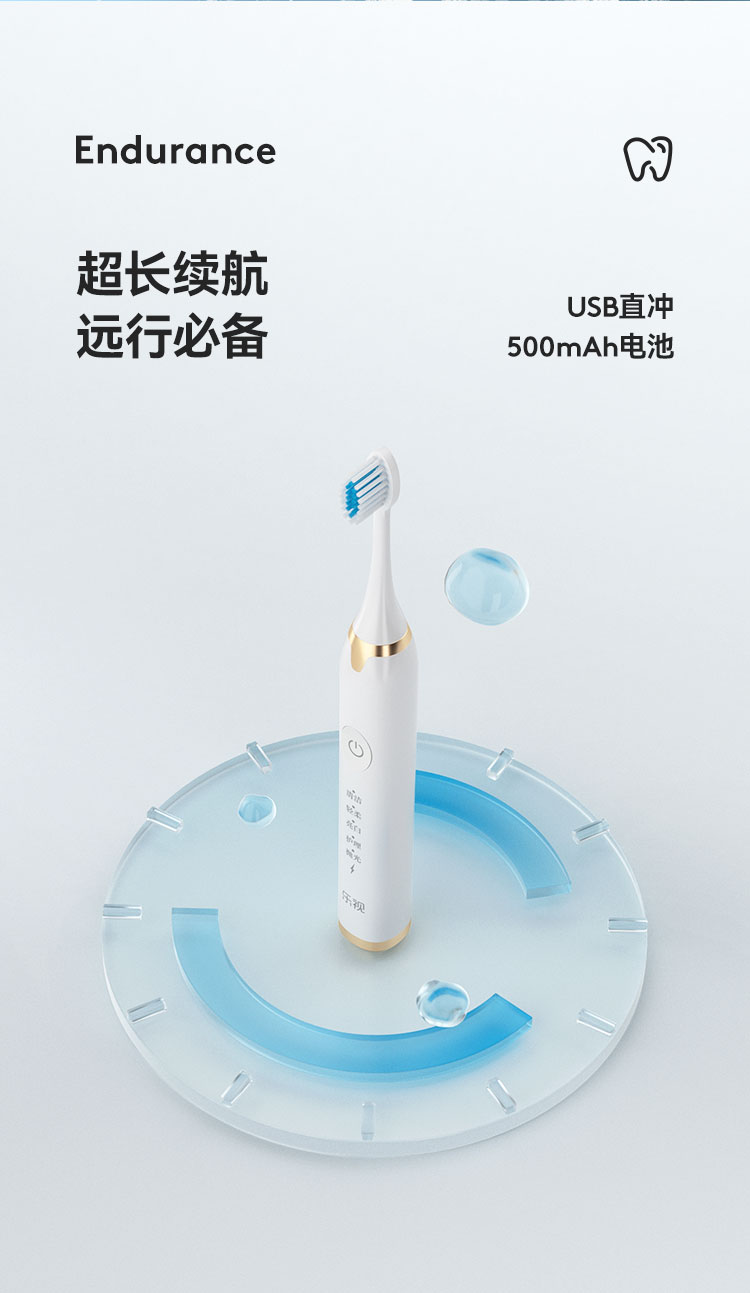 额定电压:3.7V~ 额定功率:3.6W 产品毛重:78g 额定容量:64g 额定充电电流:0.3A 电 池:500mAh 产品尺寸:24x24x230mm 1、纤密软毛; 2、五档模式; 3、全身防水; 4、持久续航; 5、强劲电机
